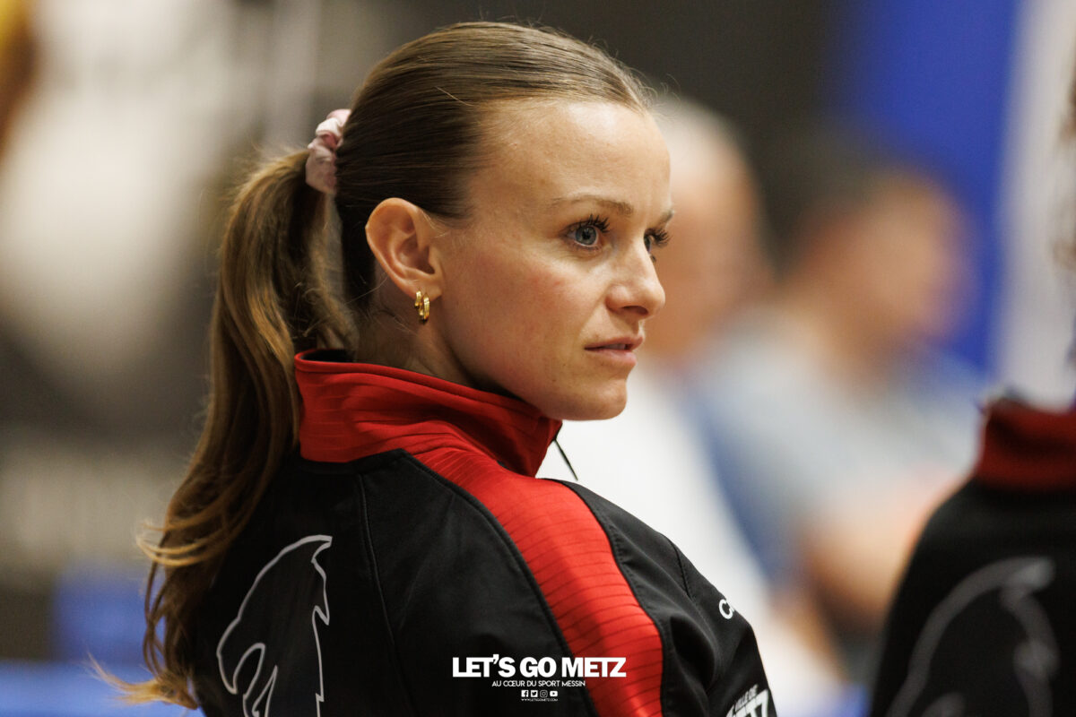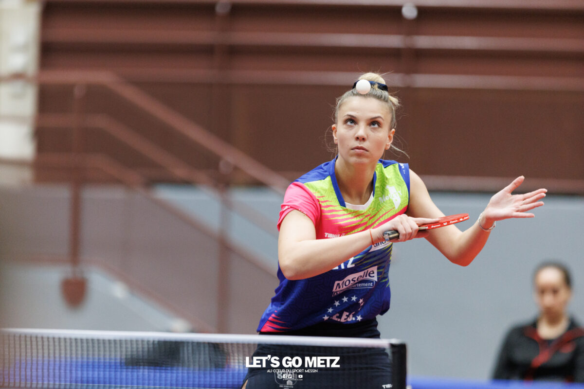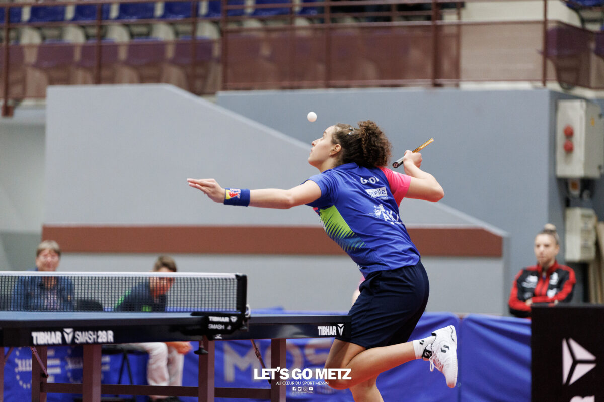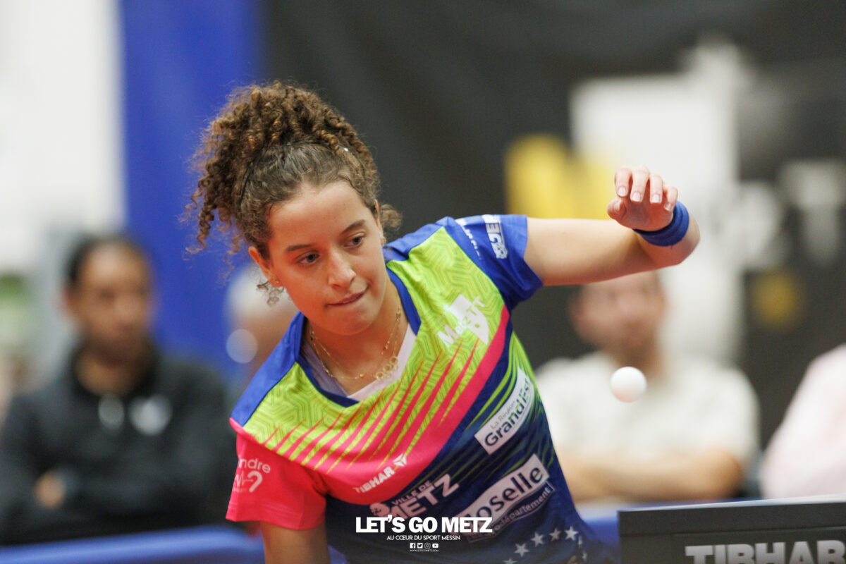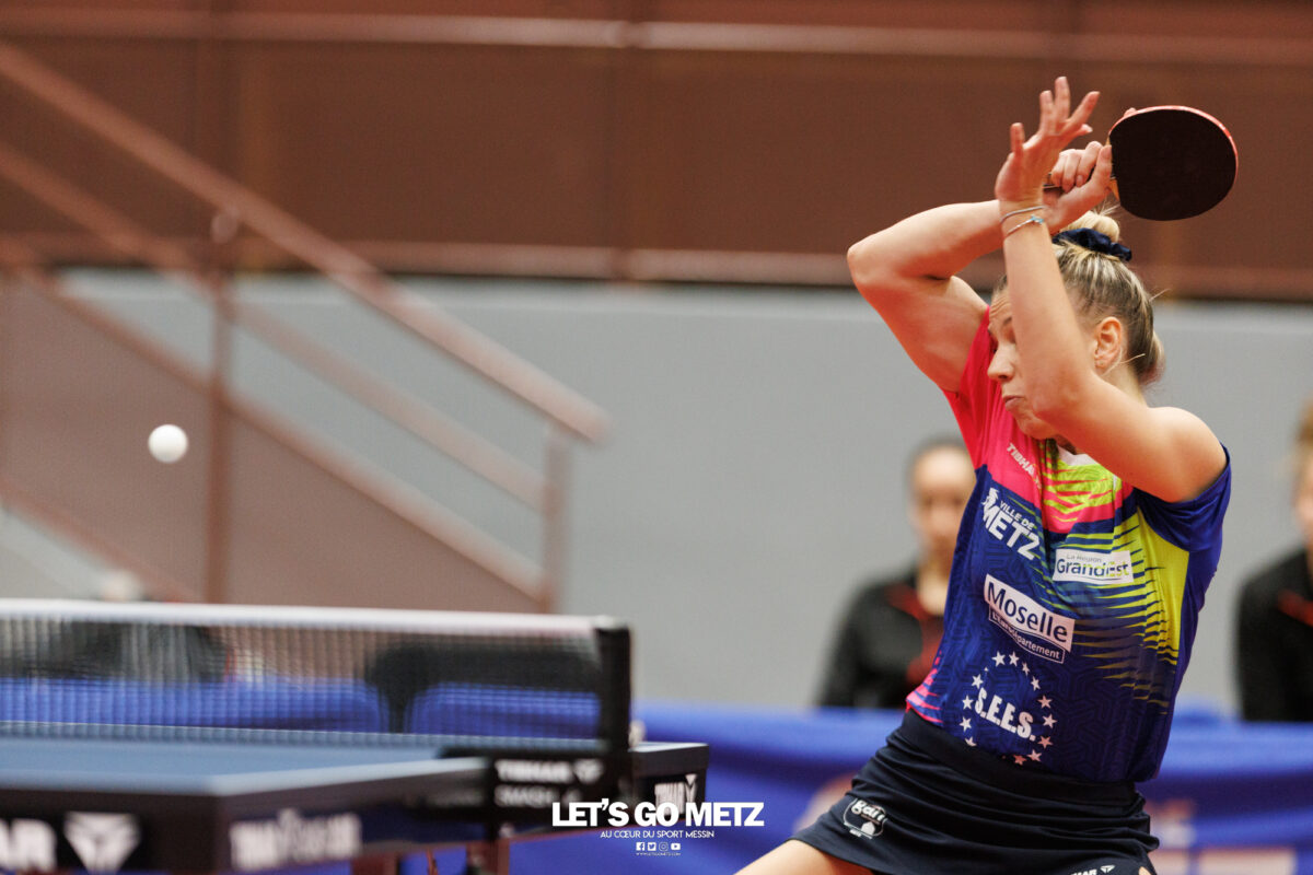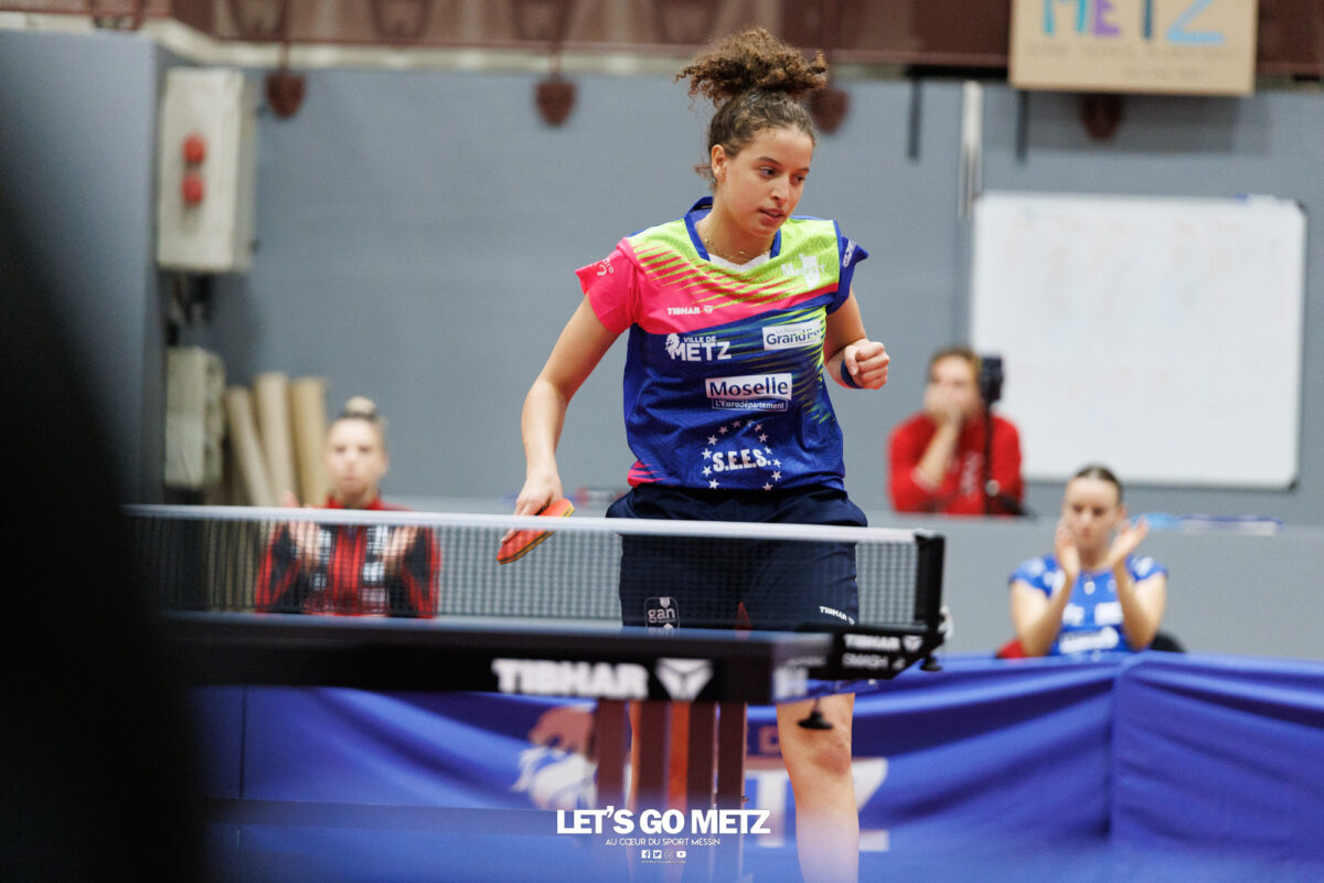 765 Pour son premier match de la saison en PRO A Dames, le Metz TT s’est défait de l’ALCL Grand-Quevilly (3-0) ce mardi 16 septembre. Le Metz TT faisait sa rentrée avec la réception de l’ALCL Grand-Quevilly, mardi 16 septembre, pour le compte de la première journée de PRO A Dames. Championnes de France en titre, mais aussi finalistes malheureuses de la dernière Ligue des Champions, les joueuses de Loïc Belguise abordent cette nouvelle saison avec ambition.Des ambitions caractérisées notamment par l’arrivée d’Hana Goda (17 ans, 25e joueuse mondiale). La pépite égyptienne faisait ses grands débuts avec le Metz TT ce mardi, et a fait étalage de tout son talent pour venir à bout de Laura Pfefer en trois manches (1-0). Une première probante !Dans la foulée, l’historique du club Adina Diaconu lâchait un petit set mais s’imposait relativement aisément contre la Chinoise Zang Xiaotong (2-0). Plus en difficulté, Charlotte Lutz concluait tout de même la soirée de la meilleure des manières en battant la Suédoise Filippa Bergand (3-0). Une entrée en matière idéale pour une saison qui s’annonce une nouvelle fois intense. Metz TT 3-0 ALCL Grand-Quevilly Goda – Pfefer : 11-3, 11-4, 11-5.Diaconu – Zang : 10-12, 11-2, 11-5, 11-7.Lutz – Bergand : 11-5, 11-3, 8-11, 14-12. Classement PRO A DamesRésultats de la journée et calendrier Crédit photo : Nicolas Martino / Let’s Go Metz