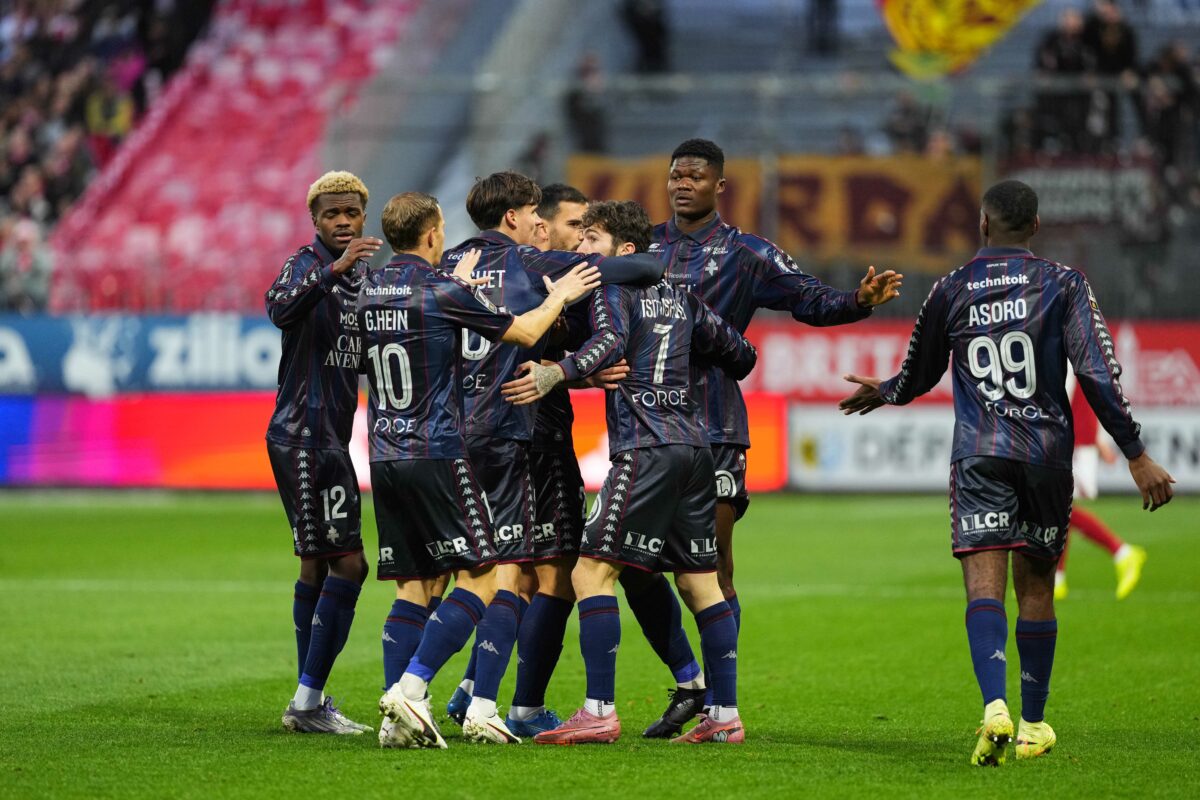 56 Au terme d’un match animé ce dimanche 23 novembre 2025, le FC Metz a coulé dans les derniers instants face à Brest (3-2). La faute à des erreurs manifestes. Les Grenats pourraient bien le regretter… « C’est inconcevable. » Stéphane Le Mignan ne mâche pas ses mots quand il s’agit de qualifier ce qui a amené la défaite des Grenats en terre bretonne dimanche soir. « Je leur ai dit que j’avais l’impression qu’on ne connaissait pas les règles. […] On ne peut pas faire des erreurs comme ça. On ne peut pas commettre ça à ce moment-là du match« , tonne l’entraîneur messin, remonté en conférence de presse. Série de faux pas C’est peu dire que les Lorrains n’auraient pas trouvé meilleure façon de se saborder si ils l’avaient intentionnellement voulu. Une série de faux pas, dans le temps additionnel de la deuxième période, qui commençait avec le gain de temps tenté par Jonathan Fischer qui n’était pas du goût de l’arbitre, Gaël Angoula. Application stricto sensu de la règle : corner pour l’adversaire… puis un premier pénalty, après une longue consultation de la VAR pour décider si Fodé Ballo-Touré avait effectivement touché le ballon du bras dans son duel avec Ludovic Ajorque. Était-ce l’heure de la douche froide ? Pas encore ! Le portier danois rattrapait son erreur et donnait au FC Metz un sursis, en repoussant d’une main gauche ferme le coup de pied de Romain Del Castillo. Le plus dur semblait être fait pour des Messins qui n’avaient plus qu’à faire le dos rond en attendant le coup de sifflet final. Mais là encore, l’envie de repousser les limites était trop forte. Dans un geste presque désespéré, Alpha Touré poussait Lucas Tousart dans la surface messine, qui ne se faisait pas prier pour tomber au sol. L’arbitre hésitait, puis montrait à nouveau le petit point blanc après un (très rapide) coup d’œil à l’écran du VAR. Cette fois-ci, pas de surprise : Del Castillo ajustait Fischer et offrait la victoire aux siens à la 100è minute de jeu. Issue frustrante mais logique Cette tournure funeste ne saurait occulter la teneur globale de la rencontre, qui a été sans appel à l’avantage du Stade Brestois. Les statistiques parlent d’elles-mêmes : vingt tirs des Finistériens pour sept des Mosellans, 49 duels gagnés contre 35, un gros avantage dans la possession de balle. « Le contenu global a été délicat », reconnaît l’entraîneur messin. Notamment en première mi-temps, « l’une des plus pauvres depuis longtemps. On était devancés sur tout. On était pris en 1 contre 1. On était en difficulté au niveau technique… [C’est] comme si on n’était pas dans le rythme.« C’est effectivement en tout début de rencontre que le FC Metz se faisait surprendre sur un long ballon venu de la défense brestoise en direction de Pathé Mboup. Ce dernier profitait du marquage très laxiste de ses vis-à-vis pour ajuster Jonathan Fischer d’un ballon qui tapait entre ses jambes avant d’aller au fond des filets (2′). La réaction messine était toutefois immédiate, quasiment un copier-coller : Terry Yegbe adressait le ballon dans la profondeur à Giorigi Tsitaishvili, qui prenait le meilleur sur Kenny Lala et mettait le coup de pied suffisant pour marquer son premier but de la saison (6′). Une juste récompense pour la remuante recrue géorgienne. La joie des Messins sur l’égalisation de Girogi Tsitaisvili. Photo : Dave Winter/FEP/Icon Sport Puis… plus rien. Le but messin était la seule occasion de ces quarante-cinq premières minutes marquées par la domination brestoise. Remplaçant en lieu et place d’Habib Diallo, Joel Asoro peinait à se montrer disponible et recevoir les ballons. Sans rompre, le bloc défensif bénéficiait du manque de réalisme de l’actif Ludovic Ajorque et des parades bien senties de Jonathan Fischer, notamment sur cette magnifique frappe d’Hugo Magnetti qui partait à toute vitesse dans sa lucarne droite (37′). « La trêve ne nous a pas aidé » Au retour des vestiaires, peu d’évolutions. La passivité défensive, encore une fois, profitait au trio Coulibaly–Ajorque–Doumbia, qui inscrivait un deuxième but sur coup franc (47′). Kamory Doumbia savoure son but du 2-1. Photo : Dave Winter/FEP/Icon Sport Les Messins attendaient l’heure de jeu pour véritablement se montrer et se créer leur premier temps de fort du match, avec des incursions successives de Girogi Tsitaishvili puis Cheikh Tidiane Sabaly, sans succès mais avec le bénéfice de remettre un peu de doutes dans les têtes adverses (63′). Gagnants en confiance au fil des minutes, les Grenats allaient finalement voir leurs efforts récompensés grâce à un énième centre de Sabaly malencontreusement dévié par Coulibaly dans sa propre cage (79′). La suite, on la connaît… « Dans l’ensemble, on a eu du mal à développer quelque chose d’intéressant aujourd’hui », reconnaît Le Mignan. La trêve internationale a-t-elle freiné des Grenats qui restaient sur une belle série de trois victoires d’affilée ? « Elle ne nous a pas aidé », confirme-t-il. C’est la fin d’une belle série ». Et désormais, « le plus dur recommence… » au stade Francis-Le Blé de Brest (Finistère), Mehdi Abirez. Stade Brestois 3 – 2 FC Metz Stade Brestois : Coudert – Lala, Chardonnet, Coulibaly, Guindo – Chotard, Magnetti (Tousart, 77′) – Mboup (Baldé, 77′), Del Castillo, Doumbia (Labeau Lascary, 66′) – Ajorque. FC Metz : Fischer – Kouao (Ballo-Touré, 67′), Gbamin, Yegbe, Colin – Touré, Deminguet (Traoré, 67′) – Sabaly, Hein, Tsitaishvili (Bokele, 67′)- Asoro (I. Sané, 77′). Buts : Mboup (2′), Tsitaishvili (6′), Doumbia (47′), Coulibaly (c.s.c., 79′), Del Castillo (s.p., 90+9′). Avertissements : Doumbia (56′), Ballo-Touré (83′), Sabaly (84′), Coulibaly (86′), Touré (90+’). Expulsion : Danilson da Cruz (adjoint de Stéph