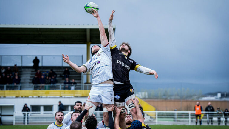 593 Le RC Metz recevait Rillieux pour la 21ème journée de Fédérale 2. Un match serré entre les deux équipes a laissé place à une nouvelle déception messine. La réception de Rillieux semblait abordable pour le RC Metz. Les deux équipes font partie du bas de tableau de Fédérale 2 et dans leur quête d’une deuxième victoire cette saison les messins n’ont plus le temps d’hésiter. Cueillis à froid par les Rhodaniens, les hommes de Géraud Gas devaient travailler, comme souvent, à réaction pour faire douter leurs adversaires du jour. Se montrant réalistes ils renversaient un 0 – 10 pour clore la première mi-temps en avance de deux points : 12 – 10. De retour du vestiaire les choses continuaient de sourire aux hommes en noir qui ajoutaient 5 points à leur total. Pourtant au terme d’efforts Rillieux revenait à égalité et laissait présager d’une fin de match tendue. Les messins capitalisaient sur pénalité et reprenaient trois précieux points mais les visiteurs maintenaient la pression avec une nouvelle égalisation à la 72ème minute.Dans les derniers instants les messins doublaient de maladresse et une ultime faute évitable donnait la pénalité de la victoire à Rillieux. Score final de ce RC Metz – Rillieux : 20 – 23 Il ne reste que deux matchs pour que les joueurs du RC Metz fassent marque d’orgueil pour aller chercher une deuxième victoire cette saison avant une descente en Fédérale 3. Pourquoi pas le week-end prochain, dans le cadre d’un match entre mauvais élèves face à Lons-le-Saunier, sous les yeux du président Morgan Parra… La galerie du match Crédit photo : Lilian Bordron / LGM
