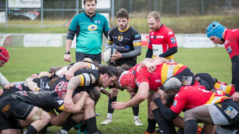 435 Le RC Metz s’est incliné face à Orléans en Fédérale 2 ce dimanche, non sans livrer bataille. Englué dans une série de 11 défaites dont deux coup sur coup à plus de 60 points encaissés, le RC Metz continue de chercher sa voie en Fédérale 2. Privé de nombreux joueurs, Ludovic Mercier a dû une nouvelle fois bricoler pour aligner un quinze compétitif pour affronter Orléans, second de la poule. Si bien que l’équipe alignée affichait une moyenne d’âge proche des 21 ans. Une entame folle Cela n’a pas empêché les messins de réaliser une entame de match aboutie avec un essai inscrit rapidement par l’intermédiaire de Vasseur, sans transformation. Les visiteurs profitaient d’une pénalité pour rester au contact mais un deuxième essai messin venait aggraver la marque, par le biais de Knaff, sans pour autant être transformé une nouvelle fois. Cerise sur le gâteau, Guerimand réussissait une passe au pied bien sentie qui après un bon échange atterrissait dans les mains de Ait El Kaïd qui faisait danser la défense adverse pour faire aboutir sa course dans l’en but. Magistral. L’essai était transformé pour sceller une belle avance : 17 – 3 au bout d’une dizaine de minutes de jeu seulement. Rattrapés par la patrouille Malheureusement toutes les bonnes choses ont une fin et malgré l’euphorie des hommes en noir les Orléanais parvenaient à imposer leur jeu. Obtenant une pénalité, ils transperçaient le rideau défensif des locaux, non sans une passe litigieuse et inscrivaient leur premier essai, non transformé. (17-8, 13ème)Alors que la situation météorologique s’aggravait avec notamment des rafales de vent face aux Messins, le beau jeu disparaissait pour de bon au profit de dégagements au pieds atterrissant derrière le tireur. Un jeu auquel les Orléanais s’adaptaient bien mieux que les locaux et qui aboutissait à un nouvel essai à la 23ème minute (17-15). En difficulté dans de nombreux compartiments du jeu, les hommes de Ludovic Mercier compensaient par le courage pour tenir bon jusqu’à la mi temps mais ils encaissaient à nouveau à la 32ème minute alors qu’aucun plaquage ne parvenait à déstabiliser les rouges sur leur chemin (17-22). Une dernière occasion finissait dans l’en but des messins devenus bien inoffensifs. Un retournement de situation sévère pour un RC Metz qui avait pourtant mis les ingrédients très tôt pour se mettre à l’abri. Score à la mi temps : RC Metz 17 – 29 Orléans A 14 contre 14 De retour des vestiaires, les hommes de Ludovic Mercier tentaient de se remettre en ordre de marche en profitant d’une bonne pénalité (20-29, 48ème). Mais l’accalmie était de courte durée puisque Guérimand tout comme l’un de ses homologues Orléanais faisait les frais d’un échange d’amabilités collectif. Les deux hommes quittaient le match sur carton rouge peu après la 50ème minute de jeu. La partie, désormais à 14 contre 14 perdait en rythme mais les Orléanais s’installaient progressivement dans le camp Messin. Une assise suffisante pour qu’à la 75ème, Lambert aplatisse avant une transformation de Junquet pour la dernière évolution du score.Fin de ce RC Metz – Orléans : 20 – 36 Nouveau revers pour les joueurs du RC Metz, mais au goût beaucoup moins amer que les précédents. Loin d’avoir subi réellement, les hommes en noir peuvent être fiers d’avoir produit de l’engagement et ne pourront que regretter d’avoir encaissé des essais trop faciles en fin de première période, venant entacher une partie très sérieuse.Prochain rendez vous, le 27/02 à Ris Orangis avant la réception de Pontarlier le 06/03. Crédit photo : Matthieu Henkinet