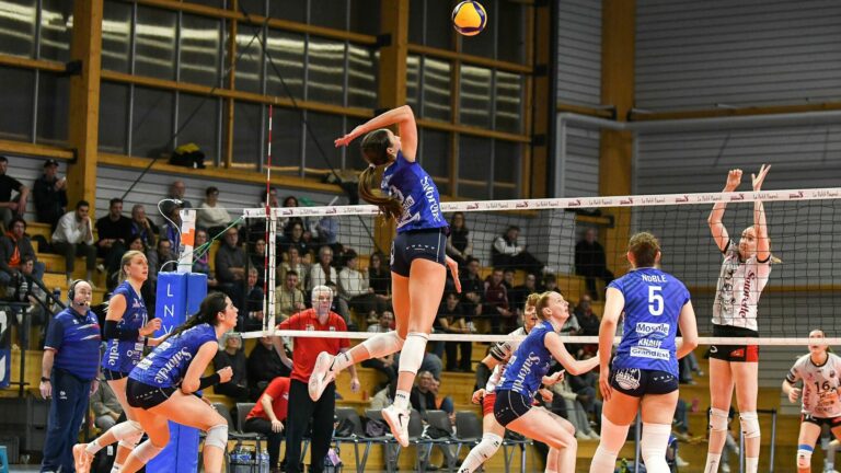 52 Le TFOC prend une première option après sa victoire en quatre sets à Chamalières. Après une entame de partie accrochée, Terville Florange a dominé son adversaire, sauf dans la troisième manche. Ce succès permet de se préparer au mieux pour le match retour. Les Bleues dans les meilleures dispositions avant le match retour. Le TFOC s’impose à Chamalières dans ce premier duel des play-ins. Après une bataille acharnée dans la première manche, les joueuses de Romain Pitou ont écarté leur adversaire en quatre sets. Elles se sont appuyées sur leur force des dernières semaines pour faire la différence. Avec cette victoire, Terville Florange entame sereinement la réception des Anvergnates mardi prochain. Cinq balles de set C’était pourtant Chamalières qui entrait tambour battant dans la rencontre. Sans match le week-end dernier et devant leur public, Atman Toubani et ses joueuses faisaient la course en tête (9-4). L’entraîneur auvergnat pouvait surtout compter sur sa meilleure marqueuse Kora Schaberl, de retour après son absence lors de la dernière sortie de son club en saison régulière. Très vite, le TFOC réagissait notamment grâce à son bloc. Dayana Segovia remettait les deux équipes à égalité (11-11). Et elles se répondaient coup pour coup. Aucune ne voulait céder la première. Au bout de la cinquième balle de set et après en avoir sauvé une, les Mosellanes prenaient les commandes (28-30). La réaction de Chamalières En confiance, elles imposaient désormais leur rythme (1-5). Dès que l’adversaire s’approchait, Terville Florange accélérait à nouveau pour conserver un matelas confortable. Megan Wilson, puis Tatiana Kulikova aggravaient encore un peu plus l’avantage au score (10-16). Grace Chillingworth se montrait aussi dans cette fin de deuxième manche. Avec une telle avance, les jeux étaient pliés (17-25). Mais les Chamalièroises ne disaient pas leur dernier mot. Dos au mur, elles se relançaient notamment par sa paire de centrales. Emma Boyd et Fatoumatou Fanguedou s’activaient au contre et à l’attaque (9-4). Bien aidées par des Bleues en baisse de régime, les locales poursuivaient leur dynamique. Et Kora Schaberl participait activement à réduire l’écart (25-19). Camille Hendrickson sous le maillot du TFOC. © Mikaël Frank – Let’s Go Metz Des Bleues solides Malgré ce coup de mou, les Tervillo-florangeoises réenclenchaient la marche en avant (1-4). La différence se faisait pourtant en milieu de set. Le service gagnant de Megan Wilson offrait trois points précieux à son équipe (12-15). Chamalières comprenait sa défaite prochaine. Parce que le TFOC ne lâchait pas. Après avoir été remplacée par Winderlys Medina dans la troisième manche, Grace Chillingworth retrouvait de la fraîcheur à la fin. Suffisant pour voir les Mosellanes s’imposer (20-25). Chamalières 1 – 3 TFOC Sets : 28-30, 17-25, 25-19, 20-25. Composition Chamalières : Mauriat, Boyd, Meunier, Schaberl, Fanguedou, Chouikh Barbez et Jeagy (L). Entrées en jeu : Ricks, Blanc. Composition TFOC : Strand, Kulikova, Hendrickson, Segovia, Wilson, Chillingworth et Coulet (L). Entrées en jeu : Medina, Noble, Erman. Crédit photo : Mikaël Frank – Let’s Go Metz (archive).