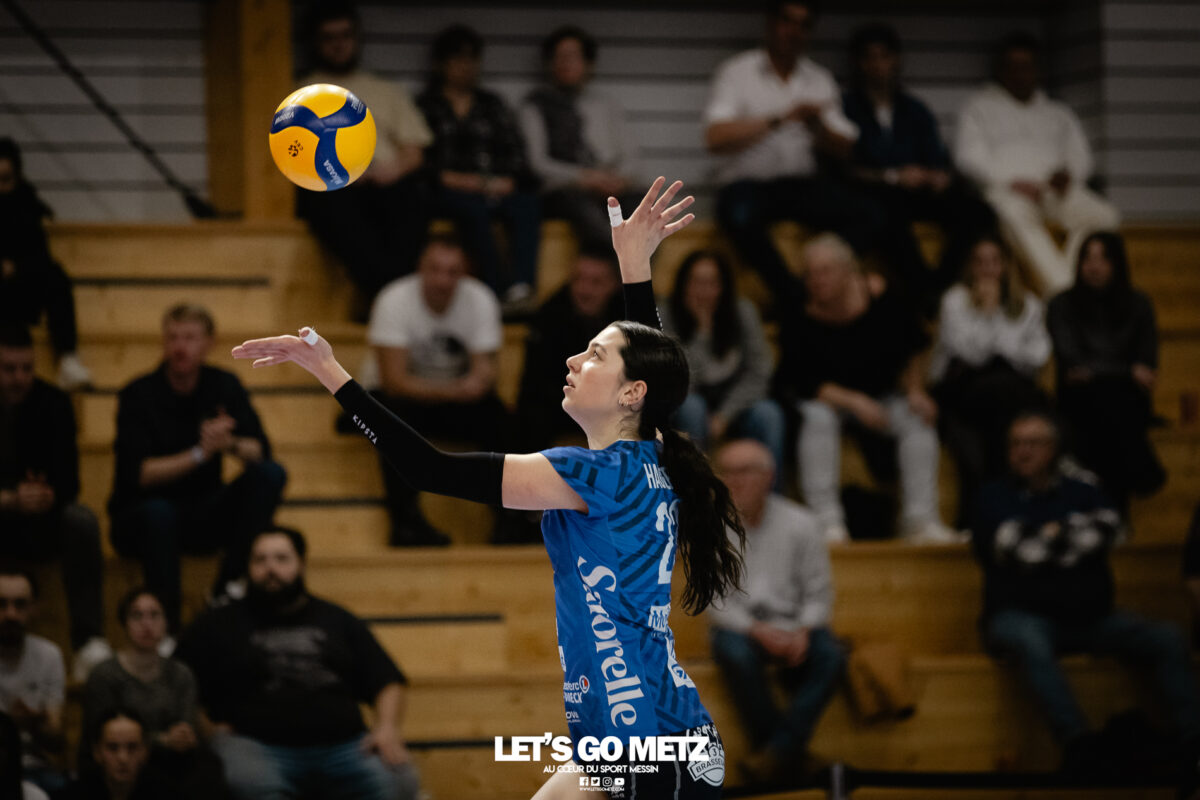 51 Le TFOC domine Marcq-en-Barœul en trois sets. Après une première manche serrée, Terville Florange s’est appuyé sur ses forces pour assurer la victoire. Le rebond bienvenu pour les Bleues. Le TFOC prend le meilleur sur Marcq-en-Barœul. Après trois défaites consécutives, les joueuses de Romain Pitou retrouvent le chemin de la victoire. Un succès en trois sets. Avec le retour de Grace Chillingworth, Julia Haggerty et Megan Wilson sur le terrain, Terville Florange a repris des forces, notamment au bloc. Avec les trois points, les Mosellanes passent devant leur adversaire au classement. Une fin de set sous tension Sarah Coulet réceptionneuse-attaquante. Deniz Erman libéro. Voilà la surprise au coup d’envoi du match. Toujours sans Camille Hendrickson et Winderlys Medina, Romain Pitou composait une nouvelle fois une équipe inédite. Et ça fonctionnait. Le TFOC tenait bien mieux la réception qu’à Béziers. Les deux équipes étaient dos à dos (8-8). Mais c’était Marcq-en-Barœul qui accélérait le premier. Avec Abda Nesrine efficace, les joueuses de Thibault Gosselin prenaient une option (10-15). Pourtant, les Bleues ne lâchaient rien. Elles profitaient des trop nombreuses fautes adverses jusqu’à renverser la vapeur. Après une première balle de set, elles convertissaient leur deuxième occasion (26-24). Le TFOC déroule En confiance, Terville Florange était complètement lancé. Les partenaires d’Izzi Strand se détachaient rapidement (7-3). Contrairement aux Marcquoises, elles ne commettaient presque aucune erreur. Une nouvelle différence par rapport à la dernière journée. Malgré un retour à deux points de l’adversaire, les Mosellanes refaisaient immédiatement l’écart (13-7). Ni Peyton Wilhite, ni Naomy Govou ne trouvaient la solution. Tout l’inverse de Grace Chillingworth et de Gloria Taofifenua. Les deux attaquantes portaient leur équipe. Dans une deuxième manche à sens unique, le TFOC dominait largement (25-12). La victoire au bout Dos au mur, Thibault Gosselin tentait un changement avec l’entrée d’Aminata Dia. L’ex-joueuse de Terville Florange faisait son retour sous ses nouvelles couleurs. Formée en Moselle et passée par deux fois au club, la centrale française espérait jouer un mauvais tour à son ancienne équipe. Il n’en était rien. Elle constatait surtout la supériorité des Bleues, notamment au bloc. Après un début de troisième set serré, les coéquipières de Julia Haggerty créaient un premier écart (11-8). Une avance qu’elles maîtrisaient jusqu’à la fin. Le TFOC décrochait enfin une victoire après trois défaites de suite (25-20). TFOC 3 – 0 Marcq-en-Barœul Sets : 26-24, 25-12, 25-20. Composition TFOC : Strand, Haggerty, Coulet, Taofifenua, Wilson, Chillingworth et Erman (L). Entrée en jeu : Louessard. Composition Marcq-en-Barœul : Van de Vyver, Kjolhede, Govou, Nesrine, Jorgensen, Wilhite et Brokking (L). Entrées en jeu : Benoît, Imbert et Dia. Crédit photo : Julien Buret – Let’s Go Metz (archive).
