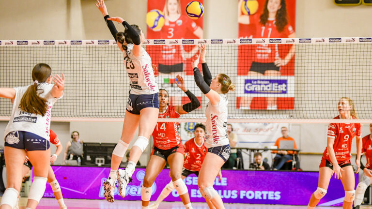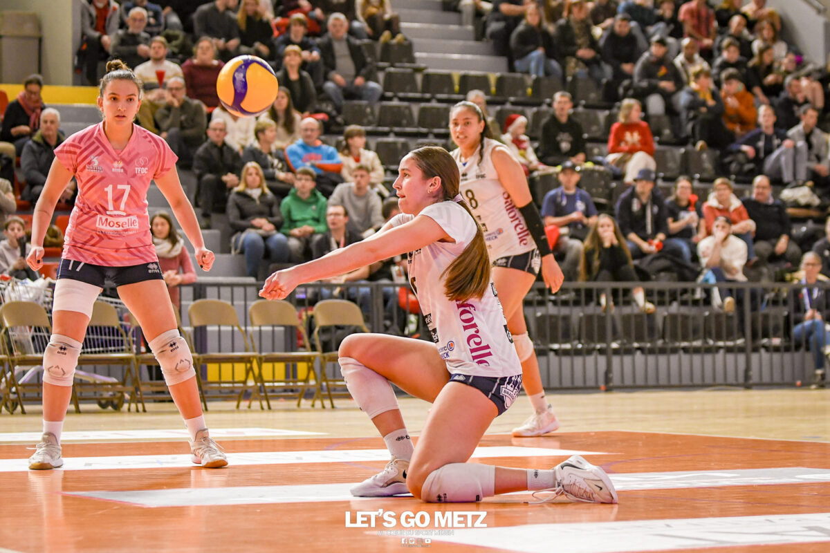 182 Le TFOC prend le meilleur sur Béziers en quatre sets. Porté par Medina et Chillingworth, Terville Florange a logiquement dominé le promu. Un autre derby du Grand-Est dans la poche. Après Vandœuvre il y a plusieurs semaines, c’est au tour de Saint-Dié de tomber face au TFOC. Malgré la perte d’un set, les joueuses de Romain Pitou se sont imposées avec la manière. L’occasion d’effacer l’élimination en Coupe de France à Béziers mardi dernier. Terville Florange termine sa phase aller de saison régulière sur une victoire. Avec les trois points, les Mosellanes pointent à la 8e place au classement. Le TFOC donne le ton Saint-Dié lâchait les deux premiers coups de la soirée. Un premier round d’observation entre les deux équipes. Une fois l’adversaire maîtrisé, le TFOC prenait le large. Megan Wilson offrait cinq points d’avance avec un bloc autoritaire (10-15). Décidément, le public voyait beaucoup la numéro 99. L’Américaine se montrait à son avantage entre le contre et l’attaque. Quand ce n’était pas elle, c’était Winderlys Medina qui faisait la différence. Son service mettait en difficulté la réception vosgienne (14-21). Un score qui permettait à Romain Pitou de faire entrer Isabella Noble au relais d’Izzi Strand. Sur une énième faute adverse, les Bleues s’emparaient de la première manche (18-25). Les Bleus lâchent un set Les joueuses d’Emmanuel Dumortier réagissaient. Les deux formations se répondaient coup pour coup. Mais Terville Florange se donnait de l’air au meilleur des moments (16-19). Tout semblait bien parti jusqu’au déraillement des Mosellanes. Paula Nečiporuka égalisait (21-21). Kahaia Tauraa lâchait son bras. Kari signait un ace. Et le TFOC se retrouvait hors de portée (25-22). Un coup dur transformé en un carburant pour les Bleues. Grace Chillingworth remettait les pendules à l’heure (0-3). Avec autorité, les coéquipières de Gloria Taofifenua ne laissaient aucune chance au promu. Izzi Strand s’offrait même une deuxième main (6-13). Malgré une tentative de retour adverse, les Tervillo-florangeoises reprenaient l’avantage au score (17-25). Un succès pour terminer la phase aller Terville Florange ne voulait pas commettre la même erreur que dans le deuxième set. Les Mosellanes maintenaient le rythme de la dernière manche. Avec Winderlys Medina, MVP de la rencontre, et Grace Chillingworth, elles s’assuraient une première avance (10-13). Les deux réceptionneuse-attaquantes portaient leur équipe vers la victoire. Gloria Taofifenua pointait aussi le bout de son nez (14-18). Avec cet avantage, plus rien n’arrêtait le TFOC. Les joueuses de Romain Pitou s’offraient le derby du Grand-Est (17-25). Saint-Dié 1 – 3 TFOC Sets : 18-25, 25-22, 17-25, 17-25. Composition Saint-Dié : Zumach, Tauraa, Labaste, Nečiporuka, Anadi, La Rosa et Andersson E. (L). Entrées en jeu : Taleux, Piccolo. Composition TFOC : Strand, Wilson, Medina, Taofifenua, Haggerty, Chillingworth et Coulet (L). Entrées en jeu : Noble, Louessard, Erman. Crédit photo : Mikaël Frank – Let’s Go Metz.