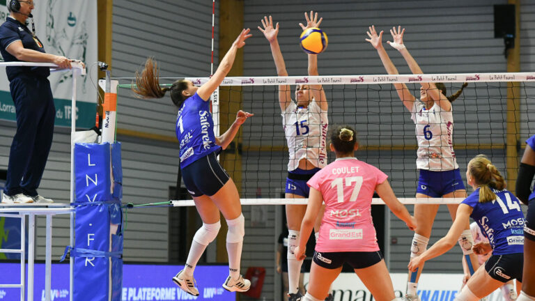 750 Le TFOC l’emporte face à France Avenir, en quatre sets, pour la 11e journée de championnat. Malgré la victoire, les Bleues ont été bousculées par leur adversaire. Les Bleues assurent l’essentiel. Le TFOC s’impose logiquement, en quatre sets, face à France Avenir. Après le RC Cannes, Quimper et Levallois Paris, les joueuses de Romain Pitou enchaînent une quatrième victoire consécutive, l’un des seuls véritables enjeux de la 11e journée de championnat pour elles. Dans une opposition largement à sa portée, Terville Florange s’est pourtant employé pour prendre le meilleur sur son adversaire. Les Mosellanes ont concédé le seul set gagné par les protégées de Félix André cette saison. Avec les trois points, elles restent au contact du wagon de tête. Biamba Kabengele, première titularisation Une première surprise d’entrée pour le TFOC. Biamba Kabengele faisait ses premiers pas dans la peau d’une titulaire. Avec un temps de jeu famélique depuis le début de la saison, la Canadienne remplaçait à l’attaque Lexi Hadrych, absente pour la rencontre. Et tout tournait bien pour les Bleues. Elles prenaient rapidement le large (9-4). Tatiana Kulikova et Karson Bacon s’amusaient face à leur vis-à-vis. Après avoir fait l’écart, Terville Florange gérait tranquillement le score. Le service suffisait à déstabiliser France Avenir. Le club mosellan s’adjugeait la première manche en patron (25-19). Le TFOC dominait moins les débats dans le second acte. France Avenir passait devant pour la première fois de la partie (6-7). Les jeunes joueuses de Félix André posaient désormais des problèmes aux Mosellanes. Alors que Biamba Kabengele était l’une des meilleures marqueuses du match, elle laissait sa place à Lily Kiciak. Une première pour la Française du centre de formation de Terville Florange. Après avoir été bousculées, les Bleues faisaient enfin le trou en fin de set. Elles se mettaient à l’abri et enfonçaient leur adversaire (25-20). Un set concédé Le travail était pourtant loin d’être fini. Encore une fois, le TFOC lâchait quelques points, ce qui ne permettait pas de creuser l’écart. France Avenir s’accrochait et faisait la course en tête (12-14). Les coéquipières de Lila Girgenti s’offraient même quatre points d’avance. Alors que les Mosellanes arrivaient jusque là à s’en sortir, elles restaient cette fois reléguées derrière. Les fautes s’accumulaient. Tout devenait approximatif, notamment à la passe. Après un début de saison sans le moindre set gagné, France Avenir remportait pour la première fois une manche (22-25). Le TFOC évite le pire Le scénario commençait à tourner dans le mauvais sens pour Terville Florange (8-11). Les Bleues avaient toutes les peines du monde à terminer un point. Avec un bloc-défense en plein doute, elles se faisaient mal mener par leur adversaire. Mais tout s’inversait rapidement. Le TFOC remettait un coup d’accélérateur (16-12). Un bon bol d’air pour Romain Pitou et son staff. Malgré le set perdu et les difficultés, les Mosellanes sortaient vainqueurs d’une rencontre loin d’avoir tout maîtrisé. TFOC 3 – 1 France Avenir Sets : 25-19, 25-20, 22-25, 25-18. Composition TFOC : Kabengele, Chereau, Kulikova, Fricova, Lindgren, Bacon et Coulet (L). Entrées en jeu : Louessard, Messein, Kiciak, Glaab. Composition France Avenir : Galabert, Govou, Jioshvili Ravva N., Sebiti, Melinard-Chanteu, Girgenti et Randrianantenaina (L). Entrées en jeu : Jioshvili Ravva K., Iloai, Mathi, Canonge. Crédit photo : Mikaël Frank / Let’s Go Metz.