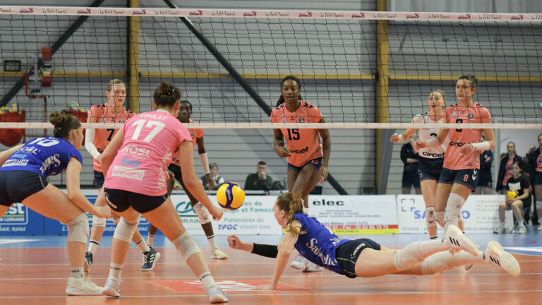 767 Le TFOC reste impuissant face à Nantes pour la 15e journée de championnat. Battues en trois sets, les Bleues ont essayé sans jamais croire à un autre résultat que la défaite. Une fin d’année au goût amer. Le TFOC s’incline sans surprise, en trois sets, face à Nantes. Toujours en effectif réduit, les Bleues ont encore une fois regardé leur adversaire totalement impuissantes. Rien ne semble pour l’instant en mesure d’arrêter la série noire. Après la rencontre face aux Nantaises, c’est une quatrième défaite consécutive pour Terville Florange. « J’espère retrouver tout le monde le plus vite possible, mais c’est quelque chose que nous ne contrôlons pas. Nous allons subir et attendre d’ici là. Je ne pense pas que la nouvelle recrue sera présente pour Mulhouse », a réagi Romain Pitou après la défaite. Au classement, les Mosellanes voient désormais Volero Le Cannet et Béziers passer devant. Elles pointent à la 8e place avec seulement deux points sur le 9e, Bordeaux, et cinq points sur la place de relégable. Nantes au-dessus Le début de match était bien plus serré qu’annoncé. Le TFOC résistait aux assauts des Neptunes (9-10). Avec leur agressivité au service, les Mosellanes posaient des problèmes à leur adversaire. Elles affichaient un visage combatif malgré les nombreuses absences. Mais tout restait fragile du côté des Bleues. Dès que Nantes accélérait, les joueuses de Cesar Hernández prenaient le large (13-18). Halimatou Bah et Haylie Bennett s’occupaient de mettre leur équipe dans les meilleures dispositions (20-25). Une fin de set en défaveur du TFOC Le scénario se répétait dans le deuxième set. Terville Florange tenait tête à l’une des meilleures formations du championnat. Les protégées de Romain Pitou menaient même la danse (13-11). Emmenées par Karolina Fricova mieux inspirée qu’en début de partie, elles donnaient un peu d’espoir à leurs supporters. Une lueur vite éteinte. Le bloc et la défense mosellane n’inquiétaient pas les attaquantes adverses. Une fois Nantes solidement devant, les jeux étaient faits (18-25). Les Bleues rattrapées Complètement dos au mur, le TFOC tentait encore plus le tout pour le tout. Les partenaires de Justine Chereau profitaient de la baisse de régime des Neptunes (10-4). Elles optimisaient au mieux leur jeu face aux fautes répétées de Nantes. Mais, à l’image de la rencontre, l’avance en faveur des Bleues fondait comme neige au soleil (19-19). Les Nantaises se reposaient sur leur talent plus que sur leur qualité de volley. Sans briller, elles s’imposaient face à Terville Florange trop limité (21-25). TFOC 0 – 3 Neptunes de Nantes Sets : 20-25, 18-25, 21-25. Composition TFOC : Kiciak, Chereau, Bacon, Fricova, Lindgren, Louessard et Coulet (L). Entrées en jeu : Messein, Glaab. Composition Nantes : Powell, Robinson, Ratahiry, Bennett, Nilsson, Bah et Giardino (L). Entrées en jeu : Chameaux, Jansen, Delic, Vidaller. Crédit photo : Mikaël Frank / Let’s Go Metz.