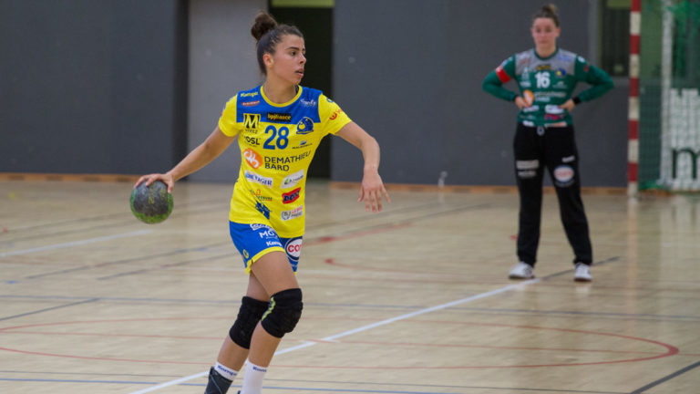 789 La jeune demi-centre qui était prêtée pour la fin de saison au Sambre Avesnois Handball en D2F, a décidé d’y prolonger l’aventure pour une saison complète et quitte ainsi le centre de formation du Metz Handball dont elle était capitaine. Le Metz Handball se sépare à nouveau d’une jeune demi-centre issue de sa formation. Quelques jours après l’annonce de la prolongation d’Ilona Di Rocco à Dijon, c’est au tour de Léa Ballureau de transformer un prêt en destination définitive. Cédée depuis Janvier 2021 au Sambre Avesnois Handball, actuel 3ème de la poule 1 de Division 2 Féminine, la Mosellane a su inscrire 10 buts en 5 rencontres pour ses débuts à ce niveau de compétition et pour sa première expérience loin de sa Moselle natale.Avant son départ en prêt elle jouait un rôle important au sein de l’équipe de Nationale 1 de Metz Handball, puisqu’elle en était capitaine sous les ordres de Clément Alcacer depuis le départ de Laura Portes en 2020. Une promotion à l’issue d’une saison 2019/2020 qui coïncide avec ses débuts parmi les Dragonnes dont elle a intégré le groupe à plusieurs reprises et avec lesquelles elle a disputé quatre rencontres. Cette prolongation est officialisée alors que le Sambre Avesnois Handball redouble d’ambition en vue de la saison à venir et se prépare à débuter ses playoffs 2020/2021 face au leader de la poule opposée, l’invaincu Celles sur Belle. Léa Ballureau y jouera notamment face à deux de ses anciennes capitaines au Metz Handball : Laura Godard et Laura Portes, avec qui elle avait remporté le titre de N1F à l’issue de la saison 2018/2019. Crédit photo : Matthieu Henkinet