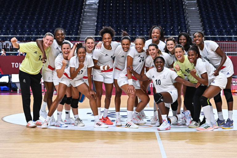 422 A l’issue d’un match solide face aux Pays Bas en quart de finale, l’équipe de france de handball file vers le dernier carré et se rapproche d’une opportunité de médaille Olympique à Tokyo. Elles ne se sont pas facilité la tâche pour en arriver là. Après une phase de groupe compliquée qui a vu l’équipe de France se qualifier sur le fil avec une quatrième place critique, il ne fallait commettre aucune erreur lors du premier match à élimination directe. Alignées face à une « tête de série », incarnée par l’équipe Néerlandaise championne du monde en titre et coachée par Emmanuel Mayonnade et Ekaterina Andryushina, l’opposition promettait quelques étincelles. Un démarrage canon Bien dans leur match dès le coup de sifflet inaugural, les Françaises creusaient rapidement l’écart en chipant quelques ballons aux Oranjes et en se reposant sur la forme d’Amandine Leynaud. Emmanuel Mayonnade se retrouvait contraint à poser deux temps morts coup sur coup pour stopper l’hémorragie à 10-3 alors que l’on passait à peine la barre des 10 minutes de jeu. Cette prise de risque tactique ne payait absolument pas et 5 minutes plus tard les Françaises continuaient leur domination, bien que moins adroites, en menant 13-4. Alors que tout allait pour le mieux, Olivier Krumbholz posait son premier temps mort. Un choix discutable qui donnait l’opportunité aux Néerlandaises de se réorganiser. Ces dernières signaient un 3-0 dans la foulée pour revenir peu après la marque des 20 minutes à 14-7. Une situation sans danger qui aurait toutefois pu être évitée.Les Françaises ne se laissaient alors pas déstabiliser et continuaient leur travail pour maintenir l’écart jusqu’à la mi temps et un ultime jet de 7 mètres tiré par Grâce Zaadi après une faute de Debbie Bont : 19-11 Une deuxième mi-temps en maitrise Au retour du vestiaire, les Néerlandaises montraient de nouvelles intentions mais au lieu de profiter d’une suspension pour deux minutes de Laura Flippes pour se mettre en confiance, elles se rendaient coupable à leur tour d’une faute par l’intermédiaire de Snelder, qui remettait les équipes à l’équilibre. Alors que les échanges se durcissaient, les joueuses d’Emmanuel Mayonnade entamaient un retour au score mais l’écart restait irrémédiablement à l’avantage Français : 23-17 après 10 minutes. A 20 minutes d’une demi finale Olympique, les Françaises ne baissaient pas en régime et continuaient de faire peser une pression certaine sur les championnes du monde en titre. Si bien que le tableau de score franchissait les dix buts d’écart à 29-19 et ne laissait plus que peu de mystère sur l’issue du match avec seulement 8 minutes restantes à jouer. Un écart qui restera en définitive jusqu’à la fin du match : 32-22. L’équipe de France de Handball accède donc au dernier carré de la compétition Olympique. Dans ce match, les bleues n’ont laissé aucune chance aux Néerlandaises d’Emmanuel Mayonnade en réalisant leur partie la plus aboutie de la compétition. Avec cette montée en puissance remarquable, les bleues semblent conquérir à nouveau un statut de candidates sérieuses au sacre Olympique.De leur côté les Néerlandaises, quittent avec amertume la compétition. Pourtant très solides en phase de poules, elles ont payé cher leur entame poussive dans ce quart de finale. Cette élimination des Jeux Olympiques devrait par ailleurs marquer la fin de la collaboration entre la sélection Oranje et le duo Mayonnade/Andryushina. Les stats messines Debbie Bont (NED) : 2 buts en 3 tirs / 2 suspensions pour 2 minutesMéline Nocandy (FRA) : 1 but en 2 tirsChloé Valentini (FRA) : 1 but en 3 tirs Crédit photo : Iconsport/FFHB