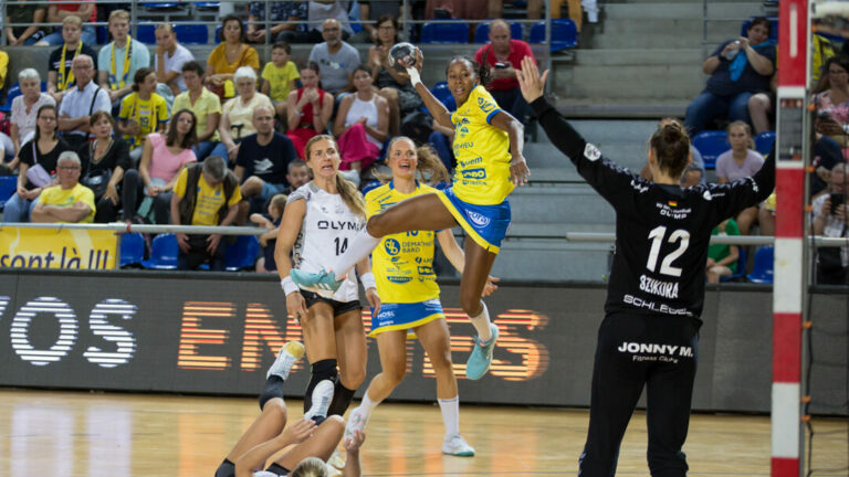 752 Les Dragonnes de Metz Handball disputaient le dernier match de leur pré-saison face à Bietigheim ce samedi. Un test grandeur nature face à leur public, décidé à fêter le retour du handball aux Arènes. L’été a été long pour les fans de handball à Metz, séparés des Dragonnes après une fin de saison tonitruante et une dernière fête à Bercy autour du titre de coupe de France. Entre temps, l’équipe d’Emmanuel Mayonnade a fait peau neuve. Exit Meline Nocandy, Astride N’Gouan, Grâce Zaadi, Ivana Kapitanovic, Adriana Cardoso et bienvenue à Camille Depuiset, Valeriia Maslova, Noémie Barthelemy et Kristina Jorgensen.Un renouvellement important qui poussait il y a peu Emmanuel Mayonnade à poser des panneaux d’avertissements : l’équipe ne sera pas à 100% prête pour la reprise du championnat. Toujours est-il que la réception de Bietigheim a permis de tirer quelques enseignements. Fan day Metz Handball avait vu les choses en grand sur le papier. Séances de dédicaces, remises des cartes d’abonnement par les joueuses, nouveaux maillots disponibles en boutique, stand photo avec les trophées glanés la saison passée… Pourtant de nombreux fans des jaunes et bleus ont dû se résoudre à manquer l’évènement. Entre congrès politique, match de Ligue 2 entre le FC Metz et Dijon et fêtes de la Mirabelle, la concurrence était rude mais surtout, l’accès aux Arènes particulièrement compliqué.A charge de revanche, puisque le public présent a tout de même su marquer sa satisfaction de renouer avec la meilleure équipe de France avant qu’elle n’ait à défendre son titre. Bruna De Paula, nouvelle capitaine de Metz Handball Metz Handball a saisi l’occasion de ce match pour dévoiler l’identité de sa nouvelle capitaine. Le coup d’envoi fictif a servi de passation de flambeau entre Isabelle Wendling et Bruna de Paula. Une « cérémonie » un poil bâclée en quelques secondes, sans déclarations ou relief particulier. Le pari est toutefois pris, le mandat « de Paula » devrait se montrer bien plus remuant que son coup d’envoi. C’est très très simple. J’appelle quiconque à venir passer quinze jours avec nous et ça lui sautera aux yeux que Bruna est la capitaine par excellence pour Metz Handball. […] Bruna est très légitime pour le staff comme pour toutes les joueuses ici. C’est une travailleuse, une fille hyper exigeante, à l’écoute des autres, qui n’est pas fermée, à qui on peut dire tout sans avoir peur de sa réaction. Elle est incroyable et j’apprends à la connaître de plus en plus et c’est une perle. Ça a été très facile pour nous de valider ce choix.Emmanuel Mayonnade en zone mixte Une défense à travailler Du côté du terrain, les joueuses de Metz Handball ont montré des choses intéressantes. Démarrant la rencontre avec un sept assez peu surprenant (Sako – Bont – de Paula – Jorgensen – Bouktit – Burgaard – Valentini) elles tenaient la dragée haute aux championnes d’Allemagne qui ne parvenaient à scorer le break que dans les dernières minutes de la première période. (14-17)En revanche, en deuxième mi-temps les choses se sont gâtées. Entre manque de rythme et erreur répétées, les joueuses de Metz Handball ont laissé Bietigheim prendre les devants.Le principal responsable ? Le secteur défensif mal huilé. Erreurs de placement, précipitation, joueuses obligées de compenser… Autant de situations qui ont permis à Bietigheim d’obtenir des tirs favorables, des suspensions pour deux minutes et des jets de sept mètres, laissant les gardiennes Messines peu en réussite voire en grande difficulté jusqu’au coup de sifflet final (30-37) Un secteur problématique qu’Emmanuel Mayonnade explique en partie On ne maîtrise aucun aspect du très très haut niveau, du moins face à cette adversité là. […] L’ensemble des matchs amicaux laisse à penser qu’on marque des buts et qu’on en prend beaucoup. […] Effectivement, il y a la problématique de la langue. On prend deux fois la même situation en début de deuxième mi-temps avec une joueuse qui sort en pensant qu’une autre lui a demandé. Derrière on prend celui là, plus celui là, plus celui là et ça devient énorme. Il faut bosser la relation, la fluidité pour se mettre au pli.Emmanuel Mayonnade en zone mixte La hiérarchie des jets de sept mètres Les joueuses de Bietigheim ne sont pas les seules à avoir fréquenté la ligne des sept mètres. Côté Messin, trois joueuses se sont essayées à l’exercice. Julie le Blevec a ouvert le bal, sans succès. Suivait Kristina Jorgensen, plutôt en réussite jusqu’à un lob infructueux, avant que Tamara Horacek ne prenne le relai avec une réussite inférieure à ses standards. Une joueuse à l’essai C’était la surprise du chef. Incognito, un visage nouveau a fait son entrée sur le parquet des Arènes. Ni annoncée, ni mentionnée sur l’écran central, l’arrière Angolaise participe aux entraînements des Dragonnes depuis le milieu de semaine. Une pratique courante, qui n’inclut habituellement pas de participation à un match, mais qui a permis cette fois de jauger la joueuse pendant quelques minutes face à une compétition bien réelle.A l’heure actuelle rien n’indique cependant si elle intégrera l’effectif de Metz Handball, comme l’explique Emmanuel Mayonnade. C’est une joueuse Angolaise, elle est arrivée mercredi et repart mercredi prochain. Un agent nous l’a soumise en considérant que ce serait une opportunité intéressante. […] On a encore quelques jours pour se décider. Elle a montré des choses parfois très intéressantes, parfois un peu décevantes. On en est là et on cherche toujours quelqu’un, ce n’est pas un secret.Emmanuel Mayonnade en zone mixte Les statistiques de ce Metz Handball – Bietigheim Metz HandballSako – Depuiset – Halter (0 buts)Jorgensen (7 buts), Bouktit (5 buts), De Paula (4 buts), Bont (3 