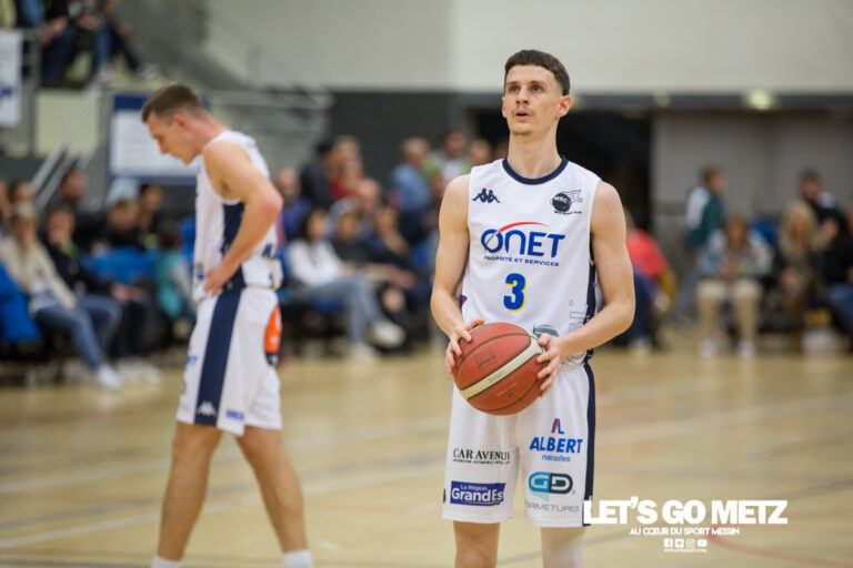 525 Après avoir concédé un premier revers sur ses terres le week-end dernier, le Metz BC doit relever la tête dès dimanche en Île de France. Les Canonniers d’Anthony Tomba affrontent le promu Alfortville. Un match piège. Ce dimanche 6 novembre (15h), l’Union Sportive Alfortville (13e, 2 victoires et 5 défaites) accueille les Metz Canonniers (5e, 5 victoires et 2 défaites), pour le compte de la 8ème journée de Nationale 2. Vainqueur solide de la Poule J de N3 l’an passé, le promu sera tout sauf une victime expiatoire ce week-end. Alfortville, une jeunesse explosive René Thiam (à gauche) face à Gary Florimont (en blanc) A la mène, Charly Pleux Decollgne manque à ses coéquipiers. Blessé depuis la 4e journée, il est incertain ce week-end. L’ancien meneur de l’ALL Jura Basket fait partie, du haut de ses 39 ans, des solides métronomes de la division. A l’aile, Keran Vasseaux est le leader de l’équipe francilienne. Le jeune joueur de 21 ans emmagasine déjà une belle expérience. Passé par le Sluc Nancy Basket en N3, puis par Vie au Grand Saint Maur, le francilien progresse vite. Il tourne cette saison à 14.3 points de moyenne. A l’intérieur, on retrouvera le grand René Thiam, auteur l’an passé d’une grosse prestation avec Juvisy face aux grenats. Il avait inscrit 22 points. L’ ancien Essonnien tentera de récidiver avec sa nouvelle formation du Val de Marne face à Metz. Trouver des solutions en attaque Florimont et Karolak étaient trop esseulés contre ALL Jura Basket De son côté, Metz doit retrouver des solutions en attaque. En effet, les deux équipes se situent 9e exæquo du classement des attaques avec 510 points marqués, soit 72,9 pts en moyenne. Une statistique à pondérer par la mentalité défensive des Canonniers, 4ème meilleure défense de la poule (493 points encaissés, 70,4 en moyenne). Il faudra toutefois pour les Metz Canonniers trouver des alternatives offensives à Florimont et Karolak, qui enchainent les matchs à plus de 35 minutes. Plusieurs absents chez les Canonniers La tâche messine sera ardue à Alfortville pour les Canonniers. En effet, Anthony Tomba va devoir se passer de quatre joueurs de sa rotation en Île-de-France. Pape Mbaye est toujours absent jusqu’à Noël. De son côté, Etienne Ory peine à se défaire de sa pubalgie, et est de nouveau à l’arrêt. Baptiste Guérandel et Loïc Akono s’ajoutent à la liste des absents, pour une courte durée. Comme à Nancy en Coupe, trois joueurs de la réserve montent en équipe première : Enzo Hilbert, Luc Guera et Guelor Gabongo.A.C. L’ Union Sportive Alforville reçoit Metz Basket Canonniers ce dimanche à 15 heures au Cosec Léo Lagrange, en clôture de la 8e journée de Nationale 2. Crédit photos : Matthieu Henkinet (Let’s Go Metz)