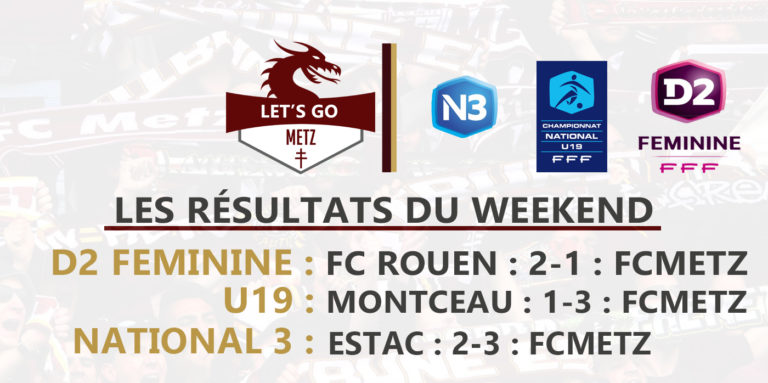 285 Au programme : Troyes – Metz en national 3, Montceau – Metz en U19 et Rouen- Metz en D2 féminine. EN NATIONAL 3 : TROYES : 2-3 : METZ [event_performance id= »1414″ align= »none »] Le classement provisoire : [team_standings id= »380″ title= » » number= »5″ columns= »pts,p,w,d,l,f,a,gd » show_team_logo= »1″ show_full_table_link= »1″ align= »none »] Le prochain match : [countdown id= »1481″ show_venue= »0″ show_league= »0″ align= »none »] EN U19 : FC MONTCEAU : 1 – 3 : FC METZ [event_performance id= »1415″ align= »none »] Le classement provisoire : [team_standings id= »560″ title= » » number= »5″ columns= »pts,p,w,d,l,f,a,gd » show_team_logo= »1″ show_full_table_link= »1″ align= »none »] Le prochain match : [countdown id= »1603″ show_venue= »0″ show_league= »0″ align= »none »] EN D2 FEMININE : FC ROUEN : 2 – 1 : FC METZ [event_performance id= »595″ align= »none »] Le classement provisoire : [team_standings id= »431″ title= » » number= »5″ columns= »pts,p,w,d,l,f,a,gd » show_team_logo= »1″ show_full_table_link= »1″ align= »none »] Le prochain match : [countdown id= »596″ show_venue= »0″ show_league= »0″ align= »none »]