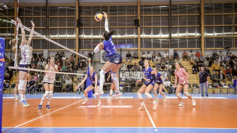 656 Le TFOC concède une deuxième défaite en deux matchs à Levallois Paris. Malgré quelques passages positifs, Terville Florange n’a pas eu les armes pour faire mieux. Pas d’exploit pour les Bleues. Le TFOC s’incline logiquement, trois sets à rien, contre Levallois Paris pour la deuxième journée de championnat. Sans Megan Wilson, toujours pas qualifiée, Terville Florange s’est battu avec les mêmes armes que samedi dernier face à Bordeaux. Autant dire insuffisant face au double tenant du titre surtout avec la sortie sur blessure de Manon Louessard dans la troisième manche. Même si les joueuses de Romain Pitou ont essayé avec le soutien de quelques supporters qui ont fait le déplacement, elles n’ont jamais su rivaliser. Les nombreuses fautes à la fois au service, à la passe et en défense avec des mauvais choix et des erreurs de placement ont encore freiné le club mosellan. Des erreurs pour le TFOC La même équipe pour le TFOC, quelques changements du côté de Levallois Paris et la partie pouvait commencer. Un début de match plutôt équilibré entre les deux formations. Mais, très vite, les Bleues se laissaient distancer (11-7). En cause, les mêmes maux que pour la première journée de championnat. Les fautes au service, les approximations et les mauvais choix de passe empêchaient de rivaliser. Après quelques mots de Romain Pitou, Izzi Strand simplifiait son jeu jusqu’à sa sortie, remplacée par Isabella Noble. Malgré quelques coups d’éclat venus souvent de Camille Hendrickson et Julia Haggerty, c’était insuffisant pour revenir. Les Mariannes déroulaient sans forcer (25-21). Un sursaut de courte durée La bonne entrée de Noble poussait Romain Pitou à la laisser sur le terrain. Un changement qui faisait du bien à Terville Florange. Après un sursaut en fin de premier set, les Mosellanes poursuivaient sur leur lancée. Elles enchaînaient les blocs qui déstabilisaient leur adversaire (5-6). Pourtant, tout s’inversait rapidement. Les coéquipières de Winderlys Médina retombaient dans leurs travers avec un enchaînement de fautes (16-10). De leur côté, les Parisiennes se montraient intraitables. Magalena Bukoska, Nika Milosic et Cyrielle Depie portaient leur équipe (25-21). Bis repetita pour le TFOC Pour la troisième manche, l’entraîneur mosellan était contraint au changement. Manon Louessard sortait blessée pour un problème au dos, ce qui allongeait encore un peu plus la liste des joueuses à l’infirmerie. Gloria Taofifenua, pointue de la réserve, entrait alors dans un rôle inhabituel pour elle. Elle tentait comme elle pouvait de la remplacer aux côtés d’Isabella Noble et d’Winderlys Médina. Une réussite dans un premier temps (6-7). Mais, là encore, celle-ci était de courte durée. La machine parisienne se remettait vite en route (19-14). Le retour aux affaires d’Izzi Strand ne changeait rien. Après plusieurs entrées sur les deux premiers sets, Lena Kindermann participait aussi à la fête (25-21). Levallois Paris 3 – 0 TFOC Sets : 25-21, 25-21, 25-21. Composition Levallois Paris : Mayer, Polder, Milos, Depie, Milovic, Bukovska et Biemel (L). Entrées en jeu : Kindermann, Girgenti, Tolvanen, Garcia et Zyani. Composition TFOC : Strand, Haggerty, Médina, Chillingworth, Louessard, Hendrickson et Coulet (L). Entrées en jeu : Noble, Taofifenua et Erman. Crédit photo : Mikaël Frank – Let’s Go Metz (archive).