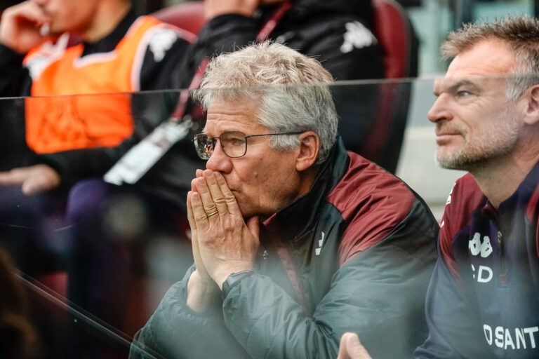 1,8K À vingt-quatre heures du barrage retour entre le FC Metz et l’AS Saint-Etienne à Saint Symphorien, Laszlo Boloni s’est présenté à la presse locale pour effectuer l’état des lieux avant ce dernier round capital. Il n’y avait pas foule ce samedi après-midi en salle de presse du centre d’entraînement de Frescaty pour la conférence de Laszlo Boloni. Une ambiance lourde et pesante de fin de saison régnait après la prestation compliquée des Grenats jeudi à Geoffroy Guichard. L’effervescence du match aller semble avoir laissé place à la morosité. Toujours est-il que le technicien du FC Metz a fait l’état des lieux de ses troupes avant la réception de l’AS Saint-Etienne ce dimanche au stade Saint Symphorien. Une seule incertitude à l’heure actuelle, celle de Cheikh Sabaly, sorti sur une gène musculaire il y a deux jours et qui est incertain pour le retour ce dimanche. Ablie Jallow a, quant à lui, repris l’entraînement collectif mais l’international gambien risque d’être encore un peu juste pour une place de titulaire. Photo by Philippe Lecoeur/FEP/Icon Sport « La recette est assez simple ! » Après une prestation très médiocre et cette défaite 2-1 dans le chaudron, le FC Metz doit renverser la vapeur dimanche face à l’AS Saint-Etienne. « La recette est assez simple à définir. À faire ce sera plus difficile. Il faut mettre en place ce que nous avons préparé. Une équipe gagne lorsque d’une part elle est assez solide défensivement face à une attaque efficace et d’autre part suffisamment énergique et agressive, dans le bon sens du terme, pour être la plus offensive possible. J’ai vu un peu de naïveté dans nos mouvements offensifs » explique Laszlo Boloni. L’autre facteur primordial pour espérer remporter la bataille, ce sera l’état d’esprit. Surpris par la fougue et le jeu conquérant des hommes d’Olivier Dall’Oglio, les Messins sont repartis de Saint-Etienne très abattus. « Après le match aller, le retour fût difficile. L’atmosphère lors de la promenade de vendredi matin était assez lourde. Mais dès l’après-midi, les choses se sont apaisées. Ce sont des adultes et je leur ai rappelé que l’on n’obtient rien sans résultat positif et sans mettre tout ce que l’on peut dans notre panier pour aller chercher ce résultat », confie le coach roumain. La der du roi Georges Photo by Hugo Pfeiffer/Icon Sport Il s’agira sans l’ombre d’un doute du dernier match sous les couleurs grenat de Georges Mikautadze. Il est évident que l’émotion sera présente pour le public, pour l’intéressé et pour Laszlo Boloni. Les seconds adieux du Roi Georges, cette fois-ci pour de bon, en espérant qu’il offre un pot de départ à la hauteur de son talent face aux Verts. « Georges, je garderai bien sûr de lui son football. Les échanges avec lui, pour le positif comme pour le négatif, se sont toujours bien passés. Il restera toujours dans ma tête et dans mon cœur ». Un dernier match pour le chouchou de Saint Symphorien qui devra savourer chaque ballon, chaque touche de balle de l’international géorgien. « Leur énervement n’était pas plus grand que notre douleur » Photo by Hugo Pfeiffer/Icon Sport Le match de ce dimanche entre le FC Metz et l’AS Saint-Etienne se jouera à guichets fermés. Un stade Sant Symphorien comble, une nouvelle fois, malgré les prestations tristement fades des protégés de Laszlo Boloni. Le coach grenat sait que l’apport du public peut jouer dans la balance et transcender ses joueurs : « Je n’ai pas trop l’habitude de demander l’aide du public, mais aujourd’hui je vais le faire. Je sais que les joueurs ont besoin d’eux. Pendant le match, les messages positifs comme négatifs arrivent dans nos oreilles. Je suis persuadé que ce collectif fera tout pour rester en Ligue 1. En tenant compte de tous les orages qui sont passés au-dessus de nous durant ces deux saisons, cette équipe a apporté des solutions et quelques satisfactions. On a aussi tenté et réussi à valoriser le centre de formation. Bien sûr il y a eu des périodes difficiles notamment avec l’accumulation de défaites, et le public a réagi négativement. Mais leur énervement n’était pas plus grand que notre douleur ». FC Metz – AS Saint-Etienne, coup d’envoi ce dimanche à 17h00 au stade Saint Symphorien.