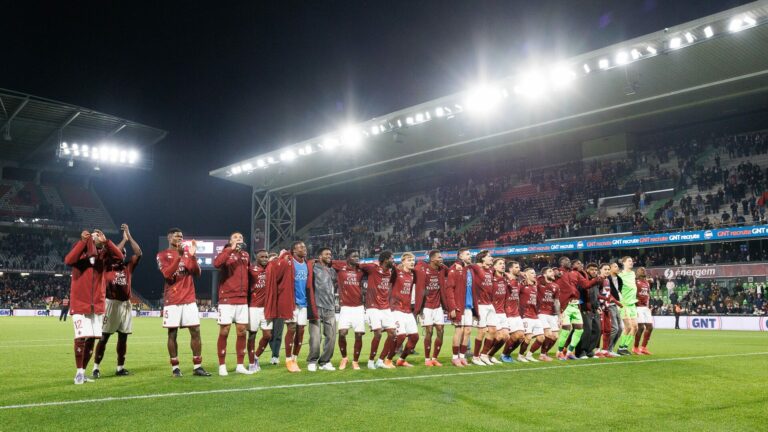 601 Après sa défaite à Brest, le FC Metz reçoit le Stade Rennais à Saint Symphorien, ce vendredi à 20h45. Un gros morceau pour les hommes de Stéphane Le Mignan qui espèrent retrouver le chemin de la victoire devant leur public. Après Brest, la Bretagne sera une nouvelle fois à l’honneur, cette fois du côté de Saint Symphorien, puisque le FC Metz recevra le Stade Rennais ce vendredi à 20h45. Une rencontre qui s’annonce très délicate, face à l’actuel sixième de Ligue 1, pour les hommes de Stéphane Le Mignan qui ont vu leur salvatrice série de victoires s’achever au terme d’un scénario cruel. Le coach grenat s’est présenté ce mercredi en conférence de presse d’avant-match. Pragmatique, le technicien breton du club à la Croix de Lorraine attend une réaction de ses joueurs face à une équipe qui vise l’Europe. Habib Diallo toujours forfait : vers la solution Brian Madjo ? Crédit photo : Julien Buret/Let’s Go Metz Si l’est un secteur qui a manqué d’allant face à Brest dimanche dernier, c’est bien l’attaque grenat, orpheline de son buteur Habib Diallo qui s’est blessé avant la trêve internationale. L’international sénégalais devrait théoriquement retrouver ses coéquipiers à l’entraînement la semaine prochaine. Mais son absence ne fût pas sans conséquences en Bretagne et son remplaçant n’a malheureusement pas été dans les meilleures dispositions. Joël Asoro a semblé bien loin du niveau qu’il a pu afficher par le passé lors de ses rares apparitions sur le terrain. De fait, une autre solution pourrait être proposée par le coach du FC Metz ce vendredi face au Stade Rennais. Celle du jeune international anglais, Brian Madjo. « Brian est parti quelques temps avec les U17 de la sélection anglaise, on l’a donc très peu vu depuis trois, quatre semaines. Il a réintégré la semaine dernière et a joué avec la réserve. Cela s’est plutôt bien passé, c’est très positif même si cela reste des matchs de la réserve », comme l’explique Stéphane Le Mignan. Aucun doute à priori sur son niveau physique actuel, reste maintenant à faire ses preuves dans le projet de jeu de l’équipe première. Lui qui avait été propulsé titulaire en début de saison, pourrait bien faire son retour à la pointe de l’attaque dès vendredi. Son profil plus physique et plus athlétique, semble plus proche de celui d’Habib Diallo, notamment pour son apport en pivot, dos au but. Mais le coach grenat reste prudent sur une éventuelle titularisation vendredi : « Il a eu pas mal de sélections dernièrement, il y avait de l’incertitude sur la période d’octobre et novembre, il a failli partir à Coupe du Monde au Qatar. C’est vrai qu’il a été projeté comme cela à jouer alors qu’il devait juste être, au départ, dans le groupe pour apprendre. Quand Habib est arrivé il a retrouvé un rôle de remplaçant. Désormais il est dans l’effectif et c’est une option de jeu ». « L’équipe est capable de faire de bonnes choses » Crédit photo : Nicolas Martino/Let’s Go Metz La frustration fût grande au coup de sifflet final dimanche dernier à Brest. Pour Stéphane Le Mignan, le match n’a pas été perdu sur des faits de jeu, mais sur l’ensemble de la rencontre, où Metz s’est montré plus frileux que lors de ses trois derniers succès : « Il y a eu beaucoup d’énervement par rapport aux ultimes secondes car on semblait avoir un point qui nous tendait les bras. Mais c’est surtout le contenu qui m’a gêné. On n’a pas fait beaucoup de bonnes choses et c’est cela qu’il faut réussir à corriger ». Malgré la défaite, il y a eu un sursaut d’orgueil pour égaliser à deux reprises. Mais les erreurs défensives ont été trop nombreuses pour revenir avec un résultat positif. C’est sans doute là le principal axe d’amélioration pour les hommes de Stéphane Le Mignan : « L’équipe est capable de faire de bonnes choses. Il faut régler les problèmes pour être plus constant. On sait qu’il y a des joueurs capables d’apporter du danger offensivement, on a montré lors des derniers matchs qu’on était capable de marquer des buts ». Des problèmes qui semblaient n’être plus qu’un lointain souvenir au sortir de la victoire face à Nice. Mais la dynamique semble avoir été interrompue au mauvais moment par la trêve internationale. « Ces quinze jours nous auront peut-être un peu marqués. J’ai toujours un peu peur des retours de trêve comme celle-là. Quand l’équipe marche bien, cela peut être un danger », avoue le coach du FC Metz. « Rennes est une équipe taillée pour l’Europe » Crédit photo : Anthony Bibard/FEP/Icon Sport C’est un sacré morceau qui attend le FC Metz ce vendredi, puisque le Stade Rennais semble être enfin sur les bons rails. Avec dix points sur les quatre derniers matchs, les Bretons arrivent à Saint Symphorien en pleine confiance et pour gagner, comme le redoute Stéphane Le Mignan : « Rennes est une équipe qui a été en difficulté malgré des comportements qui n’étaient pas négatifs, mais qui n’avançait pas beaucoup par rapport à son standing. C’est une équipe qui vise une place européenne. Ils étaient en retard mais ils n’étaient pas très loin. Maintenant ils sont sur une série de trois victoires et un nul. Ils sont en pleine confiance mais cela ne m’étonne pas, il y a des joueurs de qualité et c’est une équipe taillée pour l’Europe ». Les ingrédients du succès, les joueurs du club à la Croix de Lorraine les connaissent. Pour autant, ce faux pas à Brest doit servir de piqure de rappel sans entamer la confiance retrouvée lors des trois succès consécutifs face à Lens, Nantes et Nice : « La confiance reste très fragile. On n’a pas changé de statut parce qu’on a gagné trois fois. Les matchs de Ligue 1 sont très difficiles, on fait partie des équipes dont l’objectif est le maintien. On y est