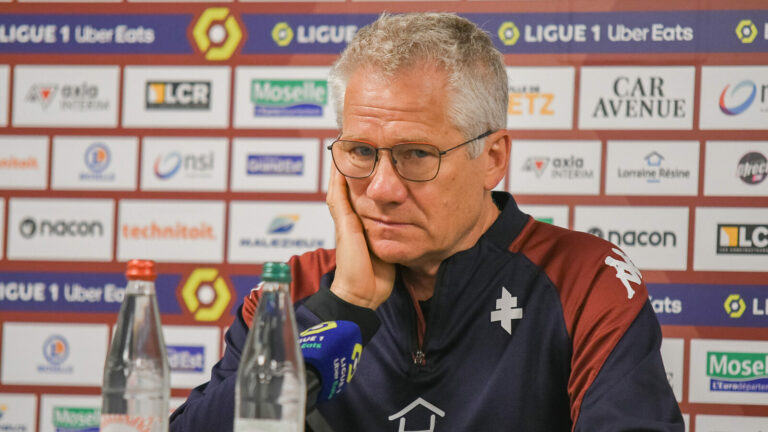 4,9K Laszlo Bölöni va-t-il quitter le FC Metz après les barrages de Ligue 1 face à l’AS Saint-Étienne ? Le club à la Croix de Lorraine serait prêt à se séparer de son entraîneur roumain, peu importe l’issue de la saison. Le barrage retour de Ligue 1 face l’AS Saint-Étienne sera-t-il le dernier match de Laszlo Bölöni à la tête du FC Metz ? La nouvelle fait l’effet d’une bombe à quelques heures du match le plus important de la saison, mais elle résulte d’un exercice 2023-2024 cauchemardesque. En effet, d’après les informations de L’Equipe, le club à la Croix de Lorraine serait décidé à se séparer du technicien roumain, sous contrat jusqu’en juin 2025, « quelle que soit l’issue du barrage contre l’ASSE ».Ardemment soutenu par Bernard Serin pendant l’année, même lorsque le FC Metz connaissait une série dramatique de dix matchs sans victoire à l’hiver, Laszlo Bölöni n’est désormais plus « perçu par sa direction comme l’homme idoine pour la suite », explique le quotidien sportif. Nul doute que la saison compliquée des Grenats, mais aussi le départ annoncé de Pierre Dréossi vers le RC Lens, ont fait maturer l’idée de repartir sur un nouveau cycle.En cas de maintien miraculeux en Ligue 1, ou en cas de descente en Ligue 2, le FC Metz devra donc reconstruire sportivement, encore… Crédit photo : Mikaël Frank / Let’s Go Metz