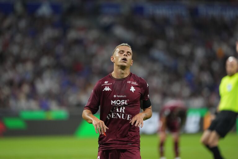 6,6K Le FC Metz concède une lourde défaite (3-0) en déplacement face à l’Olympique Lyonnais dans le cadre de la 2ᵉ journée de Ligue 1 McDonald’s. Malgré de meilleures intentions offensives et une animation plus ambitieuse, les Grenats montrent encore certaines limites. Les Messins, battus à domicile par Strasbourg la semaine précédente, avaient pourtant à cœur de montrer un autre visage. L’idée était de retrouver un équilibre, tout en s’appuyant sur un schéma en 4-2-3-1 aligné par Stéphane Le Mignan. Jonathan Fischer gardait les buts derrière une défense composée de Jean-Philippe Gbamin et Sadibou Sané dans l’axe, avec Michel Mboula à gauche et Koffi Kouao à droite. Le milieu voyait le duo Benjamin Stambouli – Boubacar Traoré assurer la récupération, soutenus sur les ailes par Giorgi Abuashvili et Giorgi Tsitaichvili. Gauthier Hein animait l’axe offensif derrière l’attaquant de pointe Brian Madjo. Jessy Deminguet (blessé) et Cheikh Tidiane Sabaly (en grève) manquaient à l’appel. #OLFCM👐 La composition pour le déplacement à l'@OL vous est présentée par 𝗛𝗲𝗿𝗮𝗰𝗹𝗲𝘀. pic.twitter.com/E4oHUdT11g— FC Metz ☨ (@FCMetz) August 23, 2025 Metz mené dès la première période, malgré des envies offensives Crédit photo – Icon Sport L’OL mettait rapidement la pression. Georges Mikautadze obligeait Fischer à détourner en corner dès la 6ᵉ minute, avant que Pavel Šulc ne plaçât une tête au-dessus (8ᵉ). Metz répondait timidement : une frappe de Traoré à l’extérieur de la surface était captée par Rémy Descamps (14ᵉ), puis Madjo ne pouvait bien exploiter un centre de Kouao (15ᵉ). Ce même duo se montrait dangereux à la 19ᵉ minute, mais la frappe de l’attaquant messin était contrée, et Tsitaichvili ne parvenait pas à profiter du ballon.Ces opportunités n’allaient pas suffire, bien au contraire. À la 25ᵉ minute, Malick Fofana réalisait une série de dribbles qui éliminaient toute la défense grenat et ajustait Fischer pour ouvrir le score (1-0). Pire encore, cinq minutes plus tard, Tyler Morton réalisait une passe en profondeur parfaite pour Ainsley Maitland-Niles. Ce dernier centrait et trouvait Corentin Tolisso dans l’axe, qui doublait la mise (30ᵉ, 2-0). Metz, dépassé défensivement, tentait de réagir par Hein, dont le centre était dévié in extremis en corner (38ᵉ). Pour ne rien arranger aux affaires des hommes de Le Mignan, Mboula devait céder sa place, blessé. Alpha Touré le remplaçait pour occuper le poste de latéral gauche (41ᵉ). Finalement, les Grenats rejoignaient les vestiaires en étant menés au score 2-0. Lyon enfonçait le clou dans le deuxième acte Crédit photo – Icon Sport Sport Au retour des vestiaires, Metz essayait de poser davantage le pied sur le ballon et d’exercer un pressing plus haut. Les intentions étaient visibles mais stériles. Une action confuse initiée par Tsitaichvili à l’entrée de la surface lyonnaise ne donnait rien (53ᵉ). Ensuite, sur un centre de Kouao, Madjo manquait encore sa reprise (61ᵉ).Lyon gérait sereinement et continuait à se montrer dangereux. Šulc frappait à côté (67ᵉ), puis Morton obligeait Fischer à intervenir (71ᵉ). Mikautadze, très remuant, voyait d’abord sa frappe (72ᵉ), puis sa tête à bout portant (76ᵉ) repoussées par un excellent Fischer, seul à surnager côté grenat. Finalement, les Gones trouvaient à nouveau la faille. Sur un coup franc joué en deux temps, Tanner Tessmann plaçait une tête repoussée par Fischer sur la barre. Adam Karabec profitait de la retombée du ballon pour surgir et le pousser au fond (83ᵉ, 3-0). C’était le coup de grâce. Metz, impuissant, n’avait plus les ressources pour réagir, et la partie s’achevait sur ce score sans appel. Malgré une volonté plus affirmée d’aller vers l’avant, Metz affiche de nouveau certaines faiblesses défensives. Le manque de repères collectifs pèse lourdement dans ce début de saison. Avec deux défaites en deux matchs et déjà quatre buts encaissés sans en avoir marqué un, cette saison 2025/2026 de Ligue 1 McDonald’s démarre difficilement. Les Grenats doivent de nouveau montrer de la solidité défensive, en gardant cette ambition offensive encourageante. Ils se déplaceront au Stade Charléty pour y affronter le Paris FC, dimanche 31 août à 17h15. Compositions des équipes :Olympique Lyonnais : Descamps – Abner Vinicius (Tagliafico, 74ᵉ) ; Niakhaté ; Mata (Kluivert, 74ᵉ) ; Maitland-Niles – Morton ; Tessmann – Fofana (Moreira, 86ᵉ) ; Tolisso (Merah, 74ᵉ) ; Šulc (Karabec, 74ᵉ) – MikautadzeFC Metz : Fischer ; Mboula (Touré, 41ᵉ) ; Gbamin ; S. Sané ; Kouao – Traoré ; Stambouli ; Abuashvili (Bokele, 62ᵉ) ; Tsitaichvili (I. Sané, 74ᵉ) ; Hein – Madjo (Gueye, 80ᵉ) Crédit photo à la une : Icon Sport