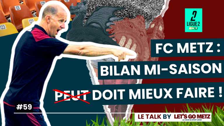 1,5K Retrouvez dès à présent votre nouveau numéro du Talk by Let’s Go Metz, votre podcast au cœur du sport messin qui revient aujourd’hui sur le bilan mi-saison du FC Metz. Retrouvez dès à présent votre nouveau numéro du Talk by Let’s Go Metz, votre podcast au cœur du sport messin. Dernier épisode de 2024 aujourd’hui, Gérald Russello et ses chroniqueurs font le bilan à mi-saison sur les performances du FC Metz. L’équipe de Stéphane Le Mignan, fraîchement éliminée en Coupe de France, capable du meilleur comme du pire, n’a pas encore réussi à convaincre totalement. S’il y a du mieux dans le jeu par rapport aux années précédentes, les Grenats peinent encore à se montrer décisifs. Quatrièmes avant la trêve, les Messins doivent faire mieux, notamment sur le plan offensif. Quels sont les tops et les flops de cette première moitié de saison ? Quel secteur mérite d’être renforcé au mercato ? Retrouvez dès à présent le nouvel épisode du Talk. Gérald Russello reçoit Virginie Bernard et Arthur Carmier. Un épisode à retrouver également en podcast audio sur Spotify ! Présentation, montage et générique : Gérald RusselloMusique générique : “Hours” (Jules Delorn)Musique habillage : Proceed without a Pause (The Roots)Visuels : Kevin Bignossi Retrouvez tous les épisodes précédents sur Let’s Go Metz