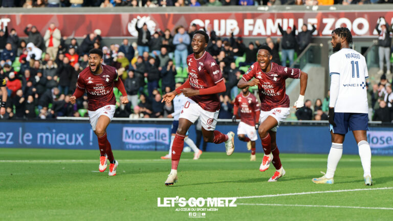 1,6K Le FC Metz s’est imposé 3-1 face au Paris FC au stade Saint Symphorien. Les Grenats s’emparent de la seconde place au classement de Ligue 2. Quelle est importante celle-là… Dans un stade Saint Symphorien chauffé à blanc, malgré un froid polaire, le FC Metz a remporté son duel face au Paris FC. Une victoire pleine de caractère des hommes de Stéphane Le Mignan qui ont non seulement retrouvé le chemin des filets, mais qui en profitent par la même occasion pour monter à la seconde place au classement. Une très belle opération qui vient récompenser un match sérieux des Messins. Même si tout n’a pas été parfait, loin s’en faut, l’essentiel est là, les Grenats renversent une nouvelle fois le PFC et marquent ainsi les esprits dans cette lutte pour la remontée. Le FC Metz et le Paris FC au coude-à-coude dans le premier acte Dès les premiers instants de la rencontre, les Grenats imposaient leur rythme avec un pressing intelligent et de bons mouvements dans la récupération du ballon. Pour sa première apparition en tant que titulaire, Idrissa Gueye montrait d’emblée de belles choses avec un toucher de balle assuré et de bonnes transmissions. Mais ce sont les Parisiens qui se montraient les premiers dangereux sur corner (8′) et après dix minutes de jeu, les hommes de Stéphane Gilli prenaient légèrement le match à leur compte. La première action chaude pour les Grenats intervenaient à la quinzième minute sur une belle frappe d’Ablie Jallow. Moins d’une minute plus tard, sur le corner qui suivît, Papa Amadou Diallo ouvrait le score (16′) sous les clameurs de Saint Symphorien, après une déviation de la tête de Matthieu Udol. Un début de rencontre idéal pour les hommes de Stéphane Le Mignan et le premier but de l’année 2025 après une longue période de disette. Les Grenats auraient pu doubler la mise moins de six minutes plus tard sur une transition rapide, mais Cheikh Sabaly, parfaitement lancé par Gauthier Hein, manquait d’inspiration (21′). Bien en place sur les phases défensives, les Messins bloquaient avec beaucoup d’assurance les tentatives parisiennes… jusqu’à cette frappe pleine de malice de Jean-Philippe Krasso qui trompait Arnaud Bodart, dans un silence aussi glacial que les températures (28′). Légèrement assommés par cette égalisation, les joueurs du club à la Croix de Lorraine retombaient dans leurs travers et peinaient à nouveau à se projeter vers l’avant. À l’inverse, les Parisiens profitaient de ce temps fort pour dérouler leur football. Fort heureusement, l’arbitre sifflait finalement la fin du premier acte après quarante-cinq minutes durant lesquelles les deux formations auront eu leur temps fort. Hein passeur, Gueye et Diallo buteurs Au retour des vestiaires, les joueurs du Paris FC lançaient rapidement les offensives. Plus agressifs sur le porteur du ballon, les attaquants parisiens donnaient des sueurs froides aux 19 526 spectateurs de Saint Symphorien (46′, 48′). Mise en difficulté physiquement, l’équipe messine semblait coupée en deux et l’absence de Jessy Deminguet dans l’entrejeu commençait à peser sérieusement sur l’animation du ballon. Papa Diallo tentait bien de reprendre un ballon de Koffi Kouao de la tête, mais sa tentative était trop molle. Et alors que l’inquiétude s’emparait doucement du stade, Gauthier Hein servait une offrande au jeune Idrissa Gueye qui reprenait d’une tête rageuse et trompait Obed Nkambadio (55′). Un peu contre le cours du jeu, le FC Metz reprenait l’avantage sur le Paris FC grâce à la jeune recrue transfuge de Génération Foot qui y laissait au passage quelques morceaux de dents. Comme en première période, les Parisiens reprenaient rapidement leurs esprits après ce but encaissé et il fallait un excellent Arnaud Bodart pour éviter une égalisation prématurée (64′). Les minutes passaient et alors que l’on craignait un scénario similaire à celui du premier acte, Papa Amadou Diallo, une nouvelle fois mis sur orbite par Gauthier Hein, se jouait de la défense parisienne et s’offrait un doublé (70′). Une belle récompense pour l’attaquant sénégalais qui faisait son retour dans le onze de départ, et un ouf de soulagement pour tout le peuple grenat. Par la suite, les esprits s’échauffaient quelque peu et Arnaud Bodart devait s’employer brillamment à trois reprises (82′, 83′, 84′) sous la pression du Paris FC qui jetait toutes ses forces dans les ultimes minutes. Mais avec beaucoup de caractère et un soutien sans faille du public messin, les hommes de Stéphane Le Mignan tenaient bon et remportaient leur duel face au club parisien pour la seconde fois de la saison. C’était le match à ne pas perdre, et mieux encore à remporter pour le FC Metz qui, après son nul obtenu à Lorient, s’empare de la seconde place et lance un message à ses concurrents directs. La machine est maintenant lancée, et il faudra confirmer dès vendredi prochain face à Grenoble. FC Metz : Bodart – Udol, Lo, Sané, Kouao – Hein, Stambouli, Diallo (Bokele 71′), Jallow (Deminguet 71′) – Gueye (Sané 71′), Sabaly (Asoro 71′)Paris FC : Nkambadio – Mbow, Kolodziejcak, De Smet, Tourraine – Marchetti, Kebbal, Lopez – Gory, Krasso, Hamel Crédit photos : Stéphan Weyrath