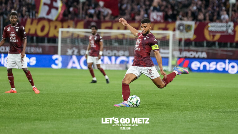 1,7K Le FC Metz n’a pu faire mieux qu’un match nul 2-2 ce samedi soir face au Red Star. Une rencontre frustrante dans un stade Saint Symphorien chauffé à blanc. Ils y vont tout droit. Les play-offs, en vue des redoutés barrages, approchent désormais à grands pas pour les joueurs du FC Metz qui n’ont pu faire mieux que match nul 2-2 face au Red Star, ce samedi soir au stade Saint Symphorien. Longtemps apathiques face à une stratégie parisienne bien huilée, les hommes de Stéphane Le Mignan ont tout essayé, en vain, et laissent s’envoler le Paris FC, la seconde place et une potentielle remontée directe. Cette fin saison s’annonce donc bien plus délicate que prévue pour les Messins, privés une nouvelle fois de nombreux cadres, et qui sont tombés dans le piège parisien. Le chaud et le froid C’est dans une ambiance des grands soirs que la rencontre débutait, avec pas moins de 22 369 spectateurs dans les tribunes du stade Saint Symphorien. Après sept minutes de round d’observation, les Grenats trouvaient déjà la faille par le renversant Kevin Van Den Kerkhof qui reprenait d’une volée imparable une offrande de Matthieu Udol. Un véritable geste d’attaquant, absolument magnifique et improbable de la part du phœnix algérien. Le match ne pouvait pas mieux commencer pour les hommes de Stéphane Le Mignan face à des Parisiens qui allaient devoir se découvrir pour revenir au score. Piqués au vif, le Red Star réagissait tant bien que mal mais la défense messine restait solide (12′, 19′). Le match s’emballait très légèrement lorsque Gauthier Hein et Morgan Bokele manquaient de peu de doubler la marque (24′). Mais le rythme s’atténuait progressivement. Un cran au-dessus dans la récupération et dans l’animation du jeu, les Messins géraient patiemment leur avance sans pour autant parvenir à se montrer réellement dangereux. Et alors que le match entrait dans un faux rythme, sur une action au départ anodine, Damien Durand égalisait pour le Red Star et refroidissait largement la température (31′). Un but qui punissait les joueurs du club à la Croix de Lorraine de leur baisse de régime progressive depuis l’ouverture du score. Malgré tout, les Grenats réagissaient par Cheikh Sabaly, dont la tête était détournée à bout portant par Robin Risser (37′). L’attaque messine tentait autant que possible d’emballer la rencontre et Gauthier Hein prenait un carton jaune pour simulation dans la surface (45’+1) avant que Ruddy Buquet ne siffle la mi-temps sous les huées du public, frustré à juste titre de voir son équipe se laisser prendre dans la toile du Red Star. Le FC Metz dans le piège du Red Star Au retour des vestiaires, les vingt-deux acteurs reprenaient sur un nouveau faux rythme. Le double rideau défensif du Red Star semblait poser bien des difficultés aux joueurs messins. Les Parisiens annonçaient clairement leur objectif et cassaient dès que possible le tempo de la rencontre. Le milieu de terrain grenat manquait d’inspiration à l’image d’Alpha Touré, bien trop imprécis et timide dans son rôle de milieu récupérateur. Et ce qui devait arriver, arriva. Sur une transition rapide, Kémo Cissé se retrouvait seul face à Arnaud Bodart et ajustait le portier belge (53′). Le piège parisien se refermait inexorablement sur les hommes de Stéphane Le Mignan, contraint à effectuer des changements plus tôt qu’à l’accoutumée. Face au bus parisien, les joueurs du club à la Croix de Lorraine semblaient impuissants mais tentaient le maximum et Ruddy Buquet refusait à deux reprises de siffler penalty (61′, 62′), sans doute échaudé par la simulation de Gauthier Hein en première mi-temps. Robin Risser, sentant que Metz entamait un temps fort, décidait de s’allonger et de feinter une blessure pour stopper l’hémorragie (66′). Peu de temps après, Loïc Kouagba en faisait de même, avec l’incrédule passivité de l’arbitre et sous la bronca du stade (68′). Quatre minutes plus tard, rebelote avec Kemo Cissé, pour des crampes supposées. De quoi agacer « sensiblement » Matthieu Udol, le capitaine du FC Metz. Mais à trop vouloir jouer avec les nerfs du stade et des Messins, les Parisiens allaient être punis. Sur un centre de Jessy Deminguet, Idrissa Gueye envoyait un missile de la tête dans les cages de Risser (73′). Le dernier quart d’heure allait être complètement fou. Galvanisés par une ambiance rare, les hommes de Stéphane Le Mignan prenaient d’assaut les buts parisiens, en vain. Ibou Sané (85′) et Gauthier Hein (87′) manquaient le cadre. Le bloc compact du Red Star allait rester impénétrable jusqu’au bout des huit minutes d’arrêts de jeu. Échec. Il reste encore trois matchs aux Grenats pour rêver d’un improbable faux pas de Lorient et du Paris FC pour peut-être accrocher in extremis la deuxième place, mais avec un contenu pareil, cela tient désormais de l’utopie. Le FC Metz se dirige tout droit vers une fin de saison à suspense. FC Metz : Bodart, Van Den Kerkhof, Lô, Mboula, Udol, Hein, Deminguet (Sané 85′), Bokele (Gueye 57′), Diallo (Jallow 57′), SabalyRed Star : Risser, Mendy, Escartin, Kouagba, Hachem, Eickmayer, Renel, Durivaux, Cissé, Badji, Durand Crédit photos : Julien Buret – Let’s Go Metz