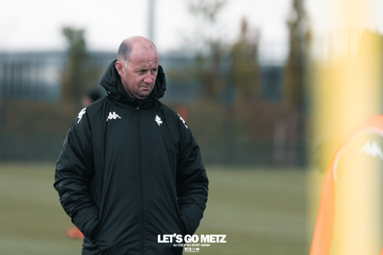9,4K Ce samedi 10 mai 2025, le FC Metz terminera sa phase de saison régulière à Laval pour le compte de la 34e journée de Ligue 2 BKT. Une rencontre que l’entraîneur Stéphane Le Mignan devra aborder avec des absences majeures et une volonté de préparer les play-offs. Le match nul (3-3) obtenu en fin de match contre Rodez a mis fin aux rêves de montée directe en Ligue 1 pour le FC Metz et ses supporters. Les Grenats termineront bien la phase régulière de cette saison 2024/25 à la troisième place du championnat. Dès lors, les joueurs et le staff messins se tournent définitivement vers la préparation du match de « play-offs 2 », qui les opposera au vainqueur de la rencontre dite de « play-offs 1 », entre le quatrième et le cinquième du championnat. « L’objectif, évidemment, c’est le match de la semaine prochaine. Donc, on va essayer de gérer au mieux par rapport au physique des joueurs, des joueurs aussi qui peuvent être sous le coup d’une suspension. C’est une stratégie à avoir en se disant que le match le plus important, c’est le match de la semaine d’après. », explique Stéphane Le Mignan. Sadibou Sané et Jessy Deminguet à nouveau absents Crédit photo – Julien Buret / Let’s Go Metz Pour cette rencontre contre le Stade Lavallois, Stéphane Le Mignan devra à nouveau aligner un onze de départ sans deux piliers de l’équipe : Sadibou Sané et Jessy Deminguet. Mais si ces derniers ont récemment repris l’entraînement collectif, le coach messin ne veut pas précipiter les choses, toujours en gardant à l’esprit le match de « play-offs 2 » : « On espérait deux retours, mais ce n’est pas encore bon pour Jessy Deminguet et Sadibou Sané. Ils ont repris le travail physique. Jessy était avec nous ce matin, mais c’est un peu trop court et un peu trop risqué pour le lancer sur un match de compétition. […] L’idée, c’était qu’ils reprennent un petit peu plus tôt dans la semaine pour avoir du temps de jeu contre Laval. Malheureusement, c’est trop risqué, donc on va patienter la semaine prochaine. Mais on espère évidemment que les deux seront aptes pour le match de play-offs. » Stéphane Le Mignan juge nécessaire de concerner l’ensemble de son effectif, en alignant des joueurs à faible temps de jeu : « Il y a aussi une préparation pour tout le monde. Les joueurs qui ont peut-être pour certains un peu moins de temps de jeu peuvent être amenés à jouer à Laval. C’est vrai qu’on espère les retours de certains joueurs, mais on n’est pas non plus sûrs à 100 %. On ne sait pas non plus s’il y aura des joueurs qui seront absents. Donc, il faut que tout le monde soit apte. Et forcément, il y en a certains qui vont prendre du temps de jeu. » Une fatigue physique et mentale à gérer Crédit photo – Mikael Frank / Let’s Go Metz Stéphane Le Mignan concède que certains de ses éléments peuvent être atteints par une certaine fatigue physique. C’est le cas d’un joueur comme Cheikh Tidiane Sabaly, laissé volontairement au repos au départ face à Rodez, dans l’optique du « play-offs 2 » : « Il avait commencé son match à Pau, où il disait qu’il était fatigué assez rapidement. On avait déjà cette projection du match de play-offs 2 avec tout l’effectif le plus proche possible des 100 %. […] Donc, Sabaly fait partie de cela. L’idée, c’est qu’il soit à 100 % samedi prochain. », souligne le coach. D’autres joueurs peuvent être en proie à une usure mentale. Un état qui fait suite à la perte de la deuxième place après le nul (2-2) contre Caen lors de la 29e journée. Une fatigue qu’on peut peut-être retrouver chez Gauthier Hein, l’un des atouts majeurs du FC Metz. De quoi le laisser au repos à Laval ? « Il y a peut-être le contre-coup du match de Caen où il y a eu une réelle déception. […] Gauthier est très investi dans l’équipe. Il a un objectif qui est clair, c’est la montée. Peut-être qu’il a été affecté. Il a quand même été performant sur les matchs qui ont suivi derrière. Il ne peut pas être non plus à 120 % tout le temps. », suggère Stéphane Le Mignan. Des changements tactiques à réaliser ? Crédit photo – Mikael Frank / Let’s Go Metz Tactiquement aussi, le technicien grenat pourrait entreprendre des changements, avec un possible retour à un système à trois défenseurs. « On essaie d’étudier toutes les possibilités. On a déjà un peu modifié notre organisation entre le match de Pau et de Rodez. Ça n’a pas été suffisant. Il y a différentes phases de jeu où on n’est pas très à l’aise actuellement. Il peut y avoir des choix de joueurs, et des choix d’organisation. » Les trois contre-performances contre le Red Star, Pau et Rodez représentent des prestations globalement insuffisantes. Des matchs où une fragilité défensive importante est apparue. Une chose que Stéphane Le Mignan reconnaît totalement. « Bien sûr qu’on est sur des prestations qui ne sont pas abouties. On en a parlé un petit peu. Défensivement, on encaisse beaucoup de buts depuis quelques semaines. […] On défend moins bien. L’adversaire, sûrement, aussi, est adroit. Peut-être plus adroit. Est-ce qu’on concède un peu plus ? Oui. […] Et si on ne rectifie pas le tir, on aura d’énormes difficultés à continuer l’objectif de montée. » Laval proposera une vraie adversité Crédit photo – Nico Martino / Let’s Go Metz Laval n’est clairement pas la meilleure rencontre pour se préparer à la phase de play-offs pour le FC Metz. D’abord, les Tangos avaient posé des difficultés au match aller, soldé par un nul (1-1). Ensuite, Laval peut décrocher une place en « play-offs 1 » en cas de victoire contre Metz et d’une défaite de Guingamp à Pau. Sur le papier, cette rencontre ne semble pas idéale pour préparer le match de « play-offs 2 » des Grenats. Pourtant, Stéphane Le Mignan trouve qu’au contraire,