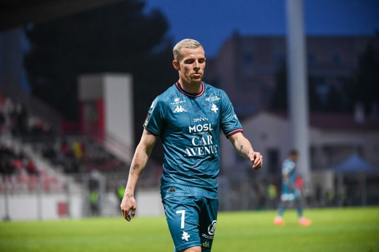 5,1K Un FC Metz encore méconnaissable concède une défaite aux lourdes conséquences face au Pau FC (2-1). Les Grenats compromettent véritablement leurs chances d’accession directe à la Ligue 1 McDonald’s, à deux journées de la fin du championnat de Ligue 2 BKT.Le FC Metz devait se relever après sa contre-performance à domicile contre le Red Star FC. Les Grenats se déplaçaient au Nouste Camp pour y affronter Pau lors de la 32ᵉ journée de Ligue 2 BKT. Même si avant le début du match, les Palois étaient sûrs d’évoluer la saison prochaine en Ligue 2, la méfiance était de mise pour Metz. Il fallait surtout gagner car, quelques heures plus tôt, le Paris FC concédait un match nul à Rodez (1-1). Les Messins étaient donc motivés pour aller chercher cette victoire et garder l’espoir de la montée directe en Ligue 1 McDonald’s.Le coach messin Stéphane Le Mignan devait composer une équipe marquée par certaines absences majeures pour cause de blessures. En défense, Sadibou Sané n’avait pas encore récupéré de son coup reçu à Martigues, et laissait donc sa place à Ismaël Traoré. Koffi Kouao faisait son retour après sa suspension. Au milieu, la non présence sur la feuille de match de Jessy Deminguet obligeait le coach Stéphane Le Mignan à aligner un milieu Alpha Touré – Benjamin Stambouli. Ce dernier revenait lui aussi d’une blessure et manquait dernièrement à l’équipe messine. Gauthier Hein et Ablie Jallow composaient le reste du milieu, soutenant la doublette offensive Idrissa Gueye – Cheikh Sabaly. Un onze de départ différent de celui du dernier match donc. Ces nombreux changements jouaient un rôle plus ou moins important dans cette défaite des Grenats (2-1). Metz totalement méconnaissable en première mi-temps Crédit photo – Icon Sport L’entame du match était messine, avec une volonté de jouer assez haut pour asphyxier Pau. Un corner très dangereux pour les Mosellans donnait une première vraie opportunité. Après un cafouillage général dans la surface paloise, Traoré ne pouvait pousser la balle dans les filets (7′). À première vue, les signaux envoyés étaient plutôt bons. Metz devait gagner, donc une attitude conquérante était la bienvenue.Mais cette belle intention allait finalement s’estomper, pour laisser totalement la place à une domination paloise. Tout commençait avec un corner direct, qui obligeait le gardien messin Arnaud Bodart à s’employer une première fois (17′). Oumar Ngom pour Pau allait lui aussi inquiéter Bodart avec une frappe à ras de terre passant à la droite de ce dernier (18′). Ensuite, suite à une passe ratée de Kouao, les Palois récupéraient et lançaient en profondeur Antoine Mille. La frappe de l’attaquant palois était encore une fois stoppée par Bodart (20′). Mille n’en était pas à son seul coup. Sur un magnifique coup franc direct, il butait encore sur Bodart qui était décidément l’une des rares satisfactions côté FC Metz (39′). Malgré un bloc un peu plus haut dans les dernières minutes, les Grenats n’arrivaient pas à réellement inquiéter Pau comme en tout début de match.Le retour sur cette première période était au final assez négatif. Metz n’arrivait pas à développer son jeu offensif depuis les relances basses, avec Stambouli ou Touré qui redescendaient volontairement au niveau des défenseurs centraux pour essayer de construire. Mais leurs passes n’arrivaient pas jusqu’à l’attaque. Pire, elles débouchaient à de nombreuses reprises sur des pertes de balles au milieu de terrain. Les Palois restaient solides et attentifs à la moindre erreur messine.Les Grenats semblaient impuissants. Un visage qui laissait les supporters grenats dans une certaine incompréhension, se demandant si leurs héros voulaient véritablement la montée directe en Ligue 1. Des changements d’attitude et d’envie étaient attendus pour la deuxième mi-temps. Metz se faisait punir logiquement en deuxième période Crédit Photo : Philippe Lecoeur/ FEP / Icon Sport La deuxième mi-temps repartait sur le même rythme que la première, avec cette fois-ci un premier basculement possible dans cette rencontre. Lancé en profondeur, Mille prenait de vitesse Traoré. Ce dernier intervenait tardivement et provoquait un penalty en faveur de Pau. Pathé Mboup décidait de s’en charger. Mais la frappe de ce dernier envoyait le ballon sur la barre transversale, sauvant ainsi Bodart et le FC Metz.Dans les minutes suivantes, d’autres actions paloises se déroulaient. Mboup, bien servi, frappait une nouvelle fois, sans trouver le cadre (57′). Ngom lui aussi tentait sa chance de loin à la 61ᵉ minute, obligeant Bodart à s’employer encore (61′). Sur l’action suivante, Mboup adressait un centre parfait à Boutaïb, sans succès. Un contre favorable permettait à Thérence Koudou de frapper à ras de terre, mais sans tromper Bodart (65′). Deux minutes plus tard, Khalid Boutaïb butait une fois de plus sur le gardien messin (67′).Lors de l’une des rares actions messines dans le milieu de cette période, Hein lançait une contre-attaque rapide et trouvait Jallow, dont la frappe était arrêtée par Bingourou Kamara (69′). Par la suite, Boutaïb manquait une occasion incroyable (71′). Finalement, après un cafouillage entre Traoré et Udol, Mboup profitait d’une très belle talonnade de Boutaïb pour ouvrir le score (73′, 1-0).Les Messins prenaient là un vrai coup sur la tête. Ils étaient obligés, comme face au Red Star, de revenir au score. Et cela arrivait à nouveau. Udol rentrait dans la surface paloise sur la gauche et centrait pour Diallo, qui poussait la balle dans les filets de Kamara (79′, 1-1). Metz se remettait à y croire. Sabaly pensait pouvoir faire la différence, mais ce dernier voyait son opportunité stoppée par le gardien de Pau (81′).Et le match basculait à nouveau. Aboubacar Lô, rentré en jeu à la place 