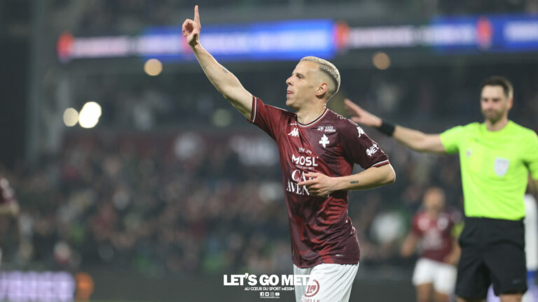 1,7K Le FC Metz a remporté son duel face à l’ESTAC. Une victoire 2-1 qui propulse provisoirement les Grenats en tête du championnat mais qui va laisser des traces. Le FC Metz devait l’emporter ce vendredi soir face à l’ESTAC pour continuer sa course folle vers la remontée directe. Dans un stade Saint Symphorien très bien garni pour l’occasion, les Grenats ont fait le job et l’ont emporté 2-1, au terme d’un match tendu et au dénouement stressant, grâce à des buts magnifiques de Gauthier Hein et Ablie Jallow. Privés de Benjamin Stambouli, touché à une cheville et remplacé par Alpha Touré, les hommes de Stéphane Le Mignan se sont sortis du piège troyen, non sans mal, et y ont laissé des plumes. Dominateurs, les joueurs du club à la Croix de Lorraine ont terminé la rencontre à neuf suite à l’expulsion de Koffi Kouao et à la blessure de Joël Asoro. Une belle opération malgré tout et un succès qui permet au FC Metz de se hisser provisoirement en tête du championnat en attendant le résultat de Lorient. De Gauthier Hein jaillit la lumière Ce sont les Troyens qui se montraient les plus dangereux dès le coup d’envoi avec un jeu rapide en transition et une première frayeur devant les cages d’Arnaud Bodart (2′). Alors qu’on les attendait plutôt bas sur le terrain, les hommes de Stéphane Dumont osaient un pressing haut pour empêcher les Grenats de développer leur jeu. Des velléités qui n’allaient pas durer bien longtemps. Au quart d’heure de jeu, les Messins prenaient le contrôle du ballon et s’installaient dans le camp de l’ESTAC. Une domination toute relative pour les protégés de Stéphane Le Mignan qui semblaient avoir toutes les peines du monde à passer le bloc compact de Troyes. Il fallait attendre la dix-neuvième minute de jeu pour voir Idrissa Gueye déclencher une frappe détournée et captée sans problème par Nicolas Lemaître. Le match tombait dans un faux rythme, difficilement perturbé par quelques débordements de Koffi Kouao ou Matthieu Udol dont les centres donnaient quelques sueurs à la défense troyenne. Ablie Jallow tentait bien d’emballer un peu la rencontre mais son festival ne donnait rien (30′). De leur côté, les joueurs de l’ESTAC semblaient bien décidés à casser le rythme et à prendre tout leur temps. Leur double rideau défensif ne laissait guère de doutes sur leur objectif de la soirée. Mais il était écrit que la lumière viendrait de Gauthier Hein. Sur une récupération pleine de détermination d’Alpha Touré, Idrissa Gueye lançait le numéro 7 grenat qui, après une course de quarante mètres, se jouait de son défenseur et fusillait le portier troyen (42′). Un but de patron pour le leader technique du FC Metz qui arrivait au meilleur moment. Faux rythme et dénouement crispant Au retour des vestiaires, les joueurs du club à la Croix de Lorraine emballaient la rencontre. Plus incisifs, plus entreprenants, les Messins semblaient repartir avec la ferme intention de tuer le match. Troyes ne procédait plus que par contres rapides, et se montrait à nouveau dangereux (56′) mais Arnaud Bodart restait vigilant. Comme en première mi-temps, les visiteurs tentaient par tous les moyens de bloquer les assauts grenats et le match retombait doucement mais sûrement dans un rythme saccadé. La rencontre s’équilibrait alors et les Grenats devaient se contenter de gérer leur avance, sans pouvoir développer leur football. Sans refuser le combat, Troyes jouait avec ses armes, un football défensif et des attaques en transition. Alors que le public commençait à angoisser sur chaque contre troyen, un nouveau but de génie allait soulever Saint Symphorien. Sur un mouvement côté gauche initié par Jessie Deminguet, Gauthier Hein prolongeait le centre de Matthieu Udol de la tête et servait Ablie Jallow. Le Gambien contrôlait le ballon et enroulait sa frappe à bout portant pour tromper une nouvelle fois le portier de l’ESTAC. 2-0 et un ouf de soulagement pour les 22076 spectateurs présents. Mais alors que l’on se dirigeait vers une fin de match tranquille, l’ancien buteur messin, Nicolas De Préville, réduisait l’écart (92′) et enflammait à nouveau les esprits. Quelques instants plus tard, sur un énième contre de Troyes, Koffi Kouao se rendait coupable d’un tacle assassin, directement sanctionné d’un carton rouge (96′). De quoi gâcher la fête malgré la très belle opération, d’autant que Joël Asoro, entré en jeu dix minutes plus tôt, devait quitter la pelouse porté par les médecins suite à une vilaine blessure à la cheville. Metz y laisse des plumes, mais Metz passe provisoirement en tête avant le match de Lorient. Les Grenats mettent la pression sur les Bretons avant leur déplacement à Grenoble. La fin de saison tient décidément toutes ses promesses… Les compositions d’équipes :FC Metz : Bodart – Udol, Mboula, Sané, Kouao – Touré (Nduquidi), Deminguet, Jallow (Diallo 87′), Hein – Sabaly (Bokele 87′), Gueye (Asoro 87′)ESTAC Troyes : Lemaître – Diaz, Monfray, Mendes, Gozzi (Boura 66′)- Chavalerin (M’Changana 66′), Diop, Philiponeau (Adeline 79′) – El Idrissy (De Préville 66′), Saïd (Assoumou 72′), Irie Bi Crédit photos : Nicolas Martino – Let’s Go Metz