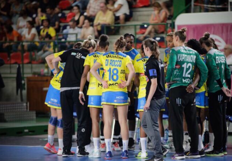 368 Ce mercredi 28 août, la Ligue Butagaz Energie (Ligue Féminine de Handball) reprenait ses droits avec une rentrée très tumultueuse (Absence de diffuseur pour la nouvelle saison). Pour cette première journée, les Messines se déplaçaient à Nantes amoindries par les absences de Xenia Smits et Marion Maubon. Malgré tout, les championnes en titre ont rendu une vaillante prestation en venant s’imposer chez les Nantaises (27/32) dans un choc qui a tenu toutes ses promesses. Un début de rencontre équilibré avant une montée en puissance Après 3 mois de coupure, le public nantais pouvait revenir au Complexe Mangin-Beaulieu pour assister à l’un des chocs les plus attendus de cette première journée. Venus en nombre, les supporters comptaient pousser des Nantaises avides de victoire contre une équipe qui les avait privées d’une accession en finale la saison dernière. Au coup d’envoi, Metz Handball affichait un 7 de départ assez logique : Grâce Zaadi, Louise Burgaard et Orlane Kanor sur la base arrière ; Astride N’Gouan au pivot ; Manon Houette et Laura Flippes sur les ailes. Laura Glauser débute la rencontre également et reste dans les buts jusqu’à la 46ème minute. La mise en jeu est effectuée par Metz Handball qui part rapidement chercher un jet de 7m concédé par Camille Ayglon-Saurina sur une première action de Astride N’Gouan (00’45). Marie-Hélène Sajka le transforme face à Catherine Gabriel ne pouvant rien faire contre le réalisme de la jeune Arrière droite. Metz ouvrait son compteur de but pour la saison 2019/2020. Ensuite, les Dragonnes profitaient d’un lob forcé par Blandine Dancette, causé par un très bon placement de la gardienne Messine, pour faire le break d’entrée (0-2, Laura Flippes à la 2ème minute) et lancer la machine messine. Mais 35 secondes plus tard, Gordana Mitrovic trouve enfin une faille dans la défense messine et trompe Laura Glauser pour ouvrir le compteur nantais. S’ensuivent des temps d’action approximatifs avec fautes techniques et pertes de balle dans les deux camps. La dernière erreur messine permet aux Ligériennes de revenir à égalité et de lancer leur match en gardant les Mosellanes à distance pendant au moins 12 minutes. Profitant d’un manque de réalisme et d’un mauvais rendement messin, les Nantaises auraient pu prendre l’avantage sur contre-attaque mais Blandine Dancette croque sa belle action en trouvant le poteau une nouvelle fois. Toujours à distance, les Roses gardent leur activité offensive intense pour obtenir des fautes qui permettent d’exclure Louise Burgaard à la 11ème minute. Mais les entrées de la jeune Marie-Hélène Sajka et de Olga Perederiy leur sont fatales puisque la 1ère leur impose son bras gauche très ajusté pendant que la seconde renforce le poste 3 défensif, secteur assez faible jusqu’alors avec une Astride N’Gouan en difficulté. Ce break oblige Allan Heine de poser un temps-mort afin de remettre son équipe en état de marche mais les Messines reviennent sur le terrain plus lucides, plus impactantes en défense pour ne laisser aucun espace à l’adversaire et montrer aux spectateurs leur style de jeu favoris : le jeu rapide sur montée de balle. Les Nantaises sombrent devant des Dragonnes qui creusent l’écart grâce aux arrêts de Laura Glauser et les buts des plus jeunes Messines sur la base arrière, en lumière durant cette 1ère mi-temps. Les joueuses partent au vestiaire avec une bonne avance de 8 buts après avoir infligé un 6-14 en 19 minutes (11-19). Un retour de vestiaire un peu plus délicat. En 2nde période, les Roses reviennent avec nouveau visage plus ambitieux. Portées par une très grande Alexandrina Barbosa (10 buts sur 11), les Nantaises recommencent à poser problème dans la défense lorraine, devenue trop tendre. Laura Glauser n’y arrive plus, la portière est battue sur chaque tentative adverse tandis que l’arrière gauche espagnole continue son festival impressionnant qui permet aux Nantaises d’espérer et de revenir à 4 petites longueurs. A l’inverse, la formation messine diminue sa cadence, ne trouve plus de solution buttant systématiquement sur Catherine Gabriel ou Adrianna Placzek. En voyant les occasions gâchées, les pertes de balles à répétition et l’écart se réduire peu à peu, Emmanuel Mayonnade pose son temps mort après un 10-6 autoritaire en 14 minutes. Laura Glauser cède sa place à Ivana Kapitanovic et les Messines réagissent avec une Louise Burgaard des grands soirs après sa 1ère mi-temps en demi-teinte. Cependant, Nantes continue d’imposer son jeu et ne veut pas s’avouer vaincu avant la fin du temps réglementaire. Les 2 équipes affichent un visage séduisant et les Nantaises tentent de dépasser les -4 afin de déstabiliser les joueuses de Emmanuel Mayonnade. Mais Ivana Kapitanovic est bien présente durant ce money-time et permet à Metz de garder une certaine distance dans les 5 dernières minutes. A 3 minutes de la fin, Louise Burgaard crucifie une nouvelle fois la garde nantaise et brise définitivement les espoirs d’une remontée nantaise. Le 6ème et dernier but de Orlane Kanor n’est que le symbole d’une jeunesse qui a brillamment pris ses responsabilités durant toute la rencontres. Les Messines s’imposent de 5 unités dans un match physique de haute intensité. En déposant les valises à Mangin-Beaulieu, les Messines s’attendaient à un combat de haut vol face à équipe toujours difficile à manier chez elle. Mais dans les moments les plus délicats, les Dragonnes ont su faire preuve de patience et de force mentale pour inverser la tendance à chaque tentative Nantaise qui les repoussait dans leurs retranchements. Nous pouvions craindre une fragilité dans le secteur central par manque de rotation avec l’absence de Xenia Smits, mais le staff a su puiser dans toutes les ressources pour masquer la faille individuelle et proposer une copie intéressante g