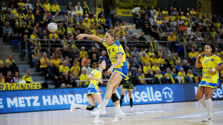2,1K Après deux semaines de pause, la Ligue des Champions reprenait ses droits avec la fin de la phase aller 2024/2025. Malgré un déplacement périlleux dans la salle du RK Krim, Metz Handball avait l’ambition de poursuivre sa dynamique et s’est brillamment imposé à l’extérieur ce dimanche (25-34). Alors que la septième journée de Ligue des Champions battait son plein avec des résultats attendus et des duels plus indécis, Metz Handball rencontrait le RK Krim pour la dix-neuvième fois de son Histoire. Valeurs historiques de la Ligue des Champions, les deux clubs ont vu le rapport de force changer de camp ces dernières saisons avec des Messines plus ou moins dominatrices face aux Slovènes (la dernière rencontre officielle s’était soldée par une large victoire des Championnes de France). Mais cette saison, Krim a souhaité se renforcer avec, notamment, les arrivées de Tamara Horacek, Ana Gros et Grâce Zaadi autour d’un noyau présent depuis 2-3 ans. Malgré ces armes offensives, Krim a connu quelques difficultés en enregistrant deux défaites consécutives avant de recevoir un Metz Handball toujours invaincu avant le début de cette rencontre. Pour ce duel, Emmanuel Mayonnade décidait d’emmener Zsófi Szemerey avec Cléopâtre Darleux. Allison Pineau, Djazz Chambertin et Emma Jacques reprenaient place dans le groupe après leur absence durant la large victoire face à Besançon. Metz Handball bousculée par le RK Krim La rencontre débutait sur les chapeaux de roue pour Metz Handball qui parvenait à faire le break dès les premières minutes. Une défense bien mobile permettait à Cléopâtre Darleux d’enchaîner les parades sur les tentatives slovènes qui provenaient de la ligne des 9m. Les joueuses d’Emmanuel Mayonnade en profitaient alors pour briller sur montée de balle pour mener jusqu’à +3. Cependant, le RK Krim ne voulait pas se laisser distancer en mettant en difficulté un Metz Handball moins serein en attaque placée. Une défense plus resserrée provoquait des tirs forcés par le camp messin qui perdait son avance avant le quart d’heure de jeu (4-5, 10’). Mais Cléopâtre Darleux veillait au grain pour empêcher l’égalisation slovène qui menaçait les championnes de France. Ces dernières accéléraient de nouveau pour reprendre un écart de 4 buts. Ce qui n’empêchait pas les locales de maintenir la pression sur les visiteuses. La principale difficulté des Messines était de préserver une constance dans leur jeu. Malgré quelques tentatives manquées face à une Maja Vojnovic précieuse pour le RK Krim, les Dragonnes faisaient subir leur fougue et leur rapidité qui permettaient à Chloé Valentini et Lucie Granier de briller sur tout terrain. Le collectif slovène ne désarmait pas pour autant et s’accrochait aux basques messines en ayant plusieurs situations d’égalisation. Finalement, les protégés d’Emmanuel Mayonnade regagnaient les vestiaires avec un avantage de deux buts grâce à une inspiration collective de Tyra Axnér et de Petra Vámos (13-15, 30e). Les Messines haussent le ton Au retour du vestiaire, le technicien lorrain faisait le choix de reprendre justement la rencontre avec les deux jeunes arrières en lieu et place d’Anne Mette Hansen et de Léna Grandveau qui avaient pourtant débuté la rencontre. Pari gagnant tant la Suédoise et la Hongroise trouvaient des solutions avec la recherche de 7m ou de bons décalages pour leurs coéquipières. De l’autre côté du terrain, les relations entre Laura Flippes, Djazz Chambertin et Allison Pineau haussaient le niveau de l’assise défensive mosellane pour canaliser la puissance offensive du RK Krim comme celle d’Ana Gros, mise en échec sur cette rencontre. Les coéquipières de Sarah Bouktit continuaient leur partition sans fioritures pour prendre le large (17-26, 15’). Dragan Adžić était contraint de poser un deuxième temps-mort en l’espace de quelques minutes pour tenter de stopper l’hémorragie. Mais rien n’y faisait, les Messines continuaient d’imposer leur rythme sur tout terrain pour se construire un matelas de dix buts par l’intermédiaire de Sarah Bouktit (20-30, 47’). D’ailleurs quelques erreurs messines dans les dix dernières minutes ne profitaient pas aux adversaires. Au mieux, les locales revenaient à six buts mais n’étaient plus une véritable menace pour des Messines intraitables dans cette seconde période. Au gong final, Metz Handball repartait avec sa victoire la plus aboutie de ce début de saison (25-34, 30’). Le RK Krim doit maintenant préparer sa revanche pour le match retour aux Arènes de Metz dans six jours. Mais avant ça, Metz Handball se déplace à Mérignac en championnat, le 13 novembre prochain. Statistiques de la rencontre RK Krim Barbara Arenhart (2 parades/12 tirs), Maja Vojnovic (9/32). Manca Juric (0 but/ 1 tir), Jovanka Radicevic (1/2), Tjaša Stanko (1/4), Ana Gros(4/12), Grâce Zaadi (4/6), Tamara Mavsar (2/2), Ana Abina, Hawa N’Diaye (0/1), Jennifer Gutiérrez (1/1), Tamara Horacek (4/6), Betchaidelle Ngombele (5/6), Tatjana Brnovic (2/4), Itana Grbic. Metz Handball Cléopâtre Darleux (11 parades/36 tirs), Zsófi Szemerey. Chloé Valentini (8 buts/8 tirs), Allison Pineau (1/2), Anne Mette Hansen (2/4), Tyra Axnér(4/7), Anne-Emmanuelle Augustine, Laura Flippes (2/4), Zaliata Mlamali (2/2), Emma Jacques (2/3), Sarah Bouktit(6/8), Lucie Granier(3/5), Léna Grandveau (1/4), Djazz Chambertin (1/2), Petra Vámos (1/2), Manon Errard (1/1). Crédit photo : Nicolas Martino/Let’s Go Metz