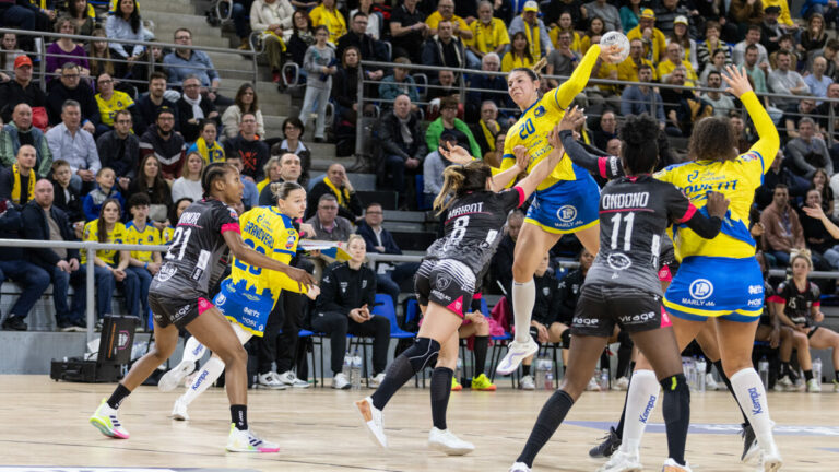 1,4K Ce samedi, Metz Handball se rendait à Brest pour y disputer les 60 premières minutes de son quart de finale de Ligue des Champions. Les Messines valident ce premier round avant le retour aux Arènes de Metz (26-29). Qualifié en quart de Finale depuis deux mois, Metz Handball y retrouvait son plus grand rival Brest pour la troisième fois de la saison. Ce n’était pas sans rappeler le très mauvais souvenir de 2021. Quatre ans plus tard, le champion de France possédait cette fois-ci la dynamique avant d’affronter son adversaire du jour. Mais les Messines et les Brestoises se retrouvaient dans un tout nouveau contexte avec cette confrontation européenne comme le rappelait Emmanuel Mayonnade quelques jours plus tôt. Metz Handball débutait en attaque face à une défense agressive de Brest mais Tyra Axnér parvenait à ouvrir le compteur de la partie. Face à des Brestoises bien mobiles sur les porteuses de balle, les Messines avaient bien quelques difficultés à trouver de la continuité sur le jeu placé. Ainsi, les joueuses de Raphaëlle Tervel faisaient le break en dominant les championnes de France en récupérant des ballons mal transmis. Quelques éclats individuels permettaient à Metz de rester au contact mais les Dragonnes se faisaient surprendre par le défi physique des Rebelles qui annihilait toutes les tentatives des Dragonnes. Cela obligeait Emmanuel Mayonnade à poser son premier temps-mort pour remettre de l’ordre dans l’attaque des siennes (9-5, 15’). Les premières minutes suivant ce recadrage étaient dans le même lignée. L’intensité brestoise entraînait des approximations dans les dernières intentions. Imprécisions offensives nullement sauvées par la défense tant le BBH gagnait quasiment tous ses duels. Les locales maîtrisaient tout ce qu’elles entreprenaient tant et si bien qu’un jet de 7m d’Anna Vyakhireva donnait 5 longueurs d’avance à ses troupes (12-7, 20’). Petra Vámos tout en contrôle Tout portait à croire que Metz Handball n’aurait aucune stabilité dans son jeu mais ce n’était que les 20 premières minutes des 120 de ce combat. Et c’était sans compter sur l’audace d’une Petra Vámos insatiable (5/5 en première période) pour remettre son équipe sur le droit chemin. Avec une machine relancée avec plus de confiance, les Messines parvenaient également à inverser le rapport de force défensif. La tempête passée, Metz égalisait à 3 minutes de la fin grâce à son jeu de transition pour palier ses difficultés sur attaque placée. L’équipe d’Emmanuel Mayonnade rejoignait alors le vestiaire avec un petit but de retard. Une réaction salutaire après un début de rencontre critique (15-14, 30’). Metz Handball en patron Au retour des vestiaires, Metz Handball préservait l’intensité de cette fin de premier acte et passait devant Brest pour la première fois de la partie. Mais contrairement à l’entame de cette confrontation, les deux formations se répondaient coup sur coup dans un combat bien âpre qui ne laissait présager aucun vainqueur. L’écart se creusait ensuite petit à petit, après une résistance brestoise. D’un véritable mano à mano (17-17, 36’), le compteur buts montait jusqu’à quatre unités en faveur des visiteuses (19-23, 42‘) en quelques minutes. Et si Anna Vyakhireva et Méline Nocandy suivaient la cadence de ces dernières, c’était loin d’être le cas de leurs coéquipières mises en échec par Cléopâtre Darleux quand il le fallait. Le doute s’installait dans le camp brestois. Et s’il s’estompait de temps à autres au gré du score cela ne semblait pas affecter les Messines qui reprenaient à chaque fois le dessus. Le banc messin pourra regretter quelques situations mal négociées en toute fin de match mais Metz effectuait tout de même une première bonne opération avant le match retour. (26-29,60’). Statistiques de la rencontre Brest Bretagne Handball Cantin Mélina, Floriane André (1 parade sur 8 tirs), Katherina Filter (10/32). Méline Nocandy (7/10), Clarisse Mairot (3/4), Coralie Lassource (1/4), Oriane Ondono (1/1), Anna Vyakhireva (8/11), Kristina Novak (0/3), Juliette Faure (2/4), Pauletta Foppa (3/5), Laura Kanor, Siobann Delaye (1/2), Pauline Coatanea (0/1), Eva Jarrige, Audrey Dembélé. Metz Handball Cléopâtre Darleux (8 parades sur 27), Zsófi Szemerey (0/7). Allison Pineau, Anne Mette Hansen (2/3), Tyra Axnér (1/3), Anne-Emmanuelle Augustine (1/1), Laura Flippes (0/2), Zaliata Mlamali (3/3), Emma Jacques, Sarah Bouktit (6/7), Lucie Granier (4/8), Léna Grandveau (3/7), Djazz Chambertin (1/2), Petra Vámos (7/8), Nadine Szöllősi-Schatzl, Manon Errard. Crédit photo : Matthieu Henkinet/Let’s Go Metz (Archive)