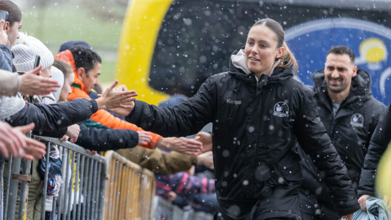 252 Après six mois d’absence, Manon Errard effectue son grand retour dans le groupe des Dragonnes de Metz Handball ce samedi pour affronter Bistrita. Une mauvaise nouvelle peut parfois être très vite chassée par une bonne nouvelle. Ce samedi, avant la réception du Gloria Bistrita, Metz Handball a soufflé le froid avec l’annonce de l’absence de Suzanne Wajoka pour plusieurs semaines, avant de souffler le chaud avec la présence dans le groupe du jour de Manon Errard. L’ailière droite, mise sur la touche par un problème de santé depuis le mois d’Août 2025 devait initialement manquer au moins trois mois de compétition avant de connaître un retour vers le terrain plus progressif. Elle s’était livrée en interview il y a quelques semaines sur les étapes franchies et on ne doute pas de l’émotion qui sera la sienne au moment de revêtir le maillot jaune et bleu ce samedi. Ce retour a plusieurs conséquences. Blandine Gros et Clémence Castets qui ont assuré tour à tour l’interim depuis l’équipe de Nationale 1 Féminine de Metz Handball vont pouvoir se consacrer pleinement à leur équipe d’origine. D’autre part, Lucie Granier qui cumulait les matchs de soixante minutes ou presque avec une intensité élevée depuis le début de saison, va pouvoir retrouver sa binôme originale et profiter d’un peu plus de coupures lorsque les matchs le permettent. Un apport non négligeable à l’approche de matchs clés de la saison. Investie auprès de l’équipe et présente en tribune lors de chaque rencontre depuis le début de sa convalescence, Manon Errard aura certainement beaucoup de regards portés sur elle pour sa première entrée sur le terrain. Gageons que l’accueil des supporters sera chaleureux. Crédit photo : Matthieu Henkinet / Let’s Go Metz