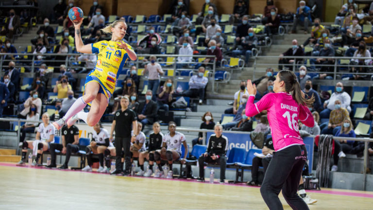 411 Ce Mercredi soir, le Metz Handball recevait Brest pour une 6ème confrontation de la saison mais cette fois l’ambiance était tout autre. Portées par un public enfin de retour et par l’enjeu de la finale, les Dragonnes ont livré leur meilleur handball et pris une option sur la finale, avant le match retour à Brest Dimanche. A la sortie du terrain une horde de confrères journalistes attendait impatiemment les déclarations des joueuses et nous avons pu recueillir le ressenti de l’emblématique Manon Houette qui venait de disputer son dernier match aux Arènes. Manon Houette a connu les plus hauts sommets durant 4 ans au sein du Metz Handball et elle vient surement de disputer la saison la plus difficile de sa carrière entre retour de longue blessure et quelques déceptions sportives, autant de composantes qui font qu’interrogée sur le match « parfait » que son équipe venait de disputer, elle ne s’est pas laissée dépasser par l’évènement. On a envie de faire mieux à Brest pour tout vous dire. On sait que c’est une finale de 120 minutes, on avait signé pour ça dès le début. Je suis très contente de la performance parce qu’on avait réussi à développer ce jeu par moments contre Brest et parfois sur des matchs entiers contre d’autres équipes, mais on n’avait pas réussi à faire 60 minutes pleines contre cette équipe, donc évidement très très très fière de mon équipe, très heureuse d’avoir retrouvé le public qui nous a porté. Lucide sur la partie, elle a pu se livrer sur la dynamique simple qui a conduit les siennes à creuser l’écart et à le maintenir au fil du match, loin des temps faibles qui avaient brisé les espoirs lors des rencontres précédentes. Sans pour autant considérer le matelas de sept buts d’écart comme une assurance tous risques lors du match retour. On a essayé de maintenir cet écart de trois buts dès qu’on l’a obtenu, on savait que c’était précieux. On a essayé d’être rigoureuses sur les consignes. C’est ce qu’on s’était dit depuis plusieurs matchs mais on a réussi à le faire aujourd’hui.Ce +7 ce n’est rien et on aurait gagné de +15 que ça n’aurait été rien. Quand on perd Bucarest de -12 ou -13 on y croit encore au retour et on les bat de +9. Le handball va tellement vite… J’en ai déjà perdu une comme ça, on avait gagné à Fleury de 5 buts et on a perdu de 6 buts ici en finale… Pour moi on repart de zéro et c’est dans cet état d’esprit là qu’on sera peut être en capacité de gagner cette finale. Encore parfaitement concentrée, l’ailière gauche s’est même prise à livrer les mantras qui ont animé l’équipe pendant la durée de la rencontre, témoignant de l’impact d’une préparation rudement menée par les jaunes et bleues lors des dernières semaines. On cherchait de la constance, réussir 60 minutes, de la rigueur qui nous avait fait défaut sur les autres confrontations. […] Il ne fallait pas regretter et finir cette saison en se disant qu’on pouvait le faire. Il est désormais incontestable que les nombreuses difficultés, les blessures et les défaites frustrantes ont façonné le collectif Messin et lui ont servi de moteur lors de cette première manche de la finale. Manon Houette, elle-même peu épargnée par un retour de blessure compliqué l’a souligné sans détour. Les défaites forgent le caractère. On a envie de se servir des moments difficiles, des défaites à répétition, des blessures pour nous rendre plus fortes et rapporter ce titre à Metz Handball. L’institution le mérite. Enfin, il y a fallu évoquer l’émotion alors qu’après 4 ans en Moselle « Manolita » venait de disputer son dernier match à domicile en tant que membre des Dragonnes. Un match qui comme un symbole arrivé sur le fil, a pu réunir pour la première fois depuis de nombreux mois les supporters qui vibrent au rythme des saisons. Pudique sur ses propres sentiments, la joueuse a préféré souligner l’importance de ces soutiens. Les finales c’est déjà toujours un peu particulier mais là, on retiendra le public. Les émotions sont décuplées, le moment où tu marques un but et qu’en revenant en défense le public lève les bras avec toi, c’est indescriptible comme sentiment. Je suis ravie de le vivre avec des gens aussi fidèles que les Messins, avec les bénévoles et tous ces gens qui sont toujours là pour nous.Avec Ailly on a longuement pensé aux filles qui étaient là l’année dernière et qui n’ont pas pu dire au revoir après 10 années passées ici. On était très contentes, très honorées de vivre ces dernières émotions avec le public. Crédit photo : Matthieu Henkinet