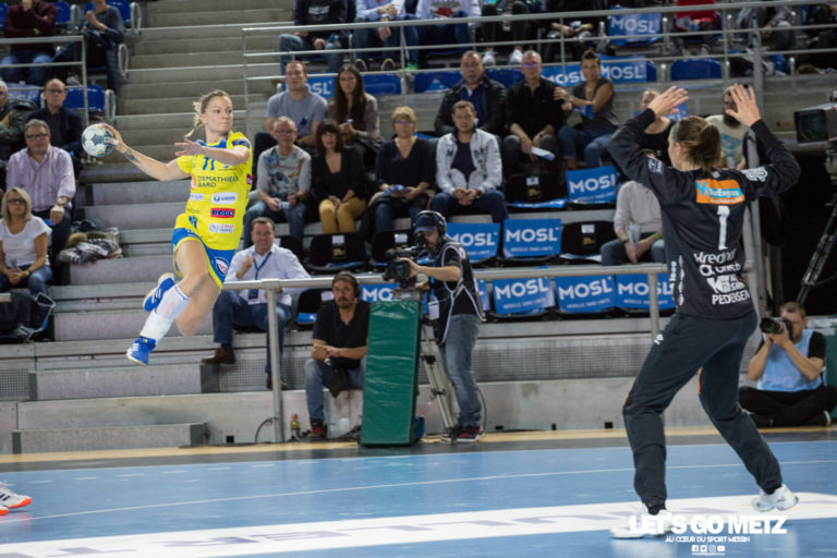 629 Manon Houette est sortie sur blessure à la 50ème minute du match opposant Metz à Toulon ce Dimanche. Lors de la deuxième mi temps du match opposant ce Dimanche les Dragonnes du Metz Handball aux joueuses de Toulon Saint Cyr, un cri a glacé le sang des tous les spectateurs des Arènes. Il s’agissait de celui de Manon Houette, au sol non loin de la zone adverse. Visiblement touchée au genou droit, l’ailière gauche a rapidement rejoint les vestiaires avec l’aide du président et médecin du club Thierry Weizman, sous les applaudissement de soutien du public solidaire. Selon les déclarations de Thierry Weizman au Le Républicain Lorrain, la joueuse a « senti son genou partir des deux côtés, interne et externe », le médecin évoque ensuite une « lésion grave ». Toujours est il qu’en coulisse les visages du staff étaient sombres et l’interrogation sur une éventuelle rupture des ligaments croisés était sur toutes les lèvres…Il s’agit bien évidement d’un coup dur pour cette joueuse ambitieuse qui risque d’être tenue éloignée des terrains pendant une longue période alors que se profilent les matchs de Ligue des Champions où le club compte bien briller et les Jeux Olympiques de Tokyo au sein desquels l’équipe de France aura fort à faire pour retrouver le sommet.Du côté du Metz Handball il sera difficile de combler une telle absence en cette période de l’année. Pourtant il faudra agir vite pour éviter de mettre trop de pression sur Marion Maubon. De plus amples informations sur la gravité de la blessure et la durée de l’absence de Manon Houette devraient être disponibles dans les prochains jours, une fois des examens complémentaires réalisés… Source de la déclaration de Thierry Weizman : Républicain Lorrain