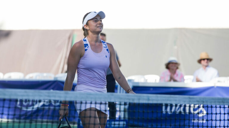 455 En venant à bout de Pauline Payet dans un match au long cours (6-7, 6-3, 7-6), Margot Yerolymos s’est qualifiée pour la finale du Waves Open. La tenante du titre nous a livré ses premières impressions. Ce match n’était pas facile, il y a eu des rebondissements, quelles sont tes premières impressions ?Je ressens de la joie. Je suis vraiment très contente de m’en être sortie. Je ne m’attendais pas à un match simple mais je n’imaginais pas me retrouver à 7-6 après 3h05 de match. C’est un vrai bonheur que de pouvoir jouer une autre finale ici, j’aurais été très triste de m’arrêter en demi-finale. Il y a eu des moments de doute ?Oui ! Il y a des moments où j’en ai mis un peu moins, la confiance partait, revenait. Je pense m’en être sortie au courage, j’en suis fière. On a cru percevoir une gêne à la jambe gauche, qu’en est-il ?Oui, j’avais pas mal de tension musculaire. Je me suis fait opérer de la hanche en Août dernier et je progresse doucement mais sûrement depuis. Sur ces matchs où il y a de la nervosité, de l’intensité, ou il fait chaud… j’ai senti ma jambe flancher par moments, mais la tête a pris le dessus. Le défi se situe dans la récupération avant la finale de demain désormais, quel est le programme ?Eh bien je vais faire du vélo pour commencer, un peu de rouleau, une bonne douche et ensuite j’irai voir le kiné pour tout ce qui est massage et récupération. Leolia Jeanjean et Julie Gervais vont s’affronter pour la seconde place de finaliste. Une préférence ?Je n’ai pas de préférence, les deux filles jouent très bien. Elles vont certainement faire un bon match et je vais suivre ça de très près. Margot Yerolymos défendra son titre en finale du Waves Open dimanche à 15h00.