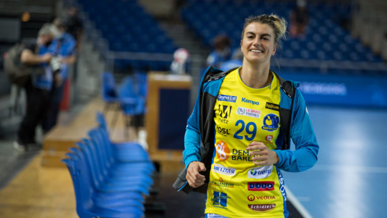 448 Après avoir rendu de fiers services sur l’aile gauche des Dragonnes cette saison, Maud-Éva Copy rejoint le l’équipe du Noisy le Grand Handball 93 pour la saison à venir. Elle avait encore du handball de haut niveau en elle et elle l’a prouvé cette saison à Metz. Après une saison en demi teinte du côté de Bourg de Péage, celle qui avait évolué pendant 6 ans au Brest Bretagne Handball au niveau professionnel, après y avoir fait ses armes au centre de formation, avait rejoint la Moselle afin de tripler le poster d’ailière durant la convalescence de Manon Houette. Aux côtés de Laura Kanor, qui s’est également révélée à la hauteur du challenge, elles ont formé durant toute la première partie de saison un duo particulièrement efficace. Peu utilisée après le retour de Manon Houette, elle est restée très impliquée aux côtés de l’équipe, démontrant un réel attachement aux valeurs portées par le club. Lucide sur sa situation elle nous avait révélé lors d’une interview s’être particulièrement sentie à l’aise à la fois sur l’aspect humain que sur l’aspect sportif Je suis très contente d’être ici, je me sens bien, j’aime beaucoup la manière de fonctionner au niveau du handball, du physique… Je me sens bien dans le club et je suis contente de pouvoir vivre cette saison.Maud Eva Copy le 13/01/2021 Un nouveau challenge A seulement 28 ans, elle découvrira la deuxième division la saison prochaine au sein du club de Noisy le Grand, une équipe qui disputait les playdowns cette saison après avoir accroché la 6ème place de sa poule en championnat. Maintenu in extremis, l’effectif pourra désormais compter sur une joueuse chevronnée afin d’améliorer les résultats en 2021/2022. Crédit photo : Matthieu Henkinet