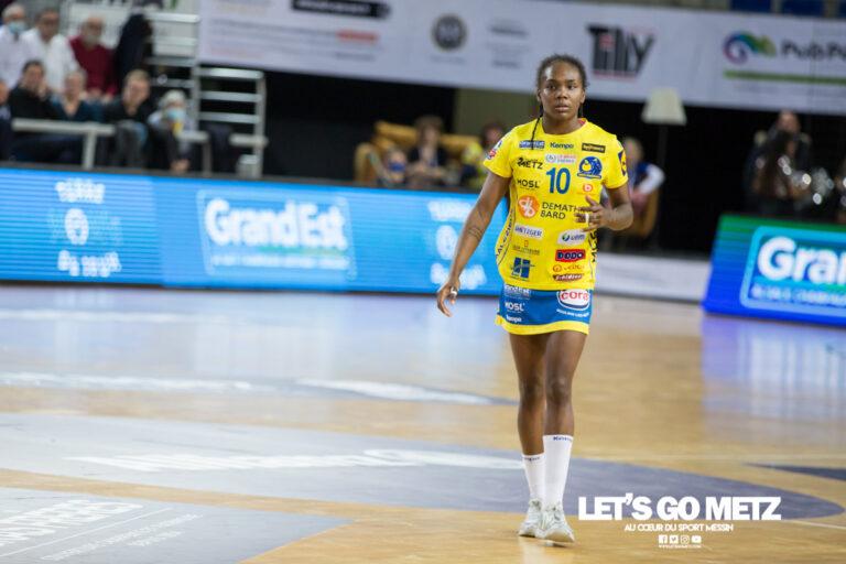 592 C’est un coup dur pour Paris 92 qui perd l’une de ses recrues phares de l’été. En effet, Méline Nocandy, qui était sortie sur blessure dès la deuxième minute de jeu face à Plan-de-Cuques vendredi dernier, sera éloignée des terrains plusieurs mois. L’espoir d’une participation à l’Euro 2022 s’éloigne pour la demie-centre de 24 ans. C’est une très mauvaise nouvelle pour les supporters de l’équipe de France et de Paris 92. Méline Nocandy est victime d’une grave blessure au genou gauche. Selon le communiqué du club parisien, la demi-centre de l’équipe de France sera absente plusieurs mois. Son retour n’est pas prévu avant 2023, ce qui signifie de fait son forfait pour l’Euro 2022 (4/20 novembre). Un véritable coup dur pour l’ancienne capitaine de Metz Handball, auteure de 19 buts en quatre matchs cette saison. Une grave blessure, mais surtout un forfait pour l’Euro pour Méline Nocandy Méline Nocandy avec l’équipe de France lors de l’Euro 2020. (Crédit Photo : Uros Hocevar / kolektiff) Sa blessure au genou gauche devrait l’éloigner pendant plusieurs mois des terrains de handball et notamment de l’Euro 2022. L’international française (53 sélections, 108 buts depuis 2019) n’enchainera donc pas une quatrième compétition internationale consécutive avec les Bleues (Euro 2020, JO 2021, Mondial 2021). Prochain objectif pour elle avec les Battantes : le championnat du monde 2023 organisé en Scandinavie (Danemark, Norvège, Suède). Une compétition qui semble lointaine pour la native de Saint-Claude (Guadeloupe).