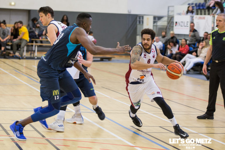 611 Ce Samedi, les Canonniers de Metz retrouvaient la compétition à domicile face aux joueurs du Cambrai Basket. Une rencontre importante pour renouer avec la victoire mais aussi pour cimenter une présence dans le top 5 de la première partie de saison de Nationale 2. Le Super Saturday de sport continue sur le Boulevard Saint-Symphorien. Dans un match décalé à 21h, pour permettre à la cohue du FC Metz – Olympique de Marseille de se dissiper et au public de se rallier à la balle orange, les Canonniers recevaient Cambrai pour le compte de la 12ème journée de Nationale 2. La victoire est primordiale pour finir l’année civile sur une bonne note, après le revers cinglant sur le parquet du WOSB, leader de la poule D. Pour débuter cette rencontre, les Canonniers vont opter pour un 5 majeur traditionnel. 1er quart-temps L’entre-deux est donné et les Grenats qui jouent en blanc ce soir ne parviennent pas à saisir la balle. Nous assistons à un début de match poussif en attaque pour les Canonniers, il faudra attendre 3 minutes pour voir les premiers points messins du match, ils sont l’oeuvre de l’inévitable Matthew Lee, bien servi par David Sainsbury-Garcia. Côté Cambrésien, gros début de match du pivot Correa qui a inscrit tous les points de son équipe et gêne considérablement les messins en défense. Le premier temps-mort de la partie est pris. 2-6, Cambrai. Les consignes semblent s’être orientées sur le jeu intérieur puisque David Sainsbury-Garcia fait parler par deux fois sa technique au poste bas pour ramener Metz à égalité. Michel Nsimba donne ensuite le premier avantage de la partie aux Grenats d’un joli shoot à mi-distance, il est rapidement imité par Matthew Lee. Les Canonniers sont en feu et infligent un 12-0 à Cambrai qui prend temps-mort. 14-6, Metz. Cet arrêt de jeu ne freine pas les Canonniers qui déroulent leur basket jusqu’à la fin de la période. Fin du 1er quart temps : Metz 21-12 Cambrai 2ème quart-temps Les trois premiers points du quart temps sont inscrits par les Cambrésiens mais ces derniers se rendent coupables d’une faute à 3 points sur Henok Affa. L’ailier Messin met ses 3 lancers. Correa continue son chantier pour les visiteurs mais David Sainsbury-Garcia lui rend la pareille de l’autre côté du terrain. L’intérieur anglo-espagnol est bien trouvé dans la peinture ce soir ! Matthew Lee va donner 10 points d’avance aux Grenats d’un sublime eurostep et pousse les nordistes à stopper le jeu. 31-21, Metz. Le temps-mort Cambrésien n’a pas refroidi David Sainsbury-Garcia qui règle la mire à 3 points. Michel Nsimba se signale sur la défense suivante avec un contre autoritaire. Cependant, les nordistes se rebiffent et Philippe Ory prend tout de suite temps-mort pour calmer les choses. Après un joli système en sortie de temps-mort, Etienne Ory met un gros panier à 3 points au buzzer des 24 secondes. Patrice M’Bianda se montre lui aussi en sortie de banc en profitant d’un espace oublié par la défense pour aller tranquillement au lay up. Arrive alors la dernière possession du quart-temps, Etienne Ory la prend à son compte et inscrit une nouvelle fois un énorme tir à 3 points, à 1 seconde du buzzer. Mi-temps : Metz 45-37 Cambrai Etienne Ory . 3ème quart-temps Les deux équipes reviennent des vestiaires. Peu en vue dans le premier acte, Matthew Lee inscrit les 4 premiers points messins dans cette 3ème période avec de jolis numéros de soliste. L’américain continue son show avec un shoot à 3 points à 45°, bien servi par Mamedy Diawara. Le capitaine messin se signale encore en suivant parfaitement le lay up manqué de Matthew Lee pour inscrire 2 points. 54-41, Metz. Cambrai s’accroche et nous offre quelques beaux mouvements collectifs, dont un conclu par un panier à 3 points dans le corner de Hufschmidt. Ce dernier est chaud et inscrit encore un tir primé pour revenir à 4 unités, grâce à un run de 9-0. Il n’en faut pas plus à Philippe Ory pour stopper le jeu. 54-50, Metz. Damien Jean-Joseph remet l’église au milieu du village d’un lay up difficile et stoppe l’hémorragie. Matthew Lee, tout seul en contre-attaque, nous la joue freestyle sur la possession qui suit et chauffe un public un brin endormi. Les Cambrésiens continuent de donner du fil à retordre à Metz mais se montrent maladroits. Ce n’est pas le cas de Patrice M’Bianda qui plante un gros tir à 3 points dans le corner, au buzzer des 24, à 7 secondes de la fin du troisième acte. Fin du 3ème QT : Metz 61-54 4ème quart-temps Les Messins restent sur la lancée des dernières secondes du troisième quart temps puisque Etienne Ory inscrit un 3 points dans le même spot que M’Bianda pour donner 10 unités d’avance aux siens. Maladroit en attaque, Nsimba se montre toutefois autoritaire en défense avec un nouveau contre sur Correa. Jean-Joseph et Lee donnent 15 points d’avance aux Canonniers à 7:17 de la fin du match. 69-54, Metz. Damien Jean-Joseph a choisi le meilleur moment pour sortir de sa boîte, il sert superbement Henok Affa qui ajoute 2 nouveaux points près du cercle et pousse le technicien Cambrésien à prendre un autre temps-mort. 71-55, Metz. Patrice M’Bianda joue à saute-mouton avec son adversaire qui passe par dessus les épaules du numéro 13 Messin, qui inscrit ensuite tranquillement un lay up pour porter l’avance Messine à 21 points. 80-59, Metz. A 3 minutes de la fin, Mahamadou Doucouré participe lui aussi à la fête offensive Messine avec un shoot à mi-distance au buzzer des 24 secondes. Le sort du match est scellé et le pivot malien en profite pour se régaler avec les chants du public. Les Canonniers auront dominé cette partie de main de maître, à l’image d’un dernier quart-temps où ils auront infligé un 22-10 à une équipe de Cambrai qui n’aura toutefois pas démérité. Fin du match : Metz 83-64 Cambrai Les Canonniers finissent leur première moitié de ch
