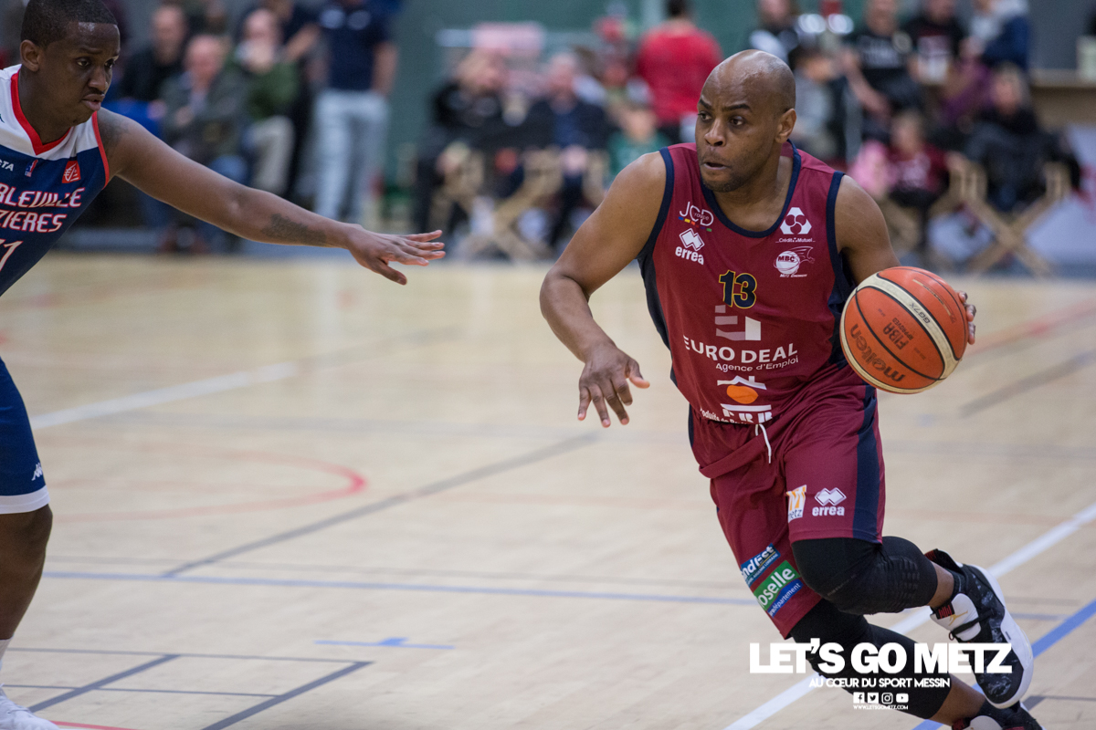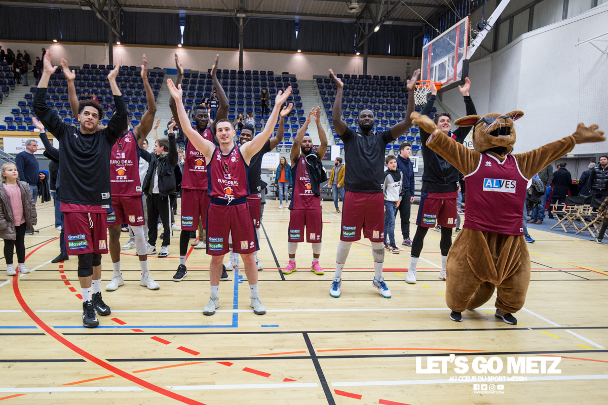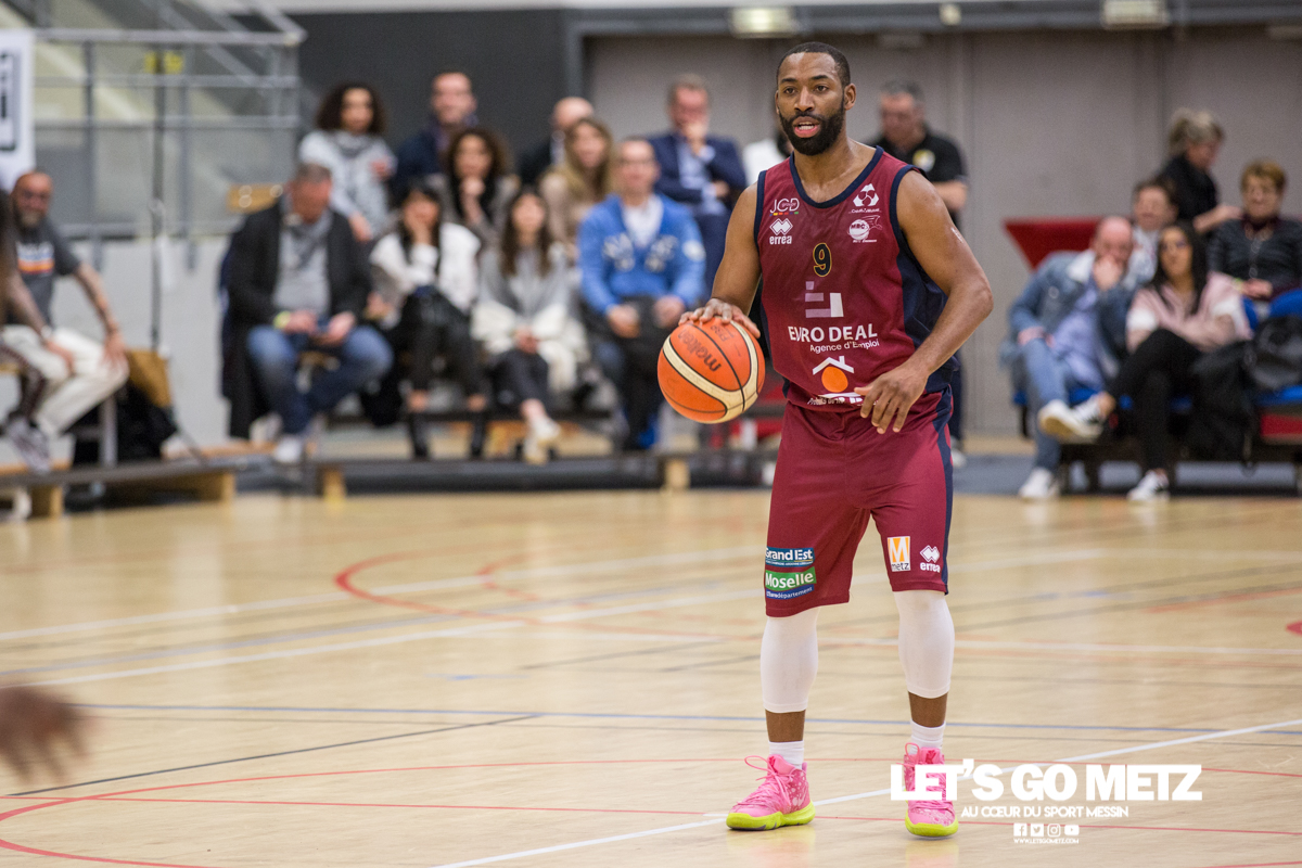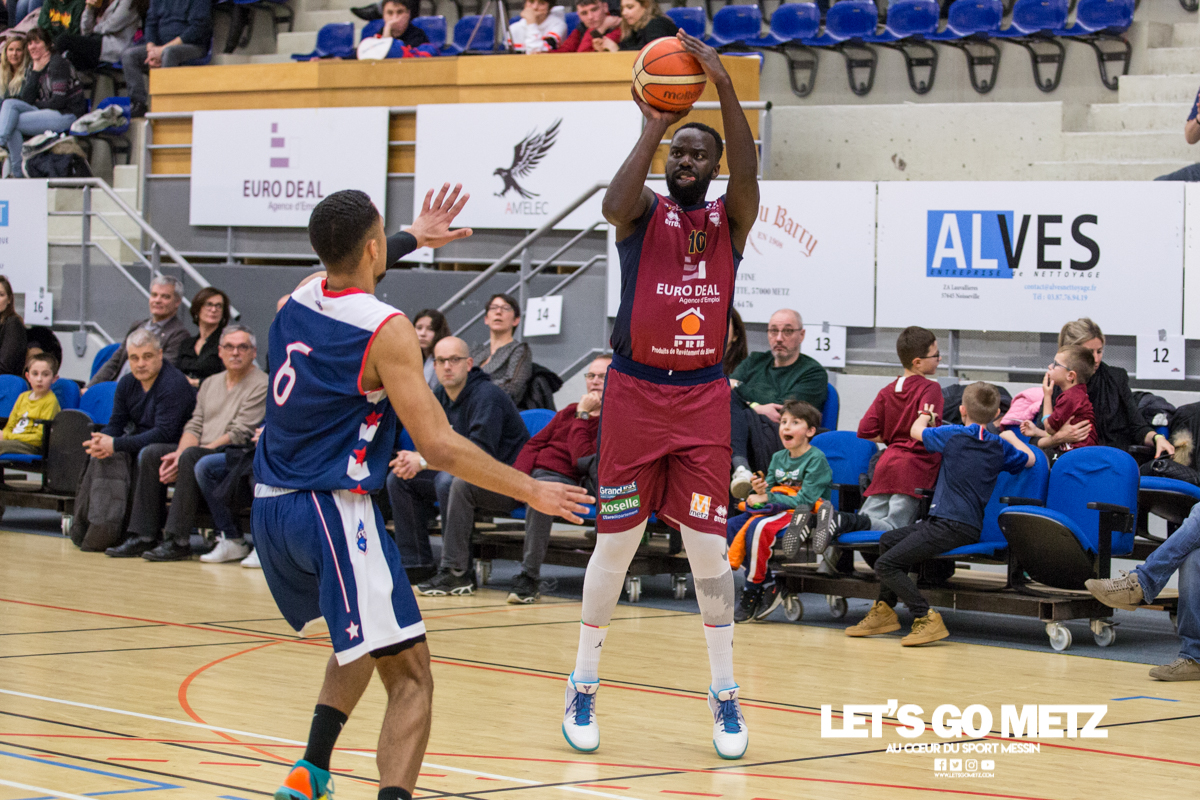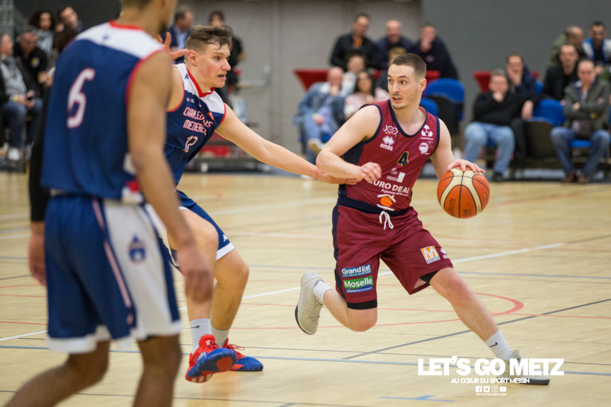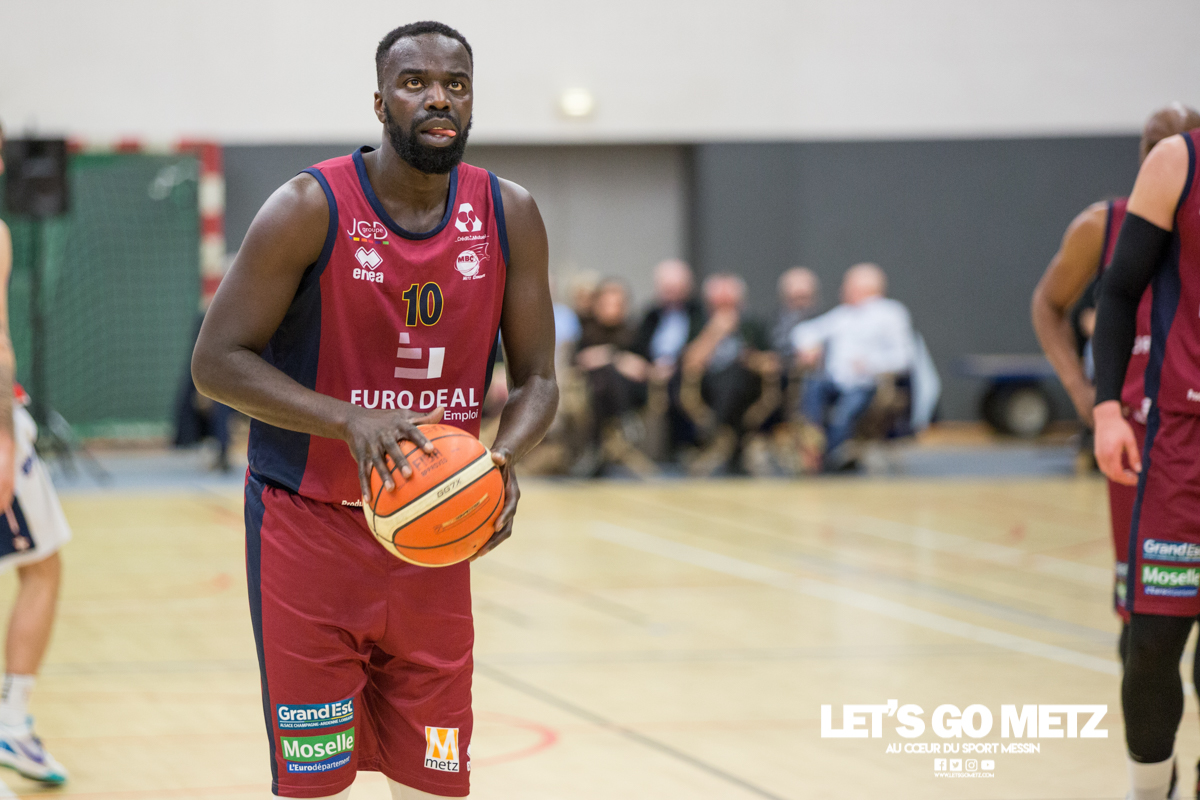 592 La victoire à tout prix, c’est ce qui caractérise la situation des Canonniers avant ce match. Aux prises avec une série négative depuis plusieurs semaines, les grenats sont animés ce dimanche d’une volonté de vaincre exacerbée. Certains d’entre eux ont eu le loisir d’observer l’écrasante victoire des Pink Ladies face à Arnaville, de quoi peut être leur donner quelques idées… Au delà des simples volontés, il y a également la capacité qui rentre en compte et aujourd’hui, les Messins ont mis toutes les chances de leur côté puisque l’effectif est au complet sur le parquet de Saint Symphorien, exit les blessures de Patrice M’Bianda, Etienne Ory, Matthew Lee, pour un retour en forme bien nécessaire. Du côté du coaching il y a eu du changement depuis le dernier match à domicile puisque Philippe Ory a pris du recul et laissé la place à son adjoint Stéphane Frentzel, mais l’état d’esprit reste bon puisque l’ancien entraîneur est présent en tribune.De leur côté, les joueurs de Charleville ne sont pas venus seuls aujourd’hui et on retrouve dans les gradins un contingent de supporters bien décidés à mettre la pression aux locaux à coup de tambours. La rencontre Le match commence sur les chapeaux de roue avec un tir primé d’Etienne Ory, dans la foulée un stop défensif permet à Matthew Lee de partir à la contre attaque et inscrire les deux premiers points de son retour de blessure. Avec un 5-0 d’entrée, les Canonniers prouvent que leurs intentions sont matérialisées. Les locaux gardent le pied sur accélérateur à l’aide d’une doublette à six lettres Lee / Ory efficace En attaque un premier bilan de 14 à 5 pousse l’entraîneur de Charleville à poser son temps mort.Globalement les Messins sont bien en place et David Sainsbury Garcia se montre déjà efficace sous le cercle. La « second unit » peut faire son entrée sereinement et garder le contrôle. Les visiteurs s’illustrent par beaucoup de fautes dans ce début de match, ce qui les prive d’un beau come-back. Le quart temps inaugural se termine sur le score de 25 à 19. Le deuxième quart temps s’avère bien plus accroché, les deux équipes sont à présent bien dans leur match et au gré des oppositions musclées, les rotations se font plus rapidement. Au scoring les deux formations se rendent les coups mais c’est finalement Michel Nsimba qui met le feu aux poudres avec un spin move en puissance qui envoie un joueur de l’Etoile au sol avant de conclure au cercle. 42 – 28 au tableau d’affichage et nouveau temps mort visiteur.En fin de quart temps, les Canonniers loupent quelques belles occasion de breaker en multipliant les pertes de balle. La mi temps prend fin à 42 – 32. Pour le troisième quart temps, les joueurs de l’Étoile reviennent avec de nouvelles intentions. On assiste à des échanges plus musclés et au bout que quelques minutes cela dégénère. David Sainsbury Garcia est victime d’une tentative d’interception digne d’un chiropracteur et décide de se faire justice en confrontant immédiatement son adversaire, ce qui n’est évidement jamais une bonne idée. Le pivot est impossible à calmer, ce qui pousse Stéphane Frentzel à réaliser un changement.Suite à ces échanges, les contacts restent rugueux mais un panier marqué en pénétration par Henok Affa vient une nouvelle fois relancer la dynamique des locaux. Et pour cause, le joueur profite de son temps fort pour inscrire deux paniers supplémentaires coup sur coup.Patrice M’Bianda est victime d’une grosse faute offensive non sifflée, ce qui ne l’empêche pas de prendre sa revanche sur l’action suivante avec deux points inscrits en fadeaway, un peu de finesse dans ce match parfois trop brut. 58 – 40 au tableau d’affichage et temps mort.Dans les minutes qui suivent les Messins sont à la peine et encaissent 5 points sans pouvoir répondre mais le retour de Sainsbury Garcia, l’esprit apaisé, vient remettre de l’énergie là où il en manque.Le troisième quart temps prend fin : 62 à 45 Le break a enfin eu lieu et les Canonniers abordent le dernier quart avec une certaine sérénité. L’équipe de Charleville ne peut pas en dire autant puisque trois joueurs se retrouvent très tôt en « foul trouble » et le jeu est de plus en plus décousu. Après un contact un peu trop appuyé, Matthew Lee se permet même de chambrer son vis à vis avant de tirer ses lancers francs en lui montrant le tableau d’affichage, concluant le tout par un clin d’œil. Grâce à l’avance conséquente de son équipe, Stéphane Frentzel peut expérimenter avec son effectif et donne du temps de jeu à Rabbi Gabriel Kosi Kidi. Malheureusement, ce dernier sort très rapidement, victime d’une blessure au pied. Un crève cœur.Malgré tout, les coéquipiers ne lâchent rien et terminent le match avec application pour l’emporter 77 à 56. Cette victoire remet les Canonniers sur des bases victorieuses et permet de reprendre des points à une équipe mieux classée. Il n’en fallait pas plus pour aborder la réception de Dijon (13ème) le week end prochain dans de bonnes conditions. La réaction de Michel Nsimba LGM : Vous avez rapidement pris les devants dans ce match mais il y a fallu batailler pour assurer la victoire. Quel est le premier ressenti sur la rencontre ?Michel Nsimba : C’est un bon match qu’on s’est appliqué à bien commencer aussi bien offensivement que défensivement. On a joué collectivement et ça nous a permis de vite faire un écart. Il fallait tenir le résultat, il nous fallait vraiment cette victoire donc on a bien appliqué les systèmes dans la continuité de ce qu’on avait préparé et ça a payé. Les Statistiques Crédit Photo : Matthieu Henkinet