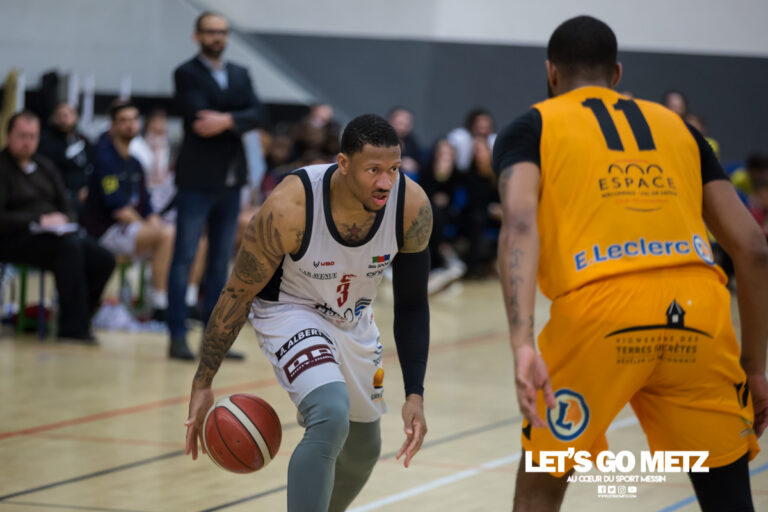 384 Après une deuxième place acquise, les Metz Canonniers se sont qualifiés pour les quart de finale de play-offs d’accès à la N1. Historique pour le club. Les joueurs de Stéphane Frentzel ont rendez-vous face avec Hyères-Toulon ce samedi au Complexe Saint-Symphorien. Finie la saison régulière ! Les Metz Canonniers feront face à un énorme morceau ce samedi. Hyères Toulon Var Basket est le club mythique par excellence de la division. En effet, les Varois ont évolué en Pro A, au début des années 2010. L’armada est coachée par Laurent Sciarra, ancien international français et vice-champion olympique à Sydney en 2000. Avec un bilan plus que très bon, les joueurs du HTV se sont inclinés 4 fois cette saison. Du côté de l’effectif, on retrouve de nombreux joueurs expérimentés et capés en NM1. Pour commencer, Oumarou Baradji passé par l‘US Aubenas, l’ailier fort connait bien Alexandre Karolak puisqu’ils ont joué ensemble une saison. Un autre intérieur au long CV devrait faire face à Gary Florimont. Il s’agit de Benkloua, peu scoreur mais leader vocal. L’intérieur est passé par l’INSEP, Charleville, Mulhouse, Avignon et Sorgues, il sera une des forces des visiteurs. Akono et Ory auront fort à faire à la mène, puisque l’américain Colimond lui aussi passé par la NM1 pourrait bien donner du travail à la défense messine. L’emblématique Douada Condé, passé par Mulhouse l’année dernière, fait partie des intérieurs réputés en N2. Il score d’ailleurs depuis 5 ans plus de 10 points, en moyenne, par match. Reste Moukenga, Stankovic et Wilson, des joueurs majeurs de la rotation. Ce dernier fait partie des meilleurs joueurs en 3X3 de France. Metz le connait bien car il évoluait à Cergy entre 2015 et 2019. Des blessés de part et d’autre Les Metz Canonniers vont devoir faire sans Florent Pietrus ni Henok Affa (le capitaine messin était notre invité ce jeudi dans 100% Grenats, sur France Bleu Lorraine). Les deux hommes sont trop courts pour le match 1, mais pourraient faire leur retour pour la suite de la série. Stéphane Frentzel devrait à nouveau appeler Guérandel et Kouacou, pour compléter les rotations.Hyères-Toulon est aussi diminué ces dernières semaines. L’ailier fort Dia a manqué la dernière rencontre de la saison régulière. Le meneur Franchini et le combo guard Sadiku ont également connu des pépins. Le poste 1 du HTV pourrait donc être handicapé ce samedi. Une aubaine pour les Canonniers . Le palais des sports promet d’être bouillant pour cette affiche historique à Metz. Rendez-vous donc ce samedi, 20h au Complexe Saint Symphorien, pour assister la manche 1 de Metz – Hyères-Toulon, en playoffs de N2. Crédit Photo : Matthieu Henkinet (LGM/Archives)