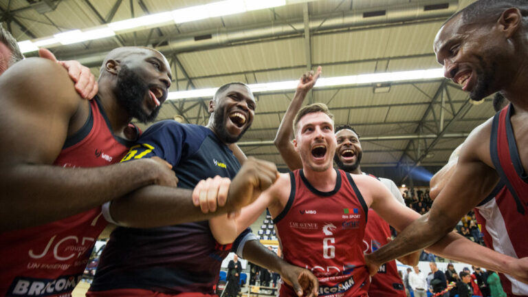 384 Dans un Complexe Saint-Symphorien bouillant, les Metz Canonniers ont remporté le derby de Lorraine 84-74 face à leur rival Joeuf. Les hommes de Stéphane Frentzel signent une troisième victoire d’affilée et se retrouvent à 1 point de la deuxième place du championnat. C’est dans une atmosphère particulièrement électrique qu’allait se tenir le derby de Lorraine entre les Metz Canonniers et Joeuf. Pas moins de 1800 supporters, messins et joviciens, garnissaient un Complexe Saint-Symphorien chauffé à blanc. Des ambiances de derby comme on les aime. Pour l’occasion, le Metz BC honorait trois anciennes gloires du club : Damien Jean-Joseph, Patrice M’Bianda et Mahamadou Doucouré. Le 5 de départ des Metz Canonniers Meneur : Etienne OryArrière : Alexandre KarolakAilier : Idris MacouangouAilier fort : Florent PietrusPivot : Gary Florimont Une bonne entame des Canonniers avant le réveil de Joeuf C’est avec un 5 majeur plus grand et plus physique qu’à l’accoutumée que les Canonniers démarraient la rencontre. Un choix payant de Stéphane Frentzel dans les premiers instants du match, car les Grenats infligeaient un 7-0 d’entrée à Joeuf. Florimont, Macouangou et Ory étaient les instigateurs de cette entame tonitruante.L’ancien messin Stasiak réveillait les joviciens, qui entraient enfin dans leur derby. Au plus mauvais moment pour les Canonniers, qui commençaient à perdre le fil de leur basket, avec notamment plusieurs lay ups ratés. Maladroits, les messins laissaient leurs adversaires prendre une petite avance. Une avance ponctuée par la réussite de Salmon, qui plantait un 3 points improbable au buzzer.Fin du 1er QT : Metz 13-21 Joeuf Auston Calhoun et Loïc Akono allaient sonner la révolte côté messin. L’américain relançait la machine grenat en attaque. Quant à Akono, il se montrait précieux en défense et haranguait ses coéquipiers. Mais les joviciens parvenaient à garder la tête, grâce à des gros shoots de Pietrowski. L’adresse des Meurthe-et-mosellans était tout bonnement insolente. (20-32, 15°)Loin d’être abattus, les Metz Canonniers grapillaient leur retard. Ory, Calhoun et Florimont permettaient aux grenats de revenir à quelques encablures de Joeuf. Tout restait à faire dans ce derby lorrain après 20 premières minutes à très haute intensité.Mi-temps : Metz 32-36 Joeuf Un 3ème quart-temps de « Warriors » qui va propulser les Canonniers sur orbite De retour des vestiaires, les Canonniers haussaient encore un peu plus leur intensité. Emmenés par un bon Karolak dans ce 3ème quart-temps, les messins prenaient la tête. Panier à 3 points, lancers francs, finition près du cercle et livraison de caviars pour Florimont… L’arrière de Metz BC était omniprésent ! (50-43, 25°)Après ce run messin pour reprendre les devants, s’en suivait une légère accalmie entre les deux équipes. Henok Affa profitait de cette fin de quart-temps un peu plus hachée pour inscrire 4 lancers francs. Metz comptait une solide avance de 10 points avant le dernier acte.Fin du 3ème QT : Metz 61-51 Joeuf Lessivés par l’essoreuse grenat, les joviciens subissaient physiquement dans cette deuxième mi-temps. Cagneaux gardait néanmoins les siens dans le coup grâce à quelques gros shoots. Côté Canonniers, on pouvait compter sur Kaly et Florimont pour maintenir le large. Auston Calhoun faisait lui parler sa puissance et sa technique dans ce 4ème quart. Ses coéquipiers ne s’y trompaient pas en lui laissant jouer quelques 1 contre 1, son talent offensif faisait le reste pour accroître l’avance grenat. (76-62, 36°)Les visiteurs jetaient leurs dernières forces dans la bataille, avec notamment une nouvelle réussite au large de Salmon. Mais Florimont était injouable, Joeuf n’a jamais trouvé la réponse face au pivot des Canonniers. C’est finalement Kévin Kaly qui clôturait les débats dans la dernière minute du match, avec un panier à 3 points dans le coin. La messe était dite !Victoire finale des Metz Canonniers 84-74 au terme d’un derby à formidable intensité. Les joueurs de Stéphane Frentzel ont su faire la différence face à une valeureuse équipe de Joeuf, loin d’avoir démérité. Une belle publicité pour le basket lorrain devant les 1800 spectateurs de Saint-Symphorien et peut-être un match bascule pour les Canonniers. Metz Canonniers – Joeuf, les statistiques Metz CanonniersAkono : 1pt, 3pd, 1 intCalhoun : 16pts, 6reb, 1pd, 1contre, 1 ballon perduMacouangou : 6pts, 1reb, 3pd, 1 ballon perduOry : 11pts, 2reb, 3pd, 1 ballon perduKarolak : 14pts, 4pd, 2 ballons perdusAffa : 6pts, 1reb, 1intKaly : 5pts, 4reb, 3pdPietrus : 2pts, 7reb, 2pd, 1intFlorimont : 23pts, 7reb, 4pd, 1intJoeuf-HomécourtJ.Goeuriot : 7pts, 2reb, 2pd, 2 ballons perdusStasiak : 8pts, 2reb, 1intDiop : 15pts, 6reb, 2pd, 1 intPietrowski : 15pts, 5reb, 3 ballons perdusDiatta : 10pts, 6reb, 1pd, 3 ballons perdusB.Goeuriot : 0pt, 1rebIvovic : 0pt, 3rebCagneaux : 10pts, 2reb, 1pdSalmon : 9pts, 2reb, 3pd, 1 ballon perduMehideche : 0pt, 1 ballon perdu La galerie du match Crédit photo : Matthieu HenkinetStatistiques : Gauthier Carboni