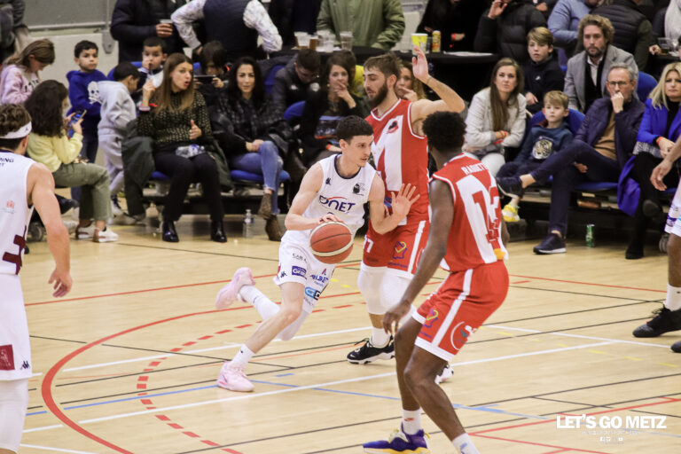 437 Pour leur dernier match de l’année 2022 en championnat, les Metz Canonniers se déplacent dans la Marne, à Récy. Sur le parquet de l’Eveil Récy Saint-Martin, les Grenats tenteront de signer une neuvième victoire cette saison et d’enchaîner après leur succès contre Holtzheim. Cette affiche comptant pour la 12e journée de Nationale 2 devrait livrer toutes ses promesses. Les Recyots (3e exquao, 11points, +38) accueillent les Messins (3e exæquo, 11 points, +34). Les deux formations ont le même nombre de points que 2 autres écuries (Holtzheim, Tremblay), dans un haut de tableau toujours très disputé. L’ERSM vient d’encaisser un revers chez le promu Alfortville (7e avec 4 succès dont 3 consécutifs).À contrario, les Metz Canonniers semblent posséder un capital confiance supérieur à leur prochain adversaire, puisqu’ils viennent de remporter un choc très important face au Vogesia Holtzheim. Les deux écuries, désormais habituées au haut de tableau, ont atteint les play-offs la saison dernière. Du côté de Recy Saint Martin, Pierre Homatter a du pallier les nombreux départs à l’intersaison. On pense évidemment à Mathis Bouvret, qui fait aujourd’hui le bonheur de Metz BC. En outre, les lieutenants Guergey et Bibollet Ruche ont réussi à atteindre l’échelon supérieur en paraphant des contrats respectivement à Feurs et Boulogne sur Mer. Une équipe marnaise homogène Massoma (en défense sur Florent Pietrus) sera à surveiller Cette année, les recrues apportent leur pierre à l’édifice du côté de la Marne. En effet le coach, Pierre Homatter dispose d’un très bon groupe et d’une ossature homogène et performante. Le cinq majeur ERSM compte dans ses rangs de très bons joueurs. Pierre Brun, formé à la Chorale de Roanne, devrait livrer un rude combat à l’intérieur face à Gary Florimont (15.7 points de moyenne). Il faudra aussi surveiller le jeune et talentueux Massoma, qui emmagasine déjà beaucoup d’expérience du haut de ses 23 ans. Auteur de 14.34 unités inscrites en moyenne par match, l’ailier est en véritable progrès.« C’est une bonne équipe. Pierre Homatter les fait très bien jouer, avec un jeu collectif. » souligne le capitaine des Canonniers Kevin Kaly. « Ce sera un match compliqué mais à notre portée. Peut-être qu’il y aura moins de monde dans la salle en raison du match de l’Equipe de France. A nous de rester sérieux, on sort d’une grosse bataille contre Holtzheim. Il faudra contrôler leur jeu rapide pour gagner ce match et rester dans le peloton de tête ». Du côté du Metz BC, c’est encore Yosri Bouallegue qui aura les pleins pouvoirs sur le banc messin ce samedi. En effet, Anthony Tomba est pour le moment toujours suspendu par la Fédération. Les Grenats devront également se passer de leurs meneurs Loïc Akono et Etienne Ory. L’ Eveil Récy Saint-Martin reçoit les Metz Canonniers ce samedi 10 décembre à 20 heures à la Salle Pierre Arnould, pour le compte de la 12ème journée de Nationale 2.