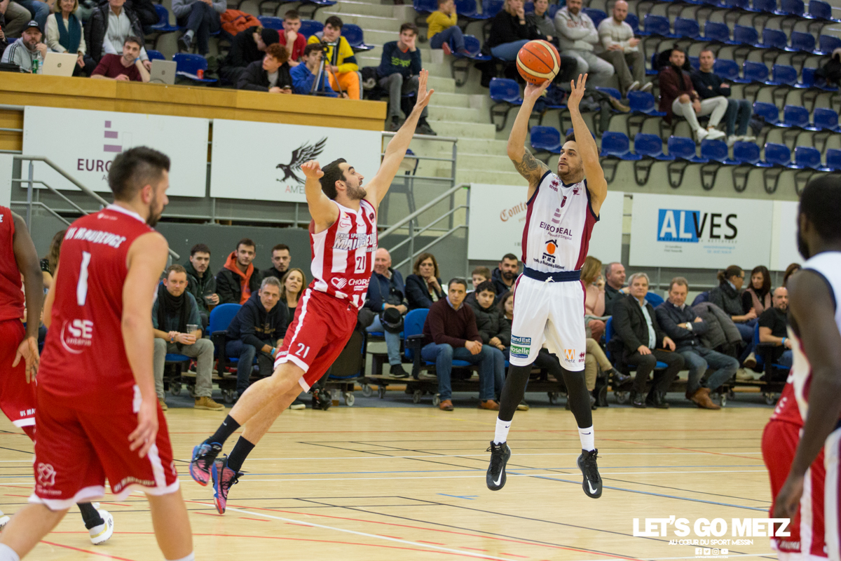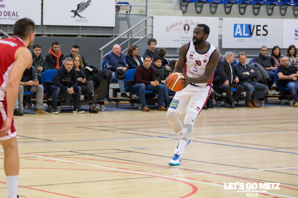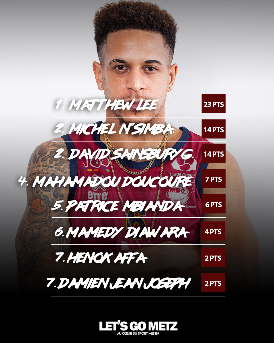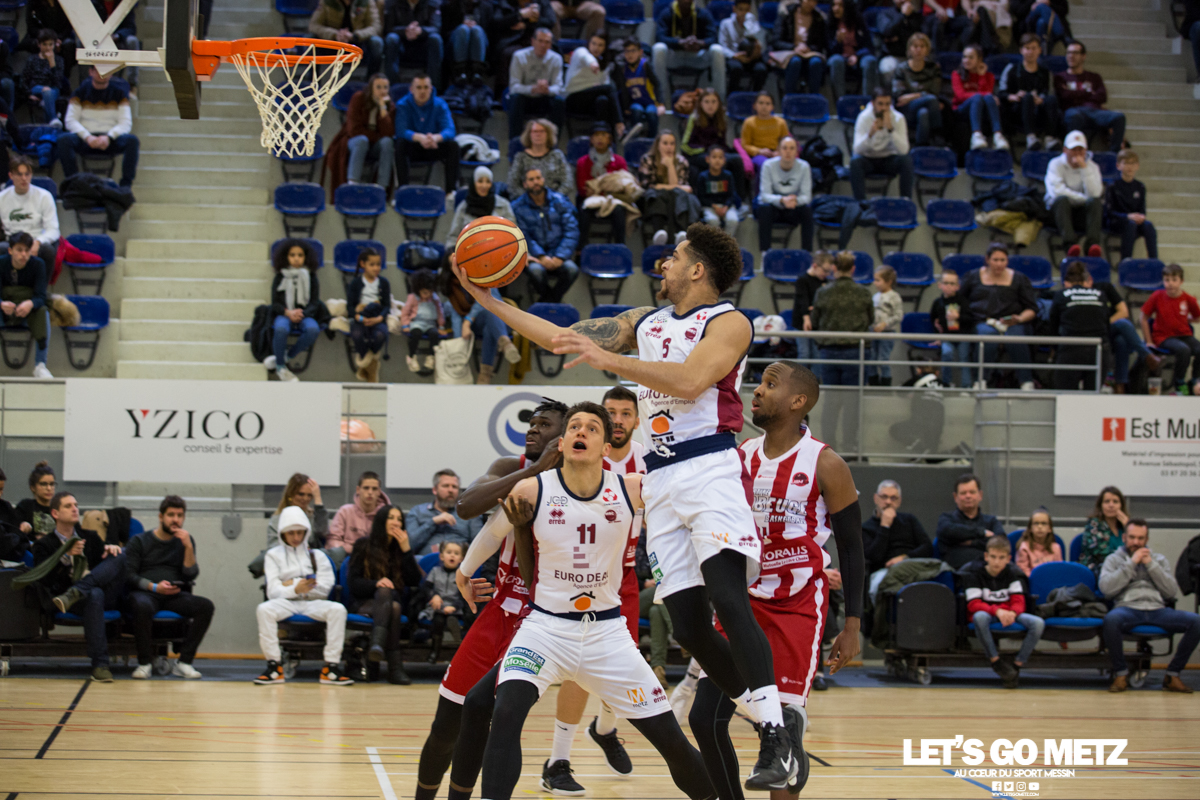 480 De retour sur leur parquet après un mois et demi, les Canonniers de Metz se devaient d’offrir au public de Saint Symphorien une victoire face à Maubeuge, après les deux déconvenues loin de leurs terres, contre l’Eveil Recy Saint Martin et Tremblay. Le résumé de la rencontre Après une minute de silence en hommage au regretté Hubert Biesemeier, un coup d’envoi fictif et 24 secondes d’applaudissements en mémoire de Kobe Bryant, le festival Matthew Lee pouvait commencer. Paniers à 3 points, lancers francs, rebonds offensifs, passes dans le tempo, et 12 unités sur les 16 inscrites dans un premier quart temps, il faut bien l’avouer, très pauvre techniquement, mais riche en déchets, où les défenses rugueuses ont pris le dessus sur des attaques peu inspirées. Et cela ne s’améliore pas lors du second quart temps. Le collectif des Canonniers semble manquer d’automatismes et de réussite. L’ambiance lors de cette première mi-temps est à l’image du match, sans éclat. Et alors que du côté de Maubeuge on ne propose pas grand chose de plus, les visiteurs vont doucement recoller au score et s’offrir le luxe de rentrer aux vestiaires avec un handicap de seulement 2 petits points face à des Canonniers crispés et maladroits. A noter une « masterclass » de l’arbitrage, qui a multiplié les décisions douteuses et s’est attiré la sympathie de l’ensemble des joueurs et des supporters au fil des deux premières périodes. Respect. Score à la mi-temps : 30-28 Sans doute frustré par ses 4 fautes créditées, dont la moitié assez discutables, David Sainsbury Garcia enchaîne 10 points de rang en début de troisième quart-temps et redonne un peu de couleurs à son équipe. Le rythme est un peu plus enlevé qu’en première mi-temps, ce qui n’améliore pas les prouesses du corps arbitral, mais permet aux messins de prendre un peu d’avance avant le dernier quart-temps. 51-46. La tendance s’accentue et le spectacle remonte d’un cran lors de la dernière manche. Les messins aggravent leur avance et distancent les visiteurs rouges et blancs. Plus efficaces et plus tranchants dans les dernières minutes, les Canonniers retrouvent leur basket pour le plus grand plaisir du public, qui va miraculeusement retrouver sa voix. 72-58 Victoire ! A vaincre sans périls, on triomphe sans gloire. Et lors de cette rencontre, les Canonniers ont livré une copie en demi-teinte face à une équipe de Maubeuge peu convaincante. Certaines combinaisons bien pensées auraient mérité un peu plus de précision dans les tirs. L’essentiel est fait, la victoire est là, mais il faudra faire preuve de plus d’efficacité à l’avenir. Le Canonnier du match Auteur d’un dunk remarquable sur une passe lumineuse de Lee en toute fin de rencontre, Michel Nsimba est notre joueur du match. Offensivement, il a souvent vu juste dans ses tirs à mi-distance et a convaincu avec 18 points marqués. Mais il a aussi su être présent aux rebonds et s’est montré intraitable en défense dans le moments clés. Sa présence sur le terrain a su donner aux Canonniers ce petit plus qui a fait la différence dans un match sans grand spectacle. Le mot du coach A la sortie du terrain nous avons recueilli les premières analyses de Philippe Ory sur cette rencontre face à Maubeuge. LGM: Ce match a longtemps donné le sentiment d’être accroché, qu’est ce qui a été déterminant dans cette victoire ?P.O : C’est notre travail défensif qui l’a été. Globalement on a beaucoup moins perdu le ballon que d’habitude et avons été plus rigoureux en attaque. Je pense que le travail qu’a fait Stéphane (NDLR: Frentzel) sur l’attaque a été très bon et défensivement on a tenu le coup au rebond. A partir de là on se met dans de bonnes conditions pour gagner des matchs… LGM : Cette victoire met fin à une sorte de panne sèche avec deux défaites à l’extérieur pour démarrer l’année…P.O : Panne sèche, c’est un grand mot. Aller perdre à Tremblay de sept points ce n’est pas injurieux, en revanche Recy a été plus compliqué… Les statistiques Crédit Photo : Matthieu Henkinet
