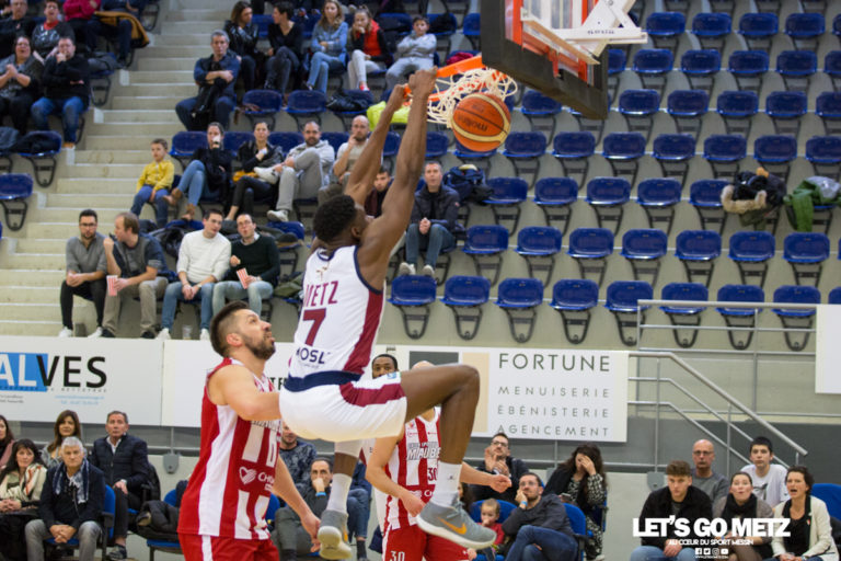 363 De retour sur leur parquet après un mois et demi, les Canonniers de Metz se devaient d’offrir au public de Saint Symphorien une victoire face à Maubeuge, après les deux déconvenues loin de leurs terres, contre l’Eveil Recy Saint Martin et Tremblay. Le résumé de la rencontre Après une minute de silence en hommage au regretté Hubert Biesemeier, un coup d’envoi fictif et 24 secondes d’applaudissements en mémoire de Kobe Bryant, le festival Matthew Lee pouvait commencer. Paniers à 3 points, lancers francs, rebonds offensifs, passes dans le tempo, et 12 unités sur les 16 inscrites dans un premier quart temps, il faut bien l’avouer, très pauvre techniquement, mais riche en déchets, où les défenses rugueuses ont pris le dessus sur des attaques peu inspirées. Et cela ne s’améliore pas lors du second quart temps. Le collectif des Canonniers semble manquer d’automatismes et de réussite. L’ambiance lors de cette première mi-temps est à l’image du match, sans éclat. Et alors que du côté de Maubeuge on ne propose pas grand chose de plus, les visiteurs vont doucement recoller au score et s’offrir le luxe de rentrer aux vestiaires avec un handicap de seulement 2 petits points face à des Canonniers crispés et maladroits. A noter une « masterclass » de l’arbitrage, qui a multiplié les décisions douteuses et s’est attiré la sympathie de l’ensemble des joueurs et des supporters au fil des deux premières périodes. Respect. Score à la mi-temps : 30-28 Sans doute frustré par ses 4 fautes créditées, dont la moitié assez discutables, David Sainsbury Garcia enchaîne 10 points de rang en début de troisième quart-temps et redonne un peu de couleurs à son équipe. Le rythme est un peu plus enlevé qu’en première mi-temps, ce qui n’améliore pas les prouesses du corps arbitral, mais permet aux messins de prendre un peu d’avance avant le dernier quart-temps. 51-46. La tendance s’accentue et le spectacle remonte d’un cran lors de la dernière manche. Les messins aggravent leur avance et distancent les visiteurs rouges et blancs. Plus efficaces et plus tranchants dans les dernières minutes, les Canonniers retrouvent leur basket pour le plus grand plaisir du public, qui va miraculeusement retrouver sa voix. 72-58 Victoire ! A vaincre sans périls, on triomphe sans gloire. Et lors de cette rencontre, les Canonniers ont livré une copie en demi-teinte face à une équipe de Maubeuge peu convaincante. Certaines combinaisons bien pensées auraient mérité un peu plus de précision dans les tirs. L’essentiel est fait, la victoire est là, mais il faudra faire preuve de plus d’efficacité à l’avenir. Le Canonnier du match Auteur d’un dunk remarquable sur une passe lumineuse de Lee en toute fin de rencontre, Michel Nsimba est notre joueur du match. Offensivement, il a souvent vu juste dans ses tirs à mi-distance et a convaincu avec 18 points marqués. Mais il a aussi su être présent aux rebonds et s’est montré intraitable en défense dans le moments clés. Sa présence sur le terrain a su donner aux Canonniers ce petit plus qui a fait la différence dans un match sans grand spectacle. Le mot du coach A la sortie du terrain nous avons recueilli les premières analyses de Philippe Ory sur cette rencontre face à Maubeuge. LGM: Ce match a longtemps donné le sentiment d’être accroché, qu’est ce qui a été déterminant dans cette victoire ?P.O : C’est notre travail défensif qui l’a été. Globalement on a beaucoup moins perdu le ballon que d’habitude et avons été plus rigoureux en attaque. Je pense que le travail qu’a fait Stéphane (NDLR: Frentzel) sur l’attaque a été très bon et défensivement on a tenu le coup au rebond. A partir de là on se met dans de bonnes conditions pour gagner des matchs… LGM : Cette victoire met fin à une sorte de panne sèche avec deux défaites à l’extérieur pour démarrer l’année…P.O : Panne sèche, c’est un grand mot. Aller perdre à Tremblay de sept points ce n’est pas injurieux, en revanche Recy a été plus compliqué… Les statistiques Crédit Photo : Matthieu Henkinet
