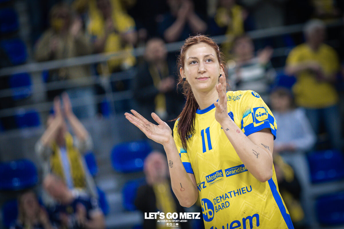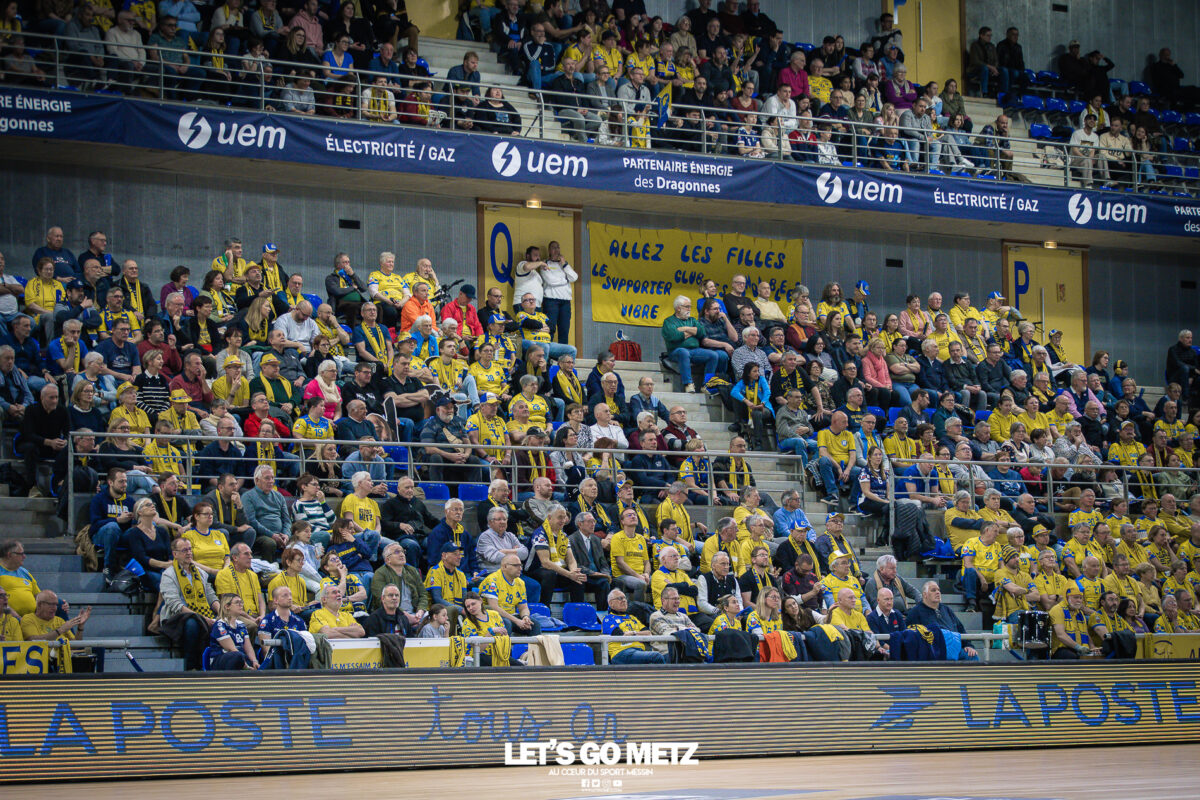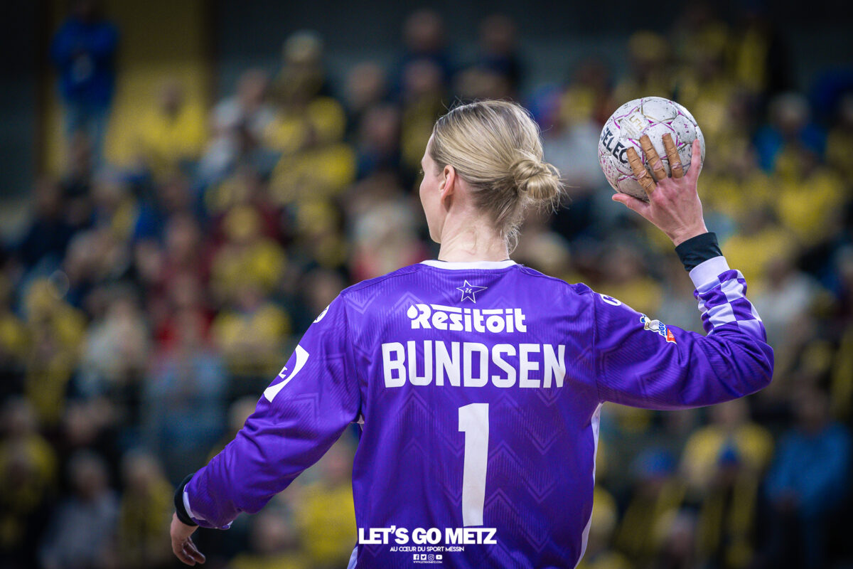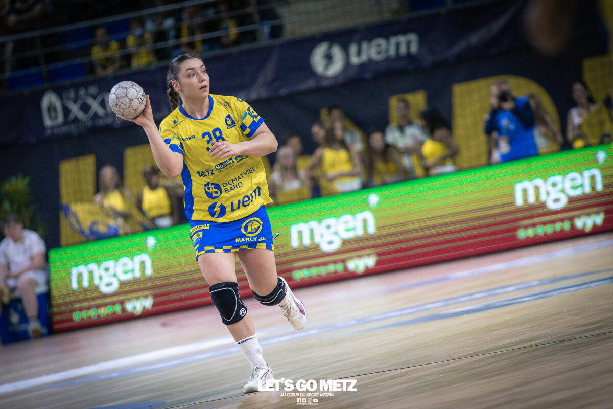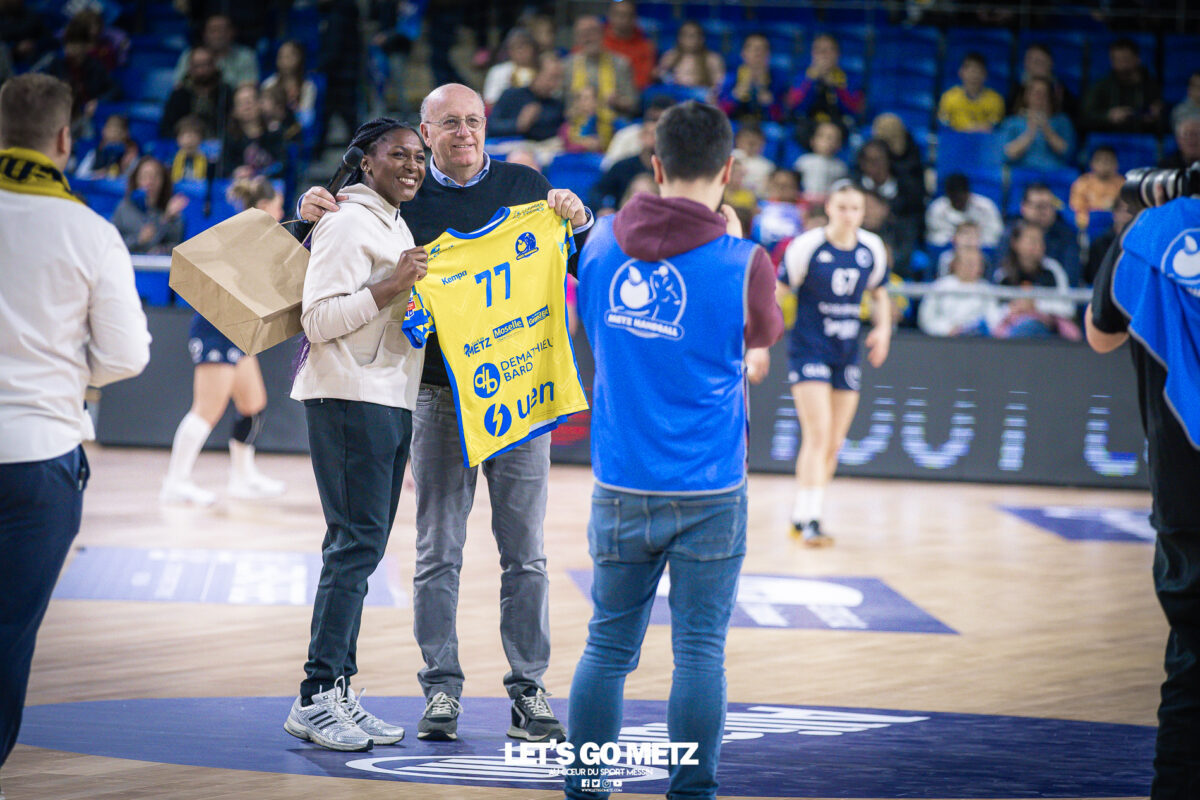162 Après la trêve internationale, Metz Handball s’impose face à Chambray (30-26) et reste au contact de Brest en Ligue Butagaz Energie. Lors de leur dernier match aux Arènes, les Dragonnes avaient fait chavirer les spectateurs au terme d’un scénario haletant qui leur avait permis de se qualifier pour les demi-finales de la Coupe de France aux dépens de Brest. Ce dimanche, sous les yeux de leur nouvelle partenaire Grâce Zaadi, elles retrouvaient le championnat et Chambray, actuel troisième au classement. L’objectif de l’emporter afin de rester au contact de son rival breton est atteint puisque les filles d’Emmanuel Mayonnade se sont imposées face aux banlieusardes tourangelles. Mais l’écart de seulement quatre unités (30-26) et le déroulé de la rencontre n’a sans doute pas franchement convaincu le technicien girondin. Metz Handball peine à prendre un véritable ascendant Par expérience, le coach messin s’attendait à un match difficile comme il l’indiquait dans la presse locale. Une reprise après des rencontres internationales qui voient l’effectif jaune et bleu disséminé au sein de diverses sélections, qui plus est face à un adversaire ambitieux, n’est jamais simple à aborder. Cette dix-septième levée de championnat n’a pas dérogé à la règle. Chambray est longtemps parvenu à rester au contact des Dragonnes. Si d’ordinaire, les Lorraines parviennent à prendre un ascendant quasi définitif sur leurs adversaires après une grosse dizaine de minutes de jeu, cette fois elles ne comptaient que deux buts d’avance peu avant le quart d’heure de jeu (8-6, 13e). Il faut dire que les Chambraisiennes proposaient un jeu plaisant et efficace sous l’impulsion de la pivot Maëlle Faynel qui inscrivait ses quatre buts sur autant de tentatives au cours de cette période. Les Jaune et Bleu peinaient à faire fructifier leur avance à la suite de certaines imprécisions. Elles ne parvenaient à prendre quatre unités d’avance seulement à la 25e minutes (12-8, 25e). Le but de Sarah Bouktit faisait suite à six minutes de disette offensive de part et d’autre. A la pause, les locales menaient de trois buts (14-11, 30e) après une réalisation de Suzanne Wajoka qui effectuait ce dimanche son retour suite à sa blessure. Une seconde période dans la même lignée Si les Dragonnes n’étaient finalement jamais rejointes au score, le début du second acte voyait Chambray tromper la vigilance de Johanna Bundsen deux fois consécutivement par l’intermédiaire d’Aurélie Messi et Carin Stromberg (14-13: 33e). Mais, sous l’impulsion des arrêts de sa gardienne suédoise mais aussi de Petra Vamos et Sarah bouktit notamment, Metz Handball semblaient prendre définitivement la mesure de son adversaire (18-13, 38e). Toutefois, les filles de Camille Conte ne s’avouaient pas vaincues à l’image d’Ylana Richard (6 buts), Lucie Modenel et Mathilde Amelot (4 réalisations). Mais les rotations permettaient aux Messines de garder davantage de fraîcheur et de prendre quelque peu le large après une réalisation de Manon Errard et un nouveau but de Suzanne Wajoka (23-16, 43e). Johanna Bundsen se montrait une fois encore précieuses dans ses cages et faisait également parler sa vista en inscrivant un nouveau but à l’orée de dix dernières minutes (27-20, 51e). Ses seize parades lui valaient d’être logiquement élue joueuse d’un match que les Jaune et Bleu emportaient de quatre unités (30-26). Place maintenant au déplacement à Sambre Avesnois mercredi (19 h) avant une prochaine rencontre à domicile programmée le 1er avril face à l’OGC Nice. Crédit photos: Julien Buret / Let’s Go Metz Statistiques de la rencontre Metz HandballBundsen (16 parades sur 41 tirs et 1 but sur 1 tir), Novotná (0/1)Valentini (3/3, capitaine), Axnér (2/3), Wajoka (2/4), Albek (1/2), Augustine (1/2), Ngombele (3/6), Bouktit (7/11), Granier (2/2), Grandveau (1/1), Vámos (4/6), L. Borg (3/4), Errard (1/2). ChambrayDuijndam (3 parades sur 17 tirs), Perche (7/22)Mauny (2 but/5 tirs), Vama (1/2), Strömberg (4/5), Matthijs-Holmberg (1/3), Brazet, Modenel (3/5), Richard (6/13), Faynel (4/4), Stoiljkovic (0/4), Messi (1/2), Amelot (4/5), Grimaud.Exclusions : Messi (6e, 10e), Richard (7e), Brazet (19e), Matthijs-Holmberg (34e) Galerie photos du match