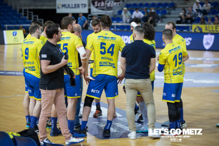 1,3K En lever de rideau des Dragonnes, l’équipe masculine de Metz Handball avait les honneurs des Arènes ce samedi. Retour sur la rencontre avec l’entraîneur David Motyka et le capitaine Guillaume Bettenfeld, et présentation d’une section au passé glorieux. Metz est une grande terre de handball. Si les Dragonnes écrasent la concurrence et attirent la lumière depuis plus de 20 ans, le handball au masculin possède également un passé glorieux (1971-1991). Aussi, à ses grandes heures, la rivalité entre la section masculine de l’ASPTT Metz et le SMEC Metz animait la capitale mosellane. Avant de voir la montée en puissance du SMEC, l’ASPTT jouait les premiers rôles avec, en prime, une participation en demi-finale de Coupe d’Europe des Vainqueurs de Coupes (C2), en 1978. Le deuxième club de la ville a joué près de 15 ans en Nationale 1A (de 1976 à 1991). Avec deux clubs présents au sein de l’élite, Metz était une place forte du Handball masculin. Malheureusement, les réalités économiques ont rattrapé les deux sections. Parmi les grands noms qui enchantaient le Complexe Saint-Symphorien, on pouvait retrouver un certain Olivier Krumbholz, actuel sélectionneur de l’Equipe de France féminine et ancien entraîneur de l’ASPTT Metz, l’ancêtre de Metz Handball. Jean-Luc Thiébault, ancien gardien international français, Bertrand François (papa de l’ancienne Dragonne Hélène François) ou encore Pascal Jacques (père d’Emma Jacques) ont aussi fait briller la bannière SMEC Metz.Plus récemment, Vincent Gérard, a lancé sa belle carrière avec le SMEC. L’actuel gardien de l’Equipe de France s’est en effet révélé en Nationale 1 avec son club formateur. Le SMEC Metz, en difficulté depuis quelques années depuis les descentes, allait alors osciller entre Nationale 1 et Nationale 2 avant de s’éteindre petit à petit, et passer sous le giron de Metz Handball, en 2009. Metz Handball de retour en Nationale 1 Remontée en Nationale 1 à l’été 2020, l’équipe masculine de Metz Handball joue aujourd’hui le maintien dans le troisième échelon français (quatrième, si l’on considère la N1 Elite comme une division à part entière). Aujourd’hui 8ème de la Poule 4 de N1M, les hommes de David Motyka ont manqué l’occasion de se donner de l’air. Le cadre était pourtant beau ce samedi aux Arènes de Metz. Ils ont malheureusement cédé (29-32) face à Bourgoin-Jallieu.« C’est un contexte particulier parce qu’on n’a pas forcément nos repères aux Arènes. Mais jouer dans ce genre de salle, c’est quelque chose de fort dans la carrière d’un joueur », explique David Motyka. L’expérimenté capitaine Guillaume Bettenfeld a également livré son ressenti après la rencontre : « C’était la première fois aux Arènes pour beaucoup de joueurs. Pas pour moi car cela fait longtemps que je joue à Metz. C’est toujours agréable de jouer dans la grande salle, en lever de rideau, avec les supporters qui viennent un peu plus tôt et jouent le jeu, comme ils peuvent le faire quand on joue à Saint-Symphorien (…) Il y a aussi le kop meusien, qui représente fièrement les deux meusiens de l’équipe à tous les matchs. Ça donne beaucoup d’énergie pendant le match ! » Continuer la bataille pour le maintien Metz Handball est passé à côté de son rendez-vous aux Arènes. « On ne s’attendait pas à déjouer comme cela ici, c’est dur. On n’est pas au top en ce moment mais on a des gros matchs qui arrivent, contre des équipes proches de nous au classement. Nous avons du mal depuis la reprise, on espère se relancer dès samedi prochain. Depuis 4-5 matchs, notre point fort qui est la défense est défaillant », concède Guillaume Bettenfeld.« On a été trop inconstant tout au long de la rencontre, avec des pertes de balles et des tirs ratés… En gagnant ce soir, on pouvait passer 5ème avec la possibilité de s’assurer mathématiquement le maintien. On ne l’a pas fait mais on va se remettre au travail pour le faire samedi contre Beaune », constate David Motyka.L’équipe masculine de Metz Handball aura l’occasion d’effacer ce revers dès samedi à 20h30, face à Beaune, au Complexe Saint-Symphorien. Metz Handball 29-32 CSBJ Handball Metz HandballArrêts : Bordy 19, Balmy 0Buts : Ge.Bettenfeld 1, Ballet 2, Gu.Bettenfeld 7, Abate 1, Andrezo 0, Fuchs 0, Ribeiro 5, Bello 0, Blond 4, Rondel 0, D’Hondt 7, Baumann 2 Bourgoin-JallieuArrêts : Bengrine 10, Petit 1Buts : Duvert 3, Vincent 1, Sermet 5, Jourdain 8, Debiossat 6, Cusin 1, Girard 7, Damier 0, Antoine 1 Crédit photo : Matthieu Henkinet/LGM