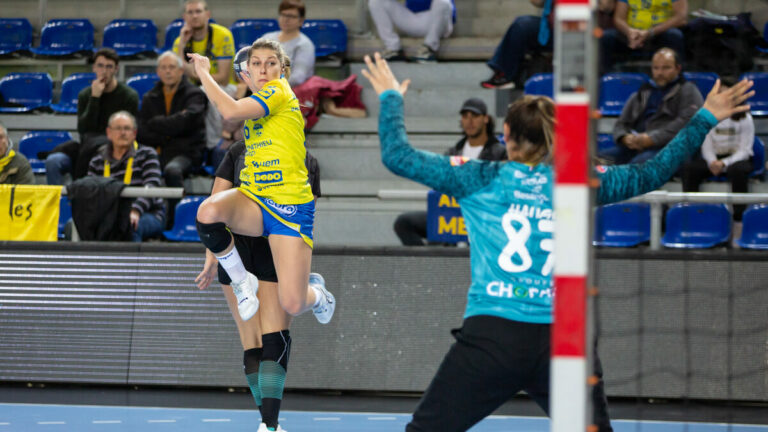 481 Pour son retour à la compétition après la trêve internationale, Metz Handball recevait l’ESBF Besançon ce mercredi aux Arènes de Metz. Quoi qu’en disent les classements, quelles que soient les saisons, les matchs entre Metz Handball et Besançon ont toujours cette atmosphère particulière qui les entoure. Classique du championnat de France depuis de nombreuses saisons, l’affiche de ce 30 novembre n’a peut-être pas offert un bras de fer d’anthologie mais il s’est néanmoins érigé en belle opposition de reprise. Coupées de la compétition depuis de longues semaines en raison d’une trêve internationale au positionnement inhabituel, les deux formations européennes renouaient en effet avec leurs internationales et surtout avec la compétition. Sako, Valentini, de Paula, Jorgensen, Bouktit, Burgaard, Bont au démarrage Contrariées par des erreurs défensives très tôt dans la partie, synonymes de jets de sept mètres adverses, les joueuses de Metz Handball ont su garder la tête froide pour prendre les devants dans le match. Les incartades de Sarah Bouktit au bord de la zone adverse venaient ainsi conclure les combinaisons bien amorcées par Kristina Jorgensen pour obtenir le premier break de la partie (6-4, 7min). Alizée Frecon plutôt remuante dans les premières minutes était rapidement muselée tandis que Louise Burgaard, Debbie Bont et Chloé Valentini se chargeaient de creuser la marge, jusqu’à un +7 déjà compliqué à négocier pour les Bisontines, après seulement 18 minutes de jeu. Audrey Dembele, Camille Aoustin et surtout Natalia Nosek tentaient de répondre, en vain.Score à la mi-temps : 21 à 13 Du travail, encore du travail De retour sur le terrain, Metz Handball affichait rapidement un autre visage. Profitant de l’avance des siennes, Emmanuel Mayonnade optait pour des ajustements tactiques. Plus de temps de jeu pour les joueuses du banc, combinaisons moins classiques et changement de gardienne, avec la sortie d’Hatadou Sako pour Camille Depuiset, n’entamaient pas vraiment l’absence de suspense mais permettaient une belle séance de travail sous les encouragements du public. Stelvia Pascoal, peu en réussite malgré plusieurs situations favorables, bénéficiait alors de quelques conseils de ses coéquipières jusqu’à enfin débloquer son compteur après 18 minutes de jeu dans le second acte. Dans le même temps, Laura Kanor, souvent sevrée de ballons, parvenait à se remettre en confiance en adaptant son placement au fil des actions pour inscrire deux buts. De son côté, Julie le Blevec renouait avec la compétition avec implication après une frustrante période de blessure.Au bout du compte une victoire de 9 buts en faveur de Metz Handball face aux joueuses de Sébastien Mizoule. De bon augure avant le retour de la Champions League et la réception de Kastamonu samedi. Score final de ce Metz Handball – Besançon : 33 à 24 La galerie du match Les stats de Metz Handball – Besançon Metz HandballSako (8 parades sur 21 tirs), Depuiset (9/21, 0/1 au tir)De Paula (3 buts / 6 tirs), Valentini (3/5), Jorgensen (2/3), Horacek (5/7), Bont (3/4), Burgaard (7/9), Kanor (2/3), Pascoal (2/4), Bouktit (3/3), Barthelemy (1/1), le Blevec (2/3), Maslova. ESBF BesançonLerstad (7 parades sur 29 tirs), Hauge (2/12)Frecon (3 buts sur 6 tirs), Mairot (2/3), Cusset (0/1), Aoustin (4/5), Tshimanga (1/1), Robert (0/2), Granier (3/6), Faure (4/7), Zazai (1/1), Nosek (3/6), Corovic (1/2), Dembele (2/8). Crédit photo : Matthieu Henkinet
