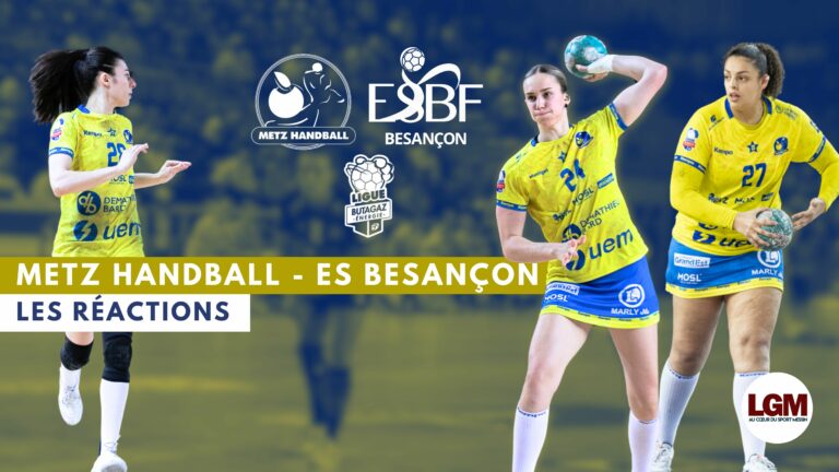 1,6K Après la victoire de Metz Handball face à Besançon (28-22) ce mercredi 15 mai, retrouvez les réactions de Lucie Granier, Sarah Bouktit et d’Emma Jacques à l’issue de la rencontre. Par ailleurs à un peu moins de 72 heures de la finale de Coupe de France face à JDA Dijon, les Dragonnes se sont exprimés également sur la préparation de cette rencontre qui se déroulera à l’Adidas Arena de Paris. Retrouvez l’intégralité de ces réactions sur notre chaîne YouTube. Visuel : Enzo Perretta / Let’s Go Metz