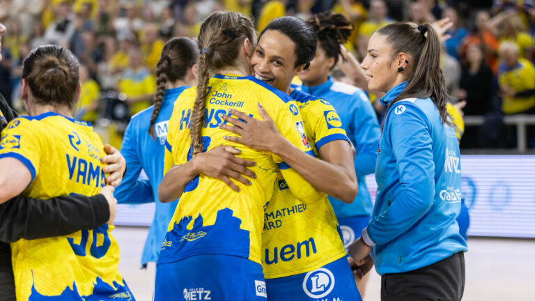 4,8K Ce lundi 14 avril, Emmanuel Mayonnade, accompagné de Léna Grandveau et d’Allison Pineau, était présent en conférence de presse pour évoquer de nombreux sujets et notamment le quart de finale de Ligue des Champions entre Metz Handball et Brest. Après avoir annoncé la prolongation de son contrat, Emmanuel Mayonnade a été interrogé sur le quart de finale de Ligue des Champions contre Brest (match aller le 19 avril, match retour le 27 avril). Une double confrontation qui est à fort enjeu entre les deux équipes rivales en Ligue Butagaz Energie. Léna Grandveau et Allison Pineau ont également rappelé l’importance des deux rencontres à venir. Emmanuel Mayonnade : « On construit une histoire avec l’accumulation des matchs » Crédit Photo : Mikael Frank/Let’s Go Metz En évoquant le quart de finale de Ligue des Champions entre Metz Handball et Brest, Emmanuel Mayonnade a rappelé que le contexte n’était pas le même que lors des précédentes rencontres. « Ce n’est pas le même match, ce n’est pas le même enjeu ni la même dynamique. On construit une histoire avec l’accumulation des matchs. L’enjeu c’est de dire ce qui peut les amener à être plus motivées (les joueuses de Brest). Qu’est ce qui va pouvoir nous animer encore, quels sont les axes de travail, de progrès pour nous et pour elles. Le fait de les avoir jouées il n’y a pas très longtemps n’a pas généré une préparation vidéo extraordinaire puisque fondamentalement entre les deux oppositions, aucune des deux équipes n’a joué un match. La Coupe de France est passée, place maintenant à la Ligue des Champions qui est un objectif fort de la structure. ». Il a aussi expliqué comment le club abordait la double confrontation dans une même compétition. « Sur un match de Coupe de France, tout est tentable. Que tu perdes de 10, de 1 (but) ou que tu arrives à revenir ce n’est pas la même chose. Sur un match aller de Ligue des Champions, je n’imagine pas l’une des deux équipes, sauf énorme catastrophe, s’aventurer dans autant de problématiques considérant que ces choses-là peuvent se jouer sur le match retour. Quand tu te découvres autant, tu as la perspective de revenir au score mais aussi celle d’agrandir un écart qui pourrait faire mal à la tête d’une des deux équipes sur le match retour dans la préparation. ». Léna Grandveau : « C’est une nouveauté pour moi » Crédit Photo : Matthieu Henkinet/Let’s Go Metz À quelques jours de disputer le quart de finale de Ligue des Champions, Léna Grandveau a fait état de son ressenti. « C’est une nouveauté pour moi, un quart de finale ce n’est pas tout le monde qui a le droit. Aujourd’hui, j’ai envie de reprendre avec Metz après cette semaine internationale. C’est sûr qu’on n’a pas eu beaucoup de temps pour travailler donc on reprend très vite avec le collectif. On va bien mettre les choses en place. Mais je pense que j’ai un peu le temps pour réfléchir à ce quart de finale. On mettra tout en place tranquillement, chacune individuellement et collectivement pour aller à Brest de la meilleure des manières. ». La jeune demi-centre a également évoqué la différence entre un match de Coupe de France et une double confrontation en Ligue des Champions. « J’ai envie de dire que c’est une nouvelle compétition. La Coupe de France c’est spécial mais la Ligue des Champions encore plus. On sait que rien n’est fait après le premier match car après l’avoir vécu avec Nantes, on a pu gagner +9 et perdu -10 au retour. Aujourd’hui on peut aller gagner à Brest et se prendre une claque derrière et inversement. Donc on verra bien ce qui se passe mais mentalement ça change un peu les choses puisque ce n’est pas un match de soixante minutes mais un match de deux heures qui nous attend. Il faudra donner tout ce que l’on peut durant ces deux confrontations. ». Allison Pineau : « Une confrontation qui va être très âpre » Crédit Photo : Matthieu Henkinet/Let’s Go Metz L’enthousiasme autour des deux rencontres entre Metz Handball et Brest n’est pas partagé par Allison Pineau. « Ce qui est bien c’est que l’on retrouve deux clubs français et que ça plaît à tout le monde. Tout le monde se dit qu’il y aura un club français au Final Four. Moi ça me fait pas trop kiffer de bouffer du Brest pendant un mois. Ce n’est pas super joyeux parce que déjà les équipes se connaissent très bien et que l’on s’est joué y a deux semaines, on se rejoue là, la semaine d’après puis deux semaines après. Ce n’est pas le plus plaisant mais ça fait partie du jeu. Je pense que cela va être de nouveau une confrontation qui va être très âpre avec beaucoup d’engagement et d’intensité. Cela va se rendre coup pour coup, cela ne se fera pas de cadeaux. ». L’expérimentée demi-centre de 35 ans a exprimé sa motivation avant de disputer ce quart de finale. « C’est des matchs que j’ai hâte de jouer, peu importe l’adversaire. Avant de parler d’un objectif de Ligue des Champions, ce que je retiens c’est qu’il y a deux matchs qui arrivent. Cette confrontation va être difficile, va falloir aller la chercher. Mon objectif personnel c’est déjà de passer ce quart et après on verra ce qu’il se passe mais j’ai envie de retourner au Final Four. Je n’ai pas l’intention de rater le coche. ». Crédit Image mise en avant : Matthieu Henkinet/Let’s Go Metz