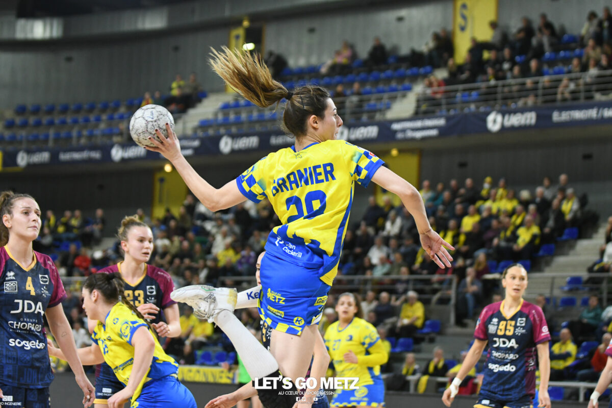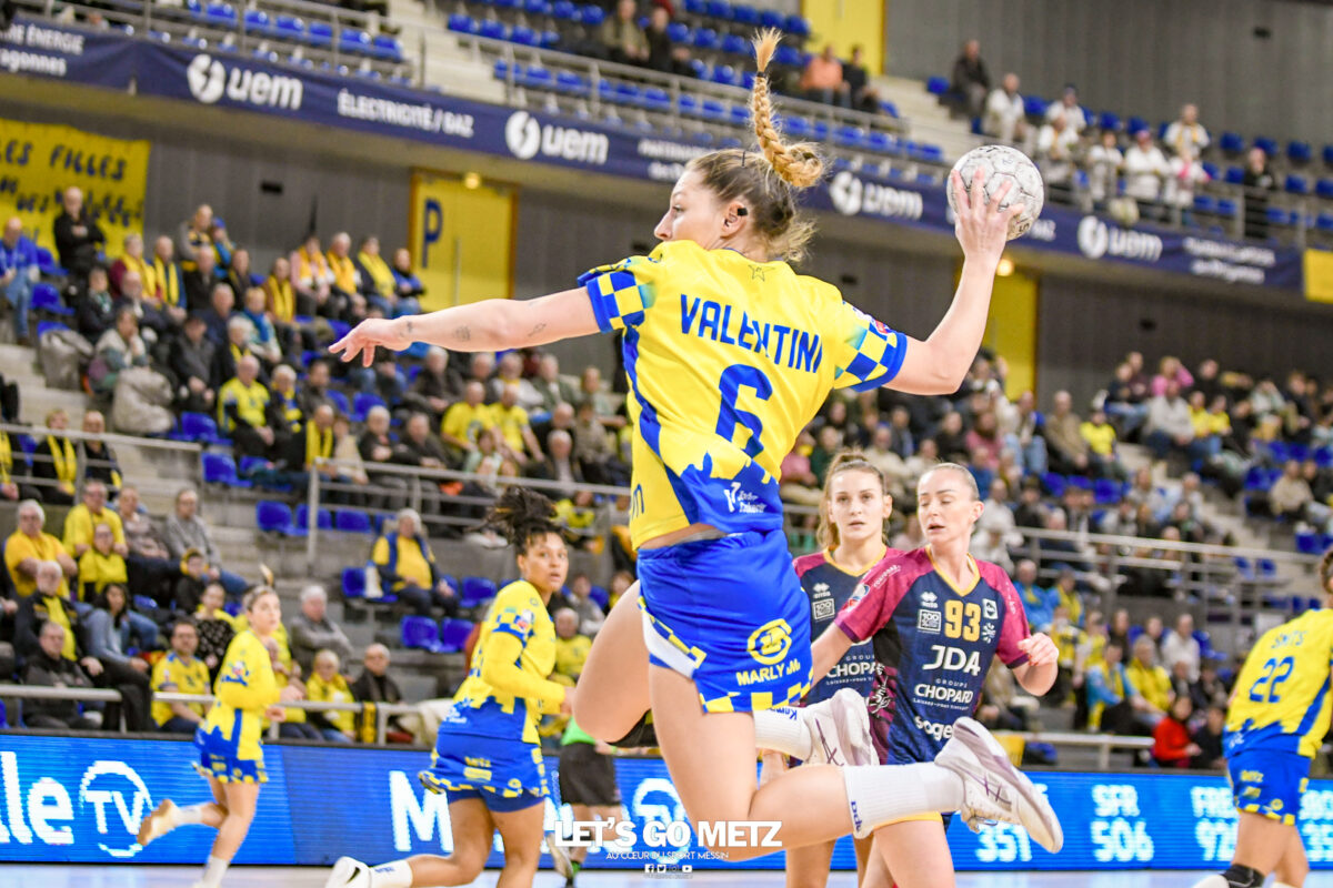355 Metz Handball retrouve Györ ce samedi (16 h) avec l’ambition de montrer qu’il est bien un prétendant au sacre européen en fin de saison. Ce samedi (16 heures, en direct sur Eurosport 360 3), Metz Handball s’apprête à disputer son vingtième match de l’exercice 2025/2026. A l’heure où nous écrivons ces lignes, le bilan est de 18 victoires pour une défaite pour les filles d’Emmanuel Mayonnade. Et contre quel adversaire ce revers a eu lieu? Györ évidemment. Le 1er novembre dernier, le septuple champion d’Europe l’avait emporté de quatre buts (31-27) après avoir notamment dominé le premier acte dans les grandes largeurs (16-8 à la pause). Les trente dernières minutes avaient été plus équilibrées de par l’orgueil des Dragonnes. Peu habituées à être autant châtiées, elles voulaient montrer qu’elles avaient les moyens de rivaliser face à une telle armada malgré la reconstruction de son effectif. Metz Handball voudra effacer des souvenirs du match aller La première rencontre européenne de l’année offre une nouvelle occasion de le démontrer. Et quoi de mieux comme scène que des Arènes combles pour présenter ses plus beaux atours. Connaissant le degré d’exigence et l’aversion de la défaite qu’a le technicien messin, il y a fort à parier que ce choc a été préparé avec une minutie davantage encore exacerbée qu’à l’accoutumée. Il va sans dire que le coach, qui a choisi de prolonger une saison de plus en début de semaine, a peu goûté le festival offensif de Bruna De Paula (8/11 au tir) et défensif d’Hatadou Sako (24 arrêts), notamment face à Lucie Granier (4/9). Et l’ailière internationale n’est pas connue pour accumuler les prestations en demi-teinte. Le type de matchs où les talents se mettent en valeur Elle est l’un des maillons importants de la base avant des Jaune et Bleu. Associée à Suzanne Wajoka et Sarah Bouktit, l’ancienne Bisontine a notamment permis de creuser un écart avant la pause ce mercredi lors du succès face à la JDA Dijon (43-30). Si l’on y ajoute le retour de la capitaine Chloé Valentini, on se dit que les Dragonnes ont des arguments forts pour rivaliser avec des joueuses du calibre de Nathalie Hagman, Csenge Fodor et Linn Blohm. Cette dernière fera face à Sarah Bouktit qui vient de passer la barre des mille buts sous le maillot jaune et bleu et évoluera ce samedi contre ses futures partenaires. Il en va de même à l’arrière avec Tyra Axnér qui voudra montrer à son entraîneur qu’elle peut soutenir la comparaison avec sa future coéquipière, Kristina Jorgensen. Et ces exemples sont non exhaustifs tant il y aura du talent au mètre carré sur le parquet ce samedi. Si Metz Handball est devant au tableau d’affichage à l’issue de l’heure de jeu, et plus encore si l’écart est supérieur à quatre buts, il marquera les esprits et fourbira ses armes pour continuer à fourbir ses ambitions dans la compétition. Mais avant de se lancer dans la politique-fiction, place au spectacle et à l’action. Crédit photo: Matthieu Henkinet (Une) et Mikaël Frank
