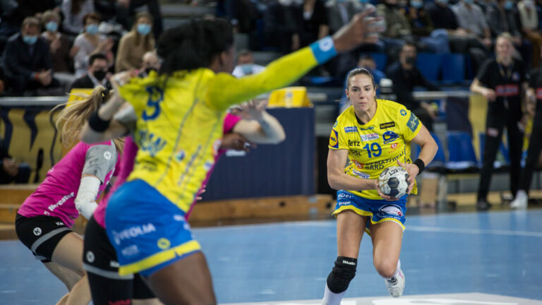 591 En match retard de la 10ème journée de Ligue des Champions, Metz Handball n’a pu faire mieux que match nul (27-27) face au RK Krim Mercator ce mercredi aux Arènes. Grâce à ce petit point pris, les Dragonnes reprennent la 2ème place de leur poule mais n’auront plus le droit à l’erreur. Pas le temps de digérer la superbe victoire à Vipers Kristiansand pour les Dragonnes ! Metz Handball était déjà de retour au combat ce mercredi face au RK Krim Mercator en match en retard de la 10ème journée de Ligue des Champions. A l’aller, les joueuses d’Emmanuel Mayonnade ne s’étaient imposées que d’un petit but à Ljubjana. Autant dire que Metz Handball ne devait pas lever le pied dans la quête de l’objectif top 2, synonyme de quart de finale !Message reçu pour Bruna De Paula qui lançait les siennes dans la partie avec deux buts rapides. Les Dragonnes menaient alors 3-0. Un petit retard à l’allumage que les Slovènes allaient vite compenser en se mettant au niveau de Metz Handball. Les deux équipes pratiquaient un handball assez plaisant, malgré quelques imprécisions techniques de part et d’autre. Entrée en jeu à la place d’Hatadou Sako, touchée au genou, Ivana Kapitanovic faisait le show avec une double parade spectaculaire. Après une mauvaise relance de la gardienne, l’ancienne Messine Tjasa Stanko qui avait malicieusement jouait la carotte, butait sur le mur croate. Une action qui résume parfaitement une première mi-temps décousue où Metz Handball a perdu le fil de son jeu. « La fin de la première période a peut-être été un tournant, c’est là où on a commencé à faire moins bien les choses », concédait Tamara Horacek en conférence de presse.MT : Metz Handball 17-15 RK Krim Mercator Un final frustrant Dans la lignée de la fin de la première mi-temps, les Dragonnes laissaient les visiteuses revenir à hauteur. Le RK Krim Mercator allait même reprendre la tête au retour des vestiaires ! Emmanuel Mayonnade était contraint de stopper le jeu (20-21, 40’). Une seconde mi-temps bien compliquée pour Metz Handball qui allait devoir batailler pour espérer repartir avec la victoire. A l’image de Sarah Bouktit, qui abattait un gros boulot en attaque pour obtenir des jets de 7 mètres. Des occasions manquées par Horacek et Nocandy… (24-25, 54’)En dépit des égalisations messines répétées, Ljubjana trouvait toujours un moyen de conserver son avance, à l’image d’un missile d’Océane Ugolin-Sercien (26-27, 57’). Malgré une balle de +2 pour les Slovènes, Metz Handball serrait la vis en défense et égalisait par l’intermédiaire d’Orlane Kanor ! A la suite d’une nouvelle grosse défense, les Dragonnes s’offraient une balle de match. Après une longue possession messine qui semblait mal embarquée, De Paula trouvait Laura Kanor complètement seule à 6 mètres… Raté pour l’ailière qui butait sur la gardienne slovène ! La dernière possession de Ljubjana ne donnera rien. Metz Handball et le RK Krim Mercator se quittaient donc bons amis avec ce score nul de 27-27.Bien que frustrant, ce partage des points permet aux Dragonnes de reprendre la 2ème place à Vipers Kristiansand pour une toute petite unité. Les joueuses d’Emmanuel Mayonnade n’auront toutefois plus le droit à l’erreur sur ces deux derniers matchs de poule de Ligue des Champions. Le sprint final débute dès ce samedi 18h pour les messines avec la réception d’Odense aux Arènes. La victoire sera obligatoire avant la dernière journée et le déplacement sur le parquet du CSKA Moscou. Metz Handball 27-27 RK Krim Mercator Metz HandballKapitanovic (9 arrêts / 31 tirs), Sako (1/6)De Paula (4 buts / 6 tirs), Valentini (1/2), Micijevic (1/2), N’Gouan (2/2), Nocandy (2/6), Horacek (2/5), Bont (2/2), O.Kanor (1/3), Burgaard (5/7), L.Kanor (1/2), Jacques (3/5), Bouktit (2/2), Cardoso (1/2)RK Krim MercatorRisovic (12 arrêts / 31 tirs), Arenhart (0/8)Stanko (5 buts / 8 tirs), Sercien Ugolin (2/3), Pineau (2/6), Van Kreij (4/7), Ljepoja (4/5), Varagic (2/3), Gomilar Zickero (1/2), Krpez-Slezak (5/8), Svetik (2/3) La galerie du match Crédit photo : Matthieu Henkinet