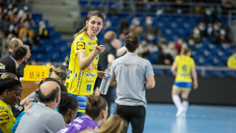 697 Les dragonnes de Metz Handball recevaient hier les Danoises d’Odense en Ligue des Champions. L’objectif était simple, s’imposer et rester maîtresses de leurs destin pour conserver la seconde place du groupe B, synonyme d’accession directe en quart de finale. Mission accomplie. Dans des Arènes surchauffées, les Dragonnes de Metz Handball recevaient les Danoises d’Odense pour un match capital en vue d’une accession directe en quart de finale de la Ligue des Champions. Toujours en lice pour cette seconde place directement qualificative, les Danoises venaient en Moselle avec beaucoup de détermination et d’ambitions. Il faut dire que pour leur troisième participation à la compétition, les coéquipières d’Althea Reinhardt, restée au Danemark pour l’occasion, font plutôt belle impression. Avec six victoires, un match nul et cinq défaites, Odense s’est mué en prétendant sérieux aux quarts de finale cette année. De leurs côtés, les protégées d’Emmanuel Mayonnade entamaient sans doute la rencontre avec la boule au ventre. A l’issue du match nul concédé trois jours plus tôt face à Krim Mercator, les jaunes et bleues apprenaient l’indisponibilité jusqu’à la fin de la saison d’Hatadou Sako. Quelques heures plus tard, Thierry Weizman confirmait le départ en fin de saison d’Astride Ngouan, non sans avoir annoncé quelques noms prestigieux pour pallier la blessure d’Hatadou. Trois dossiers en particulier, ceux de Camille Depuiset, Laura Glauser ou encore Amandine Leynaud. Une semaine chargée en émotion… Mais pas question de se laisser perturber. Il fallait être au rendez-vous pour offrir du spectacle au public des arènes. Et si elle fût longue à se dessiner, la victoire n’a souffert d’aucune contestation. Une première mi-temps sérieuse C’est Camila Micijevic qui allumait la mèche à la suite d’une belle première défense des dragonnes. Après un but de la capitaine Méline Nocandy et un jet de sept mètres transformé par Tamara Horacek, Ulrik Kirkely demandait un premier temps mort pour Odense (5′). Le match gagnait alors en intensité. Les Danoises jouaient vite et tentaient de s’accrocher au score. Mais malgré quelques litigieuses décisions des sœurs Marta et Vania Sa, les jaunes et bleues gardaient une avance de deux buts. Camila Micijevic inscrivait d’ailleurs le 4000ème but du Metz Handball en ligue des champions (13′) pour amener le score à 10-8. Emma Jacques participait également à la fête avec un deuxième but personnel (16′) 12-10. Après quelques minutes de flottement et d’erreurs individuelles, Emmanuel Mayonnade demandait à son tour un temps mort (20′). Le moment idéal pour que Bruna de Paula n’enflamme enfin les arènes (22′ / 26′). A la pause et grâce à une mi-temps sérieuse et engagée, les joueuses de Metz Handball menaient 19-17. Une fois n’est pas coutume, Louise Burgaard, Camila Micijevic et Méline Nocandy insufflaient une dynamique collective de très haut niveau. Mélanie Halter, joker de luxe Au retour des vestiaires, les esprits s’échauffaient et le public fustigeait à nouveau le corps arbitral. Odense prenait alors le contrôle de la rencontre suite à de nouvelles décisions discutables de la doublette Sa (5′) 20-22. Mais il en fallait plus pour déstabiliser les Dragonnes. Soutenues par leur public, les Messines revenaient rapidement à hauteur des Danoises, notamment grâce à Camila Micijevic et Méline Nocandy, autrices de quelques pépites devant le but de Martina Thörn. Un petit évènement intervenait alors (10′). Mélanie Halter entrait en jeu à la place d’Ivana Kapitanovic, peu en réussite jusqu’à présent. Et la jeune gardienne allait s’illustrer quelques minutes plus tard en stoppant tout d’abord un jet de sept mètres sous la clameur des arènes (15′). Un exploit qui permettait aux Messines de reprendre deux buts d’avance sur Odense 30-28. Et alors que le match devenait haché et tendu, Mélanie Halter récidivait par quatre fois pour maintenir l’avance des Dragonnes. Laura Kanor donnait même un coussin d’air confortable à cinq minutes du terme 33-29. Le rouleau compresseur pouvait alors dérouler. Le Kung-Fu de Debbie Bont puis le dixième but de Camila Micijevic terminaient d’enflammer les tribunes. Victoire 38-31. La force d’un collectif Si Camila Micijevic (10 buts) et Méline Nocandy (5 buts) ont particulièrement illuminé la rencontre, c’est tout un collectif qui s’est montré à la hauteur de l’enjeu. Solidaires et volontaires, les dragonnes de Metz Handball ont su élever leur niveau quand il le fallait face à une belle équipe d’Odense. Et la bonne nouvelle du jour, c’est la prise de responsabilité de la jeune garde. Emma Jacques (2 buts) et Sarah Bouktit (3 buts) ont à nouveau montré qu’elles étaient prêtes pour les grands rendez-vous. Et que dire de Mélanie Halter ? Entrée en jeu au moment où le doute s’installait, elle a fait chavirer la rencontre à elle seule. La galerie de la rencontre Les statistiques : Metz HandballIvana Kapitanovic (1 arrêts / 26 tirs), Mélanie Halter (5/11)Camila Micijevic (10 buts /13 tirs), Méline Nocandy (5/8), Louise Burgaard (4/5), Debbie Bont (3/4), Laura Kanor (3/3), Sarah Bouktit (3/3), Bruna De Paula (2/6), Astride N’Gouan (2/2), Tamara Horacek (2/3), Emma Jacques (2/4), Chloé Bouquet (1/1), Adriana Cardoso (1/1).Odense HandballMartina Thörn (0/1)Lois Abbing (7 buts /9 tirs), Trine Knudsen (5/6), Rikke Iversen (5/6), Dione Housheer (4/6), Larissa Nüsser (3/5), Kelly Vollebregt (3/5), Bo van Wetering (2/4), Maren Nyland Aardahl (1/1), Freja Cohrt Kyndboel (1/2). Prochain rendez-vous, mercredi à Moscou face au CSK, pour confirmer cette belle victoire et peut-être revenir avec un billet pour les quart de finale ! Crédit photo : Matthieu Henkinet/LGM