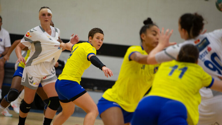 576 Metz Handball a réussi son entrée en lice face à Buducnost lors du tournoi international – Moselle Terre de Jeux et rejoint Krim Mercator en finale. C’est dans la chaleur étouffante du complexe Saint-Symphorien que le tournoi international – Moselle Terre de Jeux a débuté ce samedi. La première demi-finale s’est soldée par une victoire de Krim Mercator face au FTC Rail Cargo Hungaria et Metz Handball devait se défaire de Buducnost pour atteindre la finale du tournoi international à son tour. Le groupe élargi concocté par Emmanuel Mayonnade et Ekaterina Andryushina, incluant Emma Tuccella et Merle Albers sur le banc, a mis toutes les chances de son côté dès le coup d’envoi en signant un 5-1 lors des 10 premières minutes. Plutôt en vue sur cette entame ? La défense haute permettant plusieurs interceptions et la rapidité d’exécution de Chloé Valentini et Lucie Granier sur les ailes. La suite de la mi-temps a toutefois nécessité une montée en gamme dans l’engagement physique, en témoignant les chocs reçus par Sarah Bouktit et Alina Grijseels, pour retrouver les vestiaires avec un avantage confortable : 15 – 9. De retour des vestiaires, Metz Handball et Buducnost reprennaient le match là où elles l’avaient laissé avec des face à face solides… Avant que l’intensité ne retombe comme un soufflé. Très vite à cours de souffle et d’inspiration, les joueuses de Buducnost perdaient en rythme et laissaient Metz Handball filer au large. Ailes, arrières, pivot et même gardienne, toutes les messines en profitaient pour placer leur coup d’éclat dans un match devenu presque trop facile. Buducnost ne marquait alors quasiment plus que sur des fautes messines tandis que l’effectif tournait pour ne rien perdre de la dynamique de progression.Score final : 33 – 18 Dimanche, le FTC Rail Cargo et Buducnost s’opposeront à 15h30 dans la petite finale.Metz Handball et Krim Mercator se retrouveront à 18h00 pour déterminer l’équipe vainqueur du tournoi.